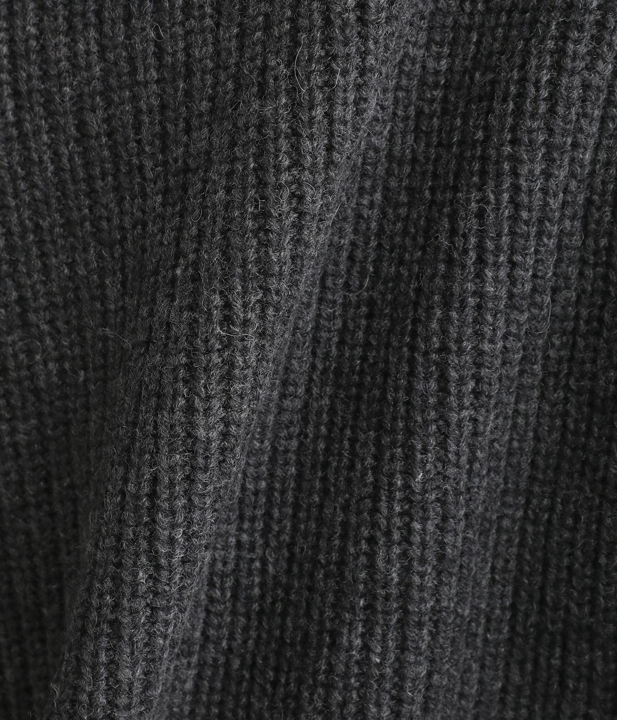ナイロンウール糸を使用し、表面に凹凸のある片畦編みで仕上げたニット生地。チクチク感の少ないやわらかな肌触りであたたかく、軽やかな生地感です。