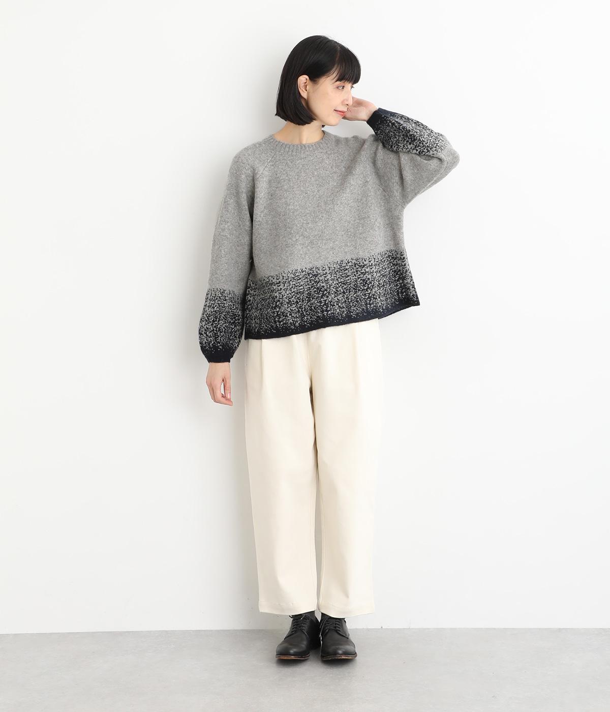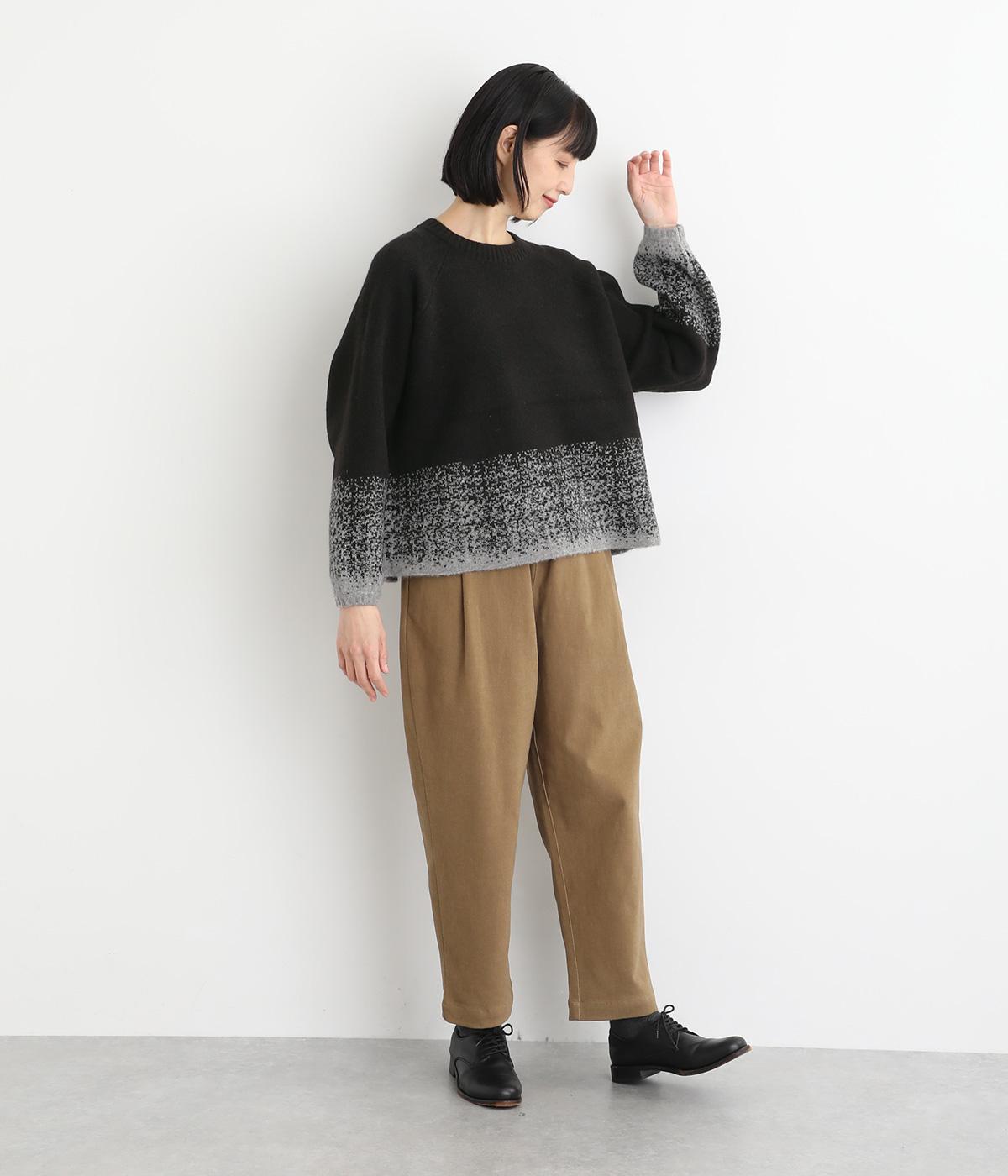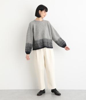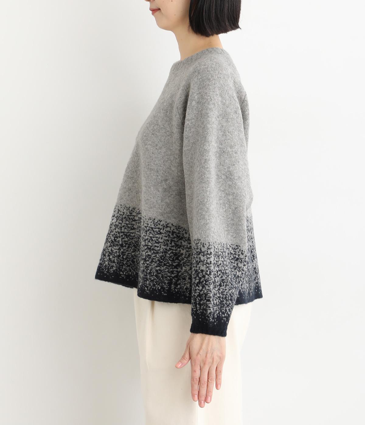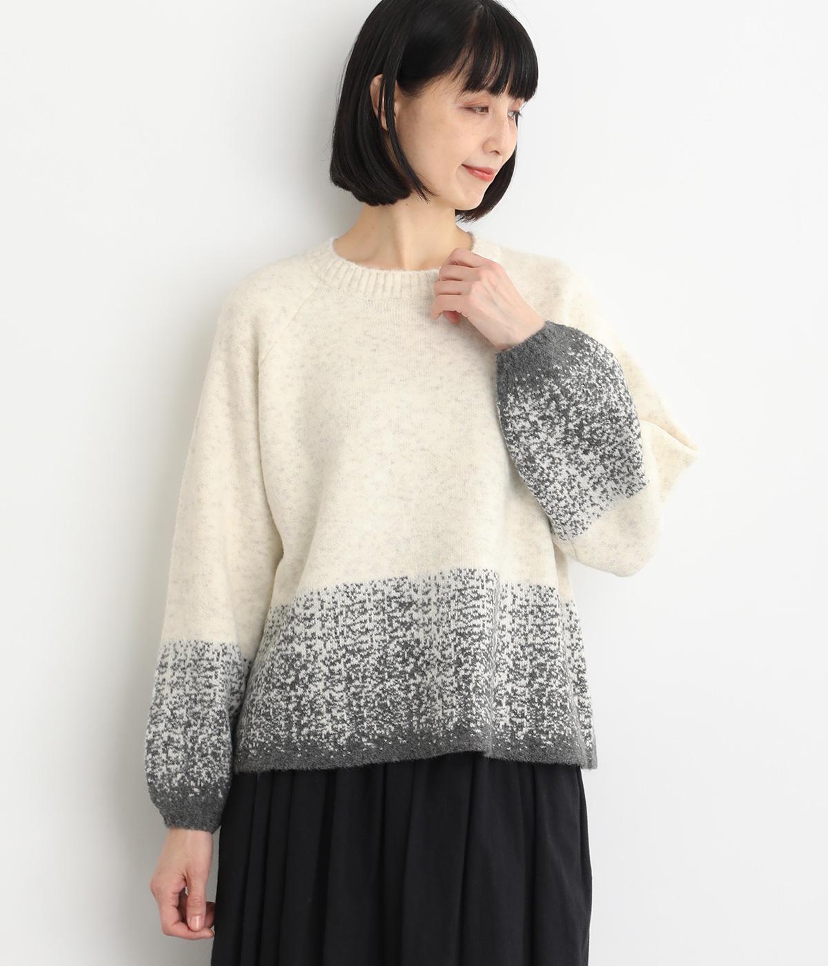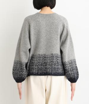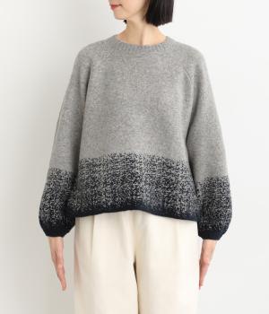 裾のグラデーションが目を惹くプルオーバー。広い身幅と短めの着丈で好バランスに仕上げました。袖口をきゅっと細くし、ふっくらとさせた袖のフォルムも愛らしいポイントに。派手さをおさえつつも一枚で着映えが叶う、秋冬のおしゃれに頼れるアイテムです。
