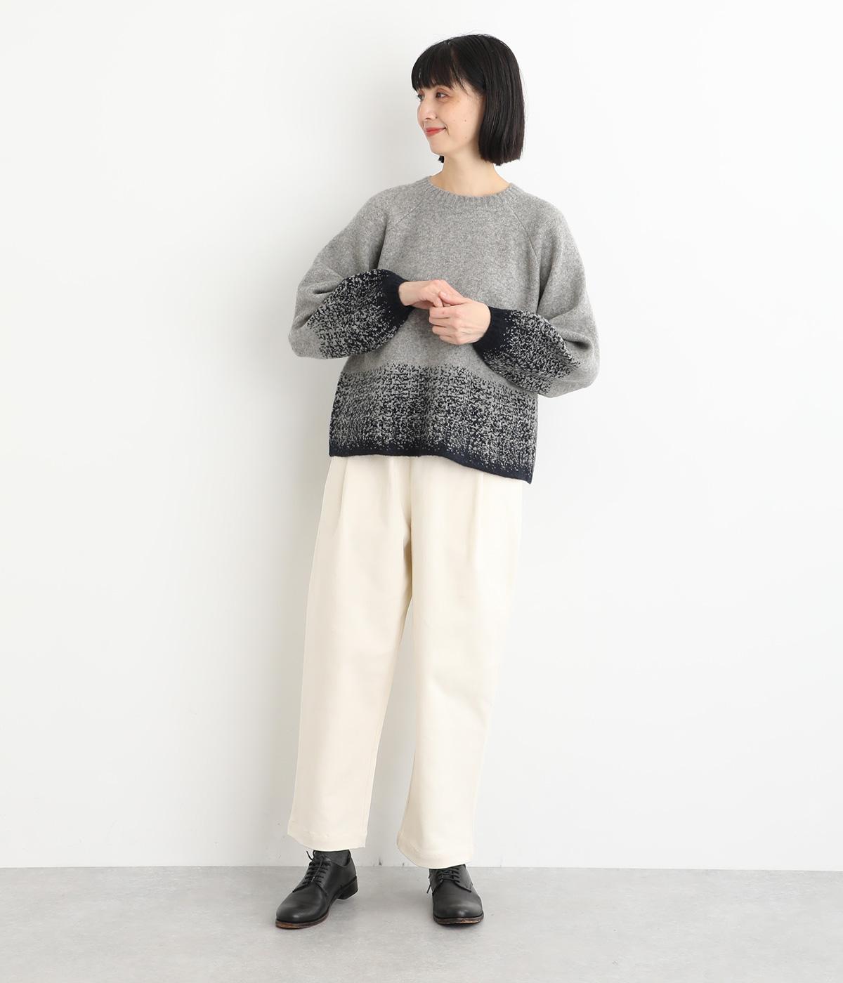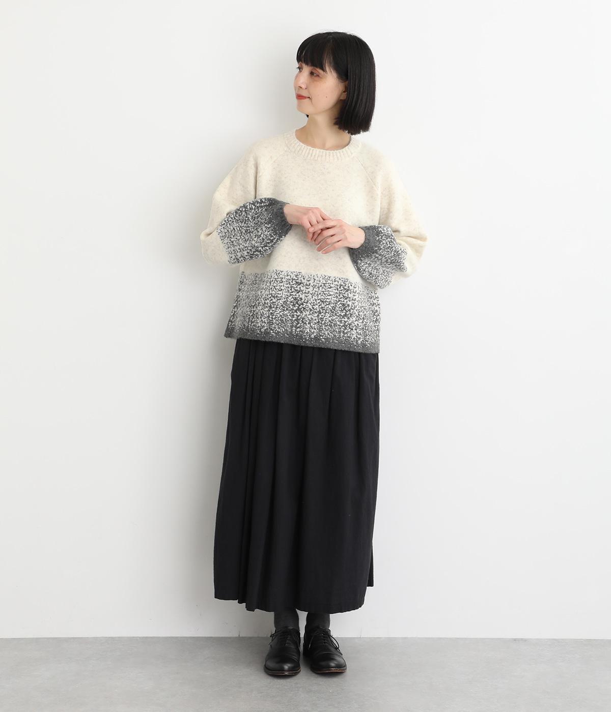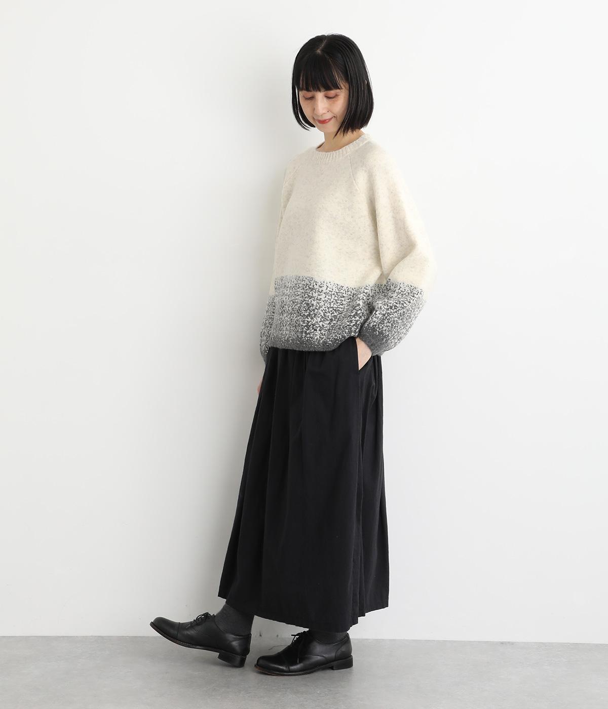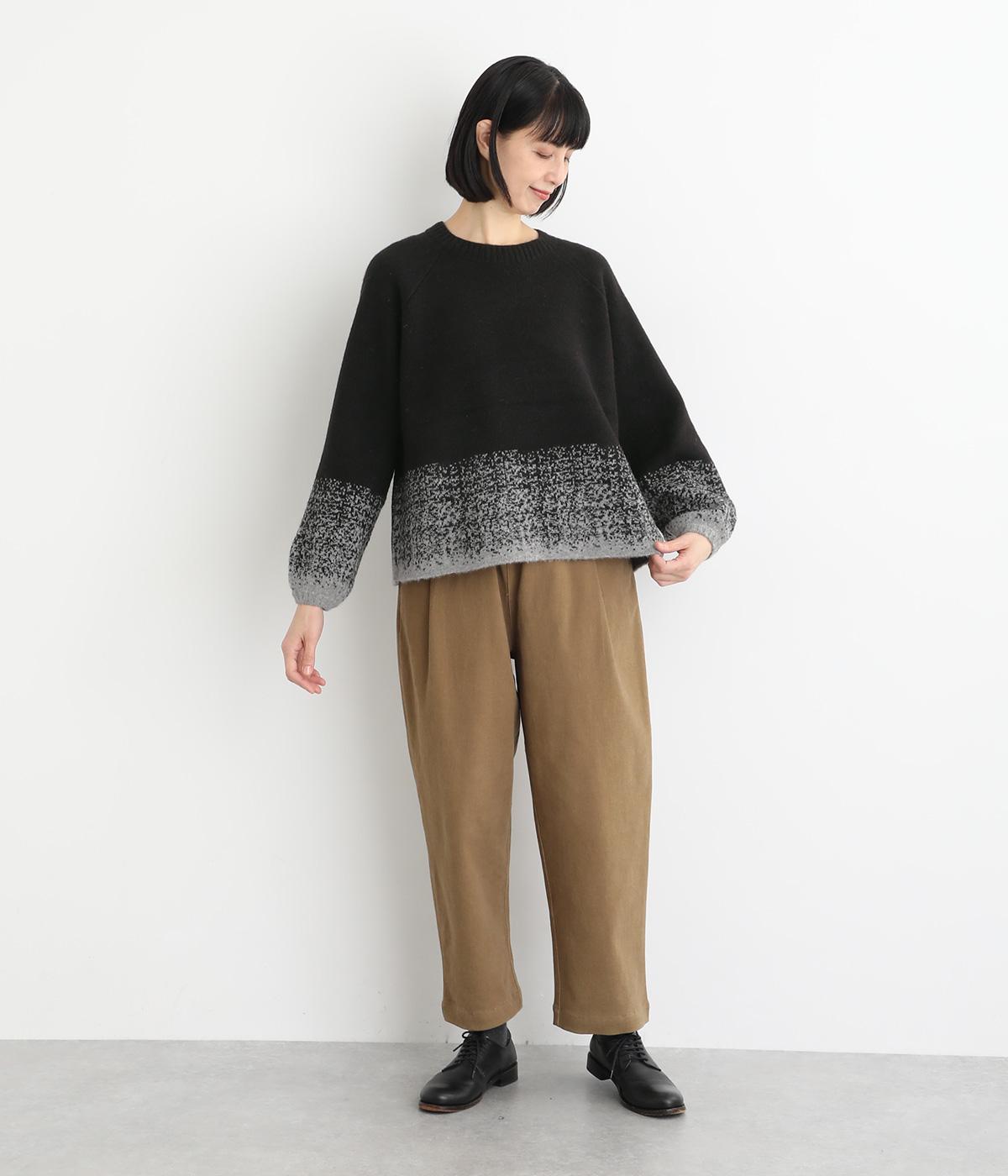 裾のグラデーションが目を惹くプルオーバー。広い身幅と短めの着丈で好バランスに仕上げました。袖口をきゅっと細くし、ふっくらとさせた袖のフォルムも愛らしいポイントに。派手さをおさえつつも一枚で着映えが叶う、秋冬のおしゃれに頼れるアイテムです。
