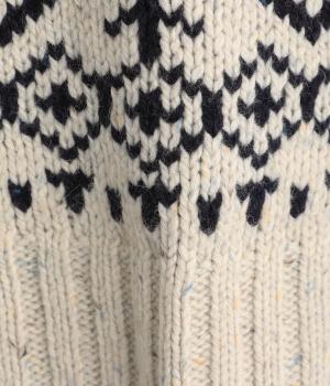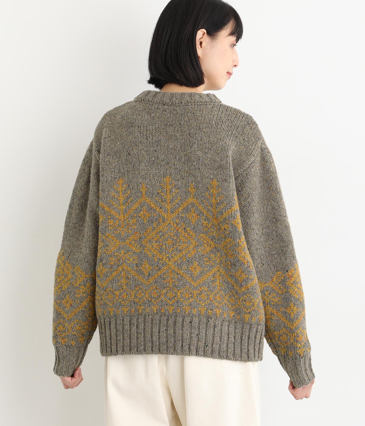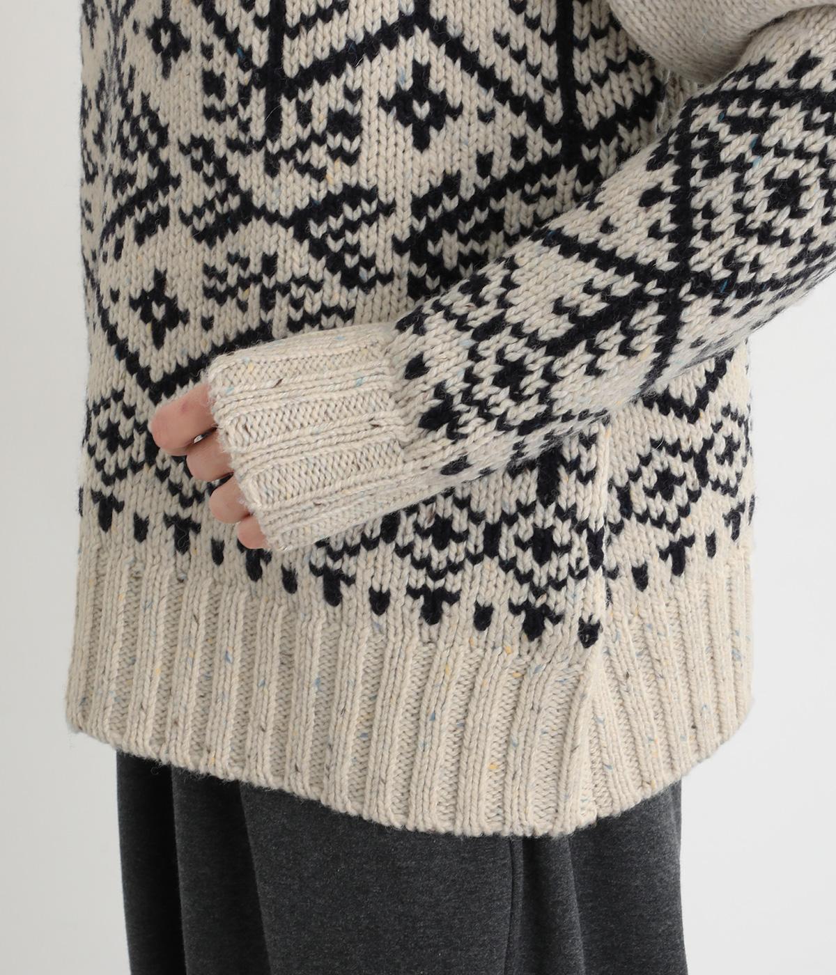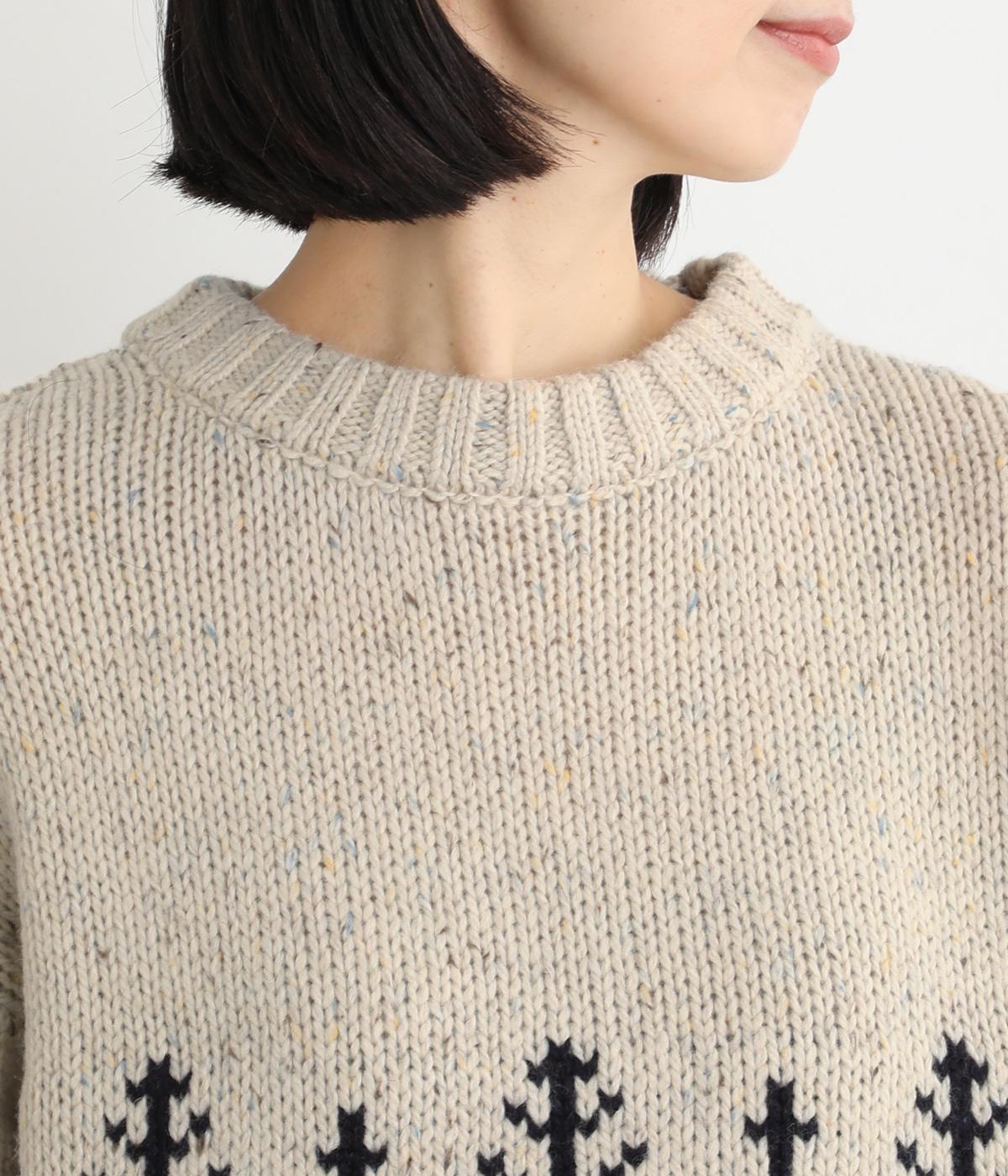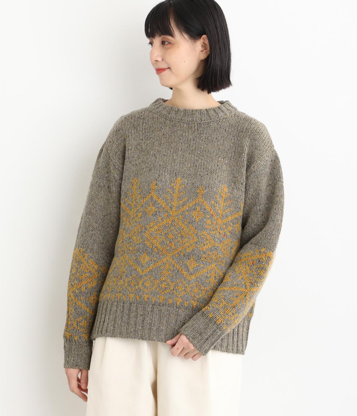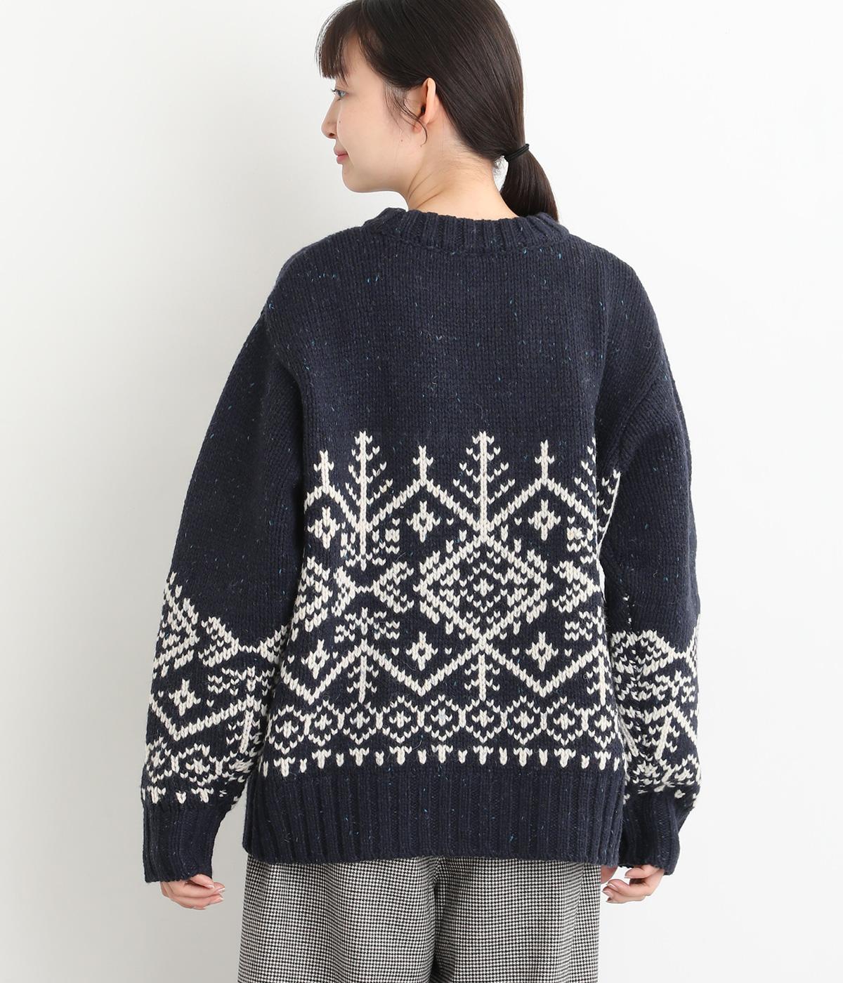 身頃と袖にぐるりと配したジャカード模様が目を引くプルオーバー。ほっこりとした印象になりすぎない、大人の女性にぴったりなデザインに仕上げました。身頃と袖にゆとりを持たせたリラクシーなシルエットも◎です。