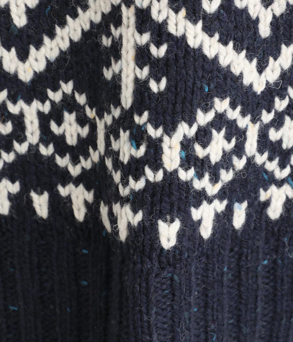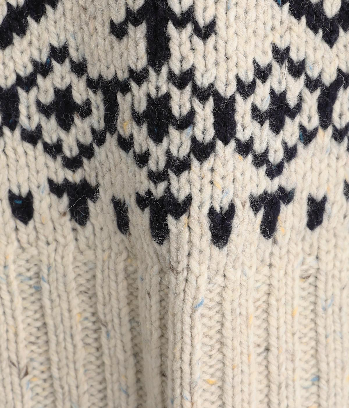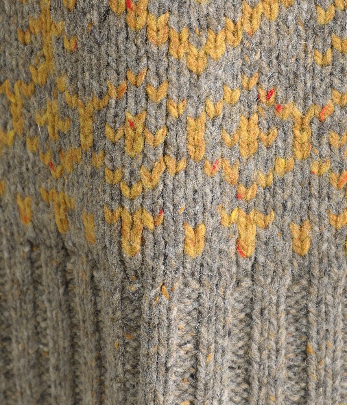 カラーネップ入りの表情豊かなウール混糸を使用してざっくりと編み立てた、見た目にもあたたかみを感じるニット。しっかりとした厚みがあり、寒い時期に重宝します。