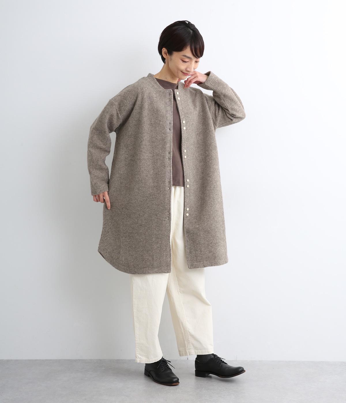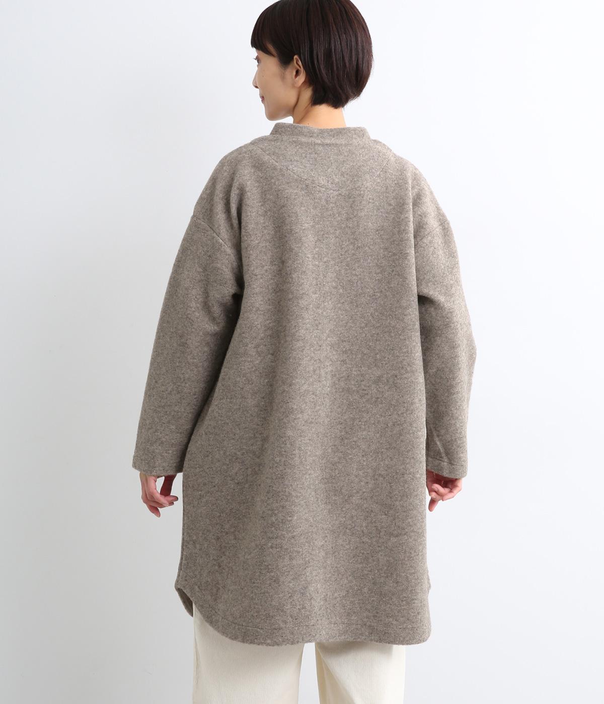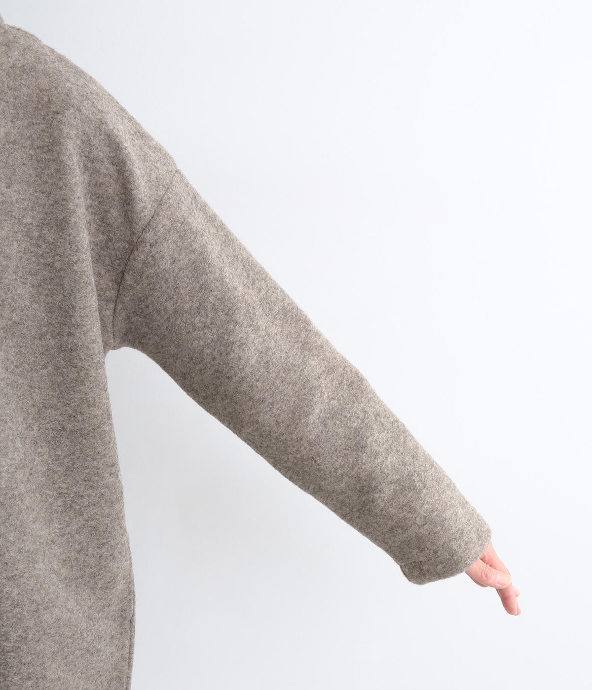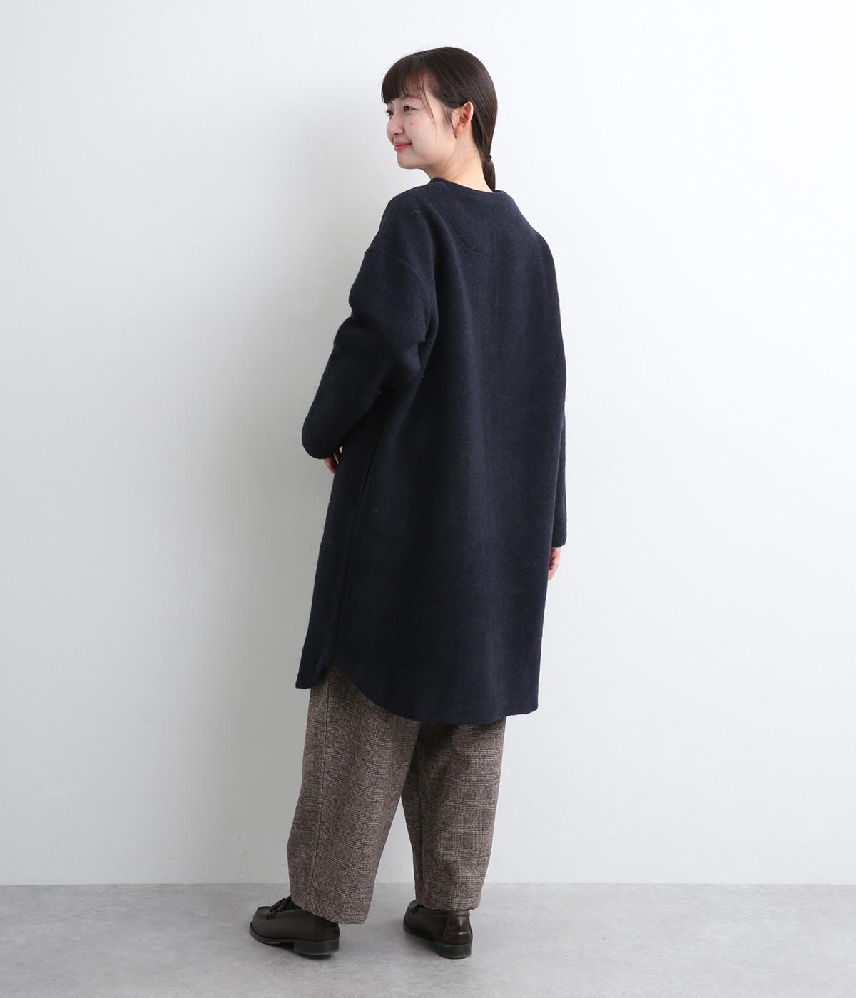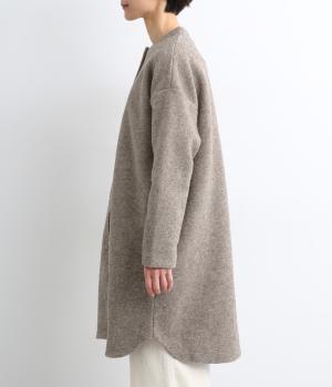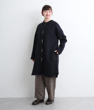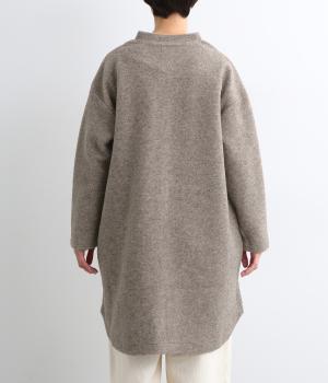 空気をたっぷりと含んだふっくらとした厚みと適度なハリ感、軽さが魅力のウール混スライバーニットを使用。保温性が高く、寒い時期に頼れる生地感です。