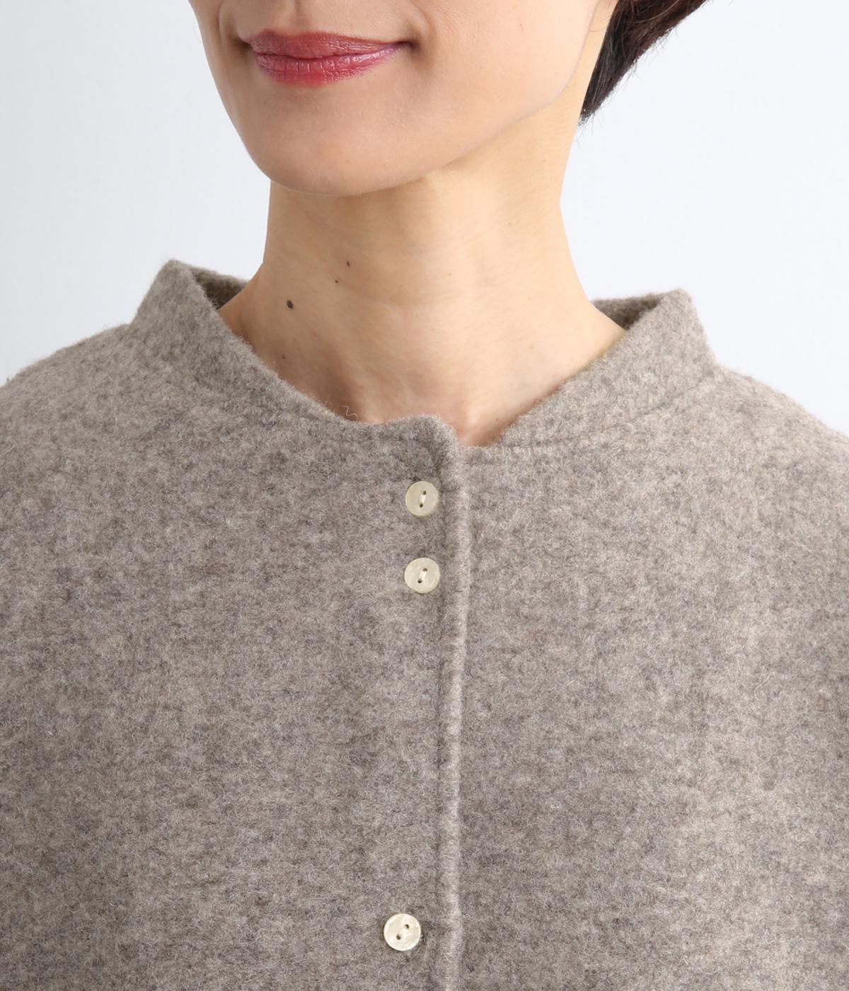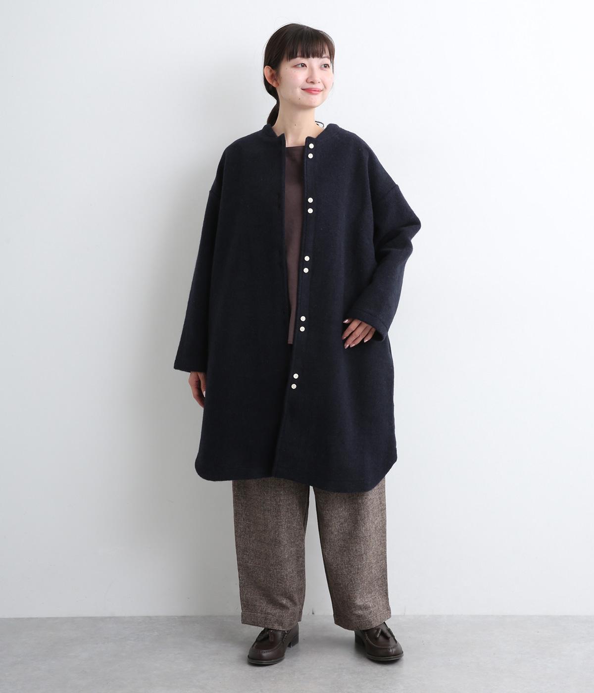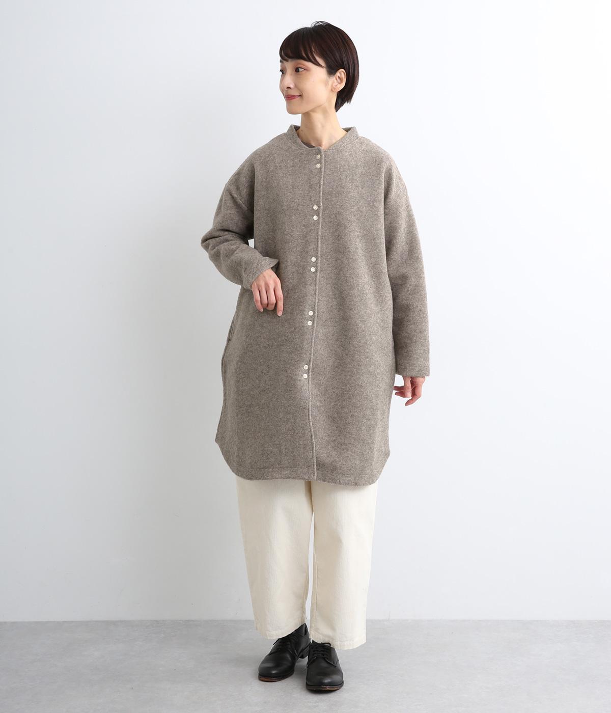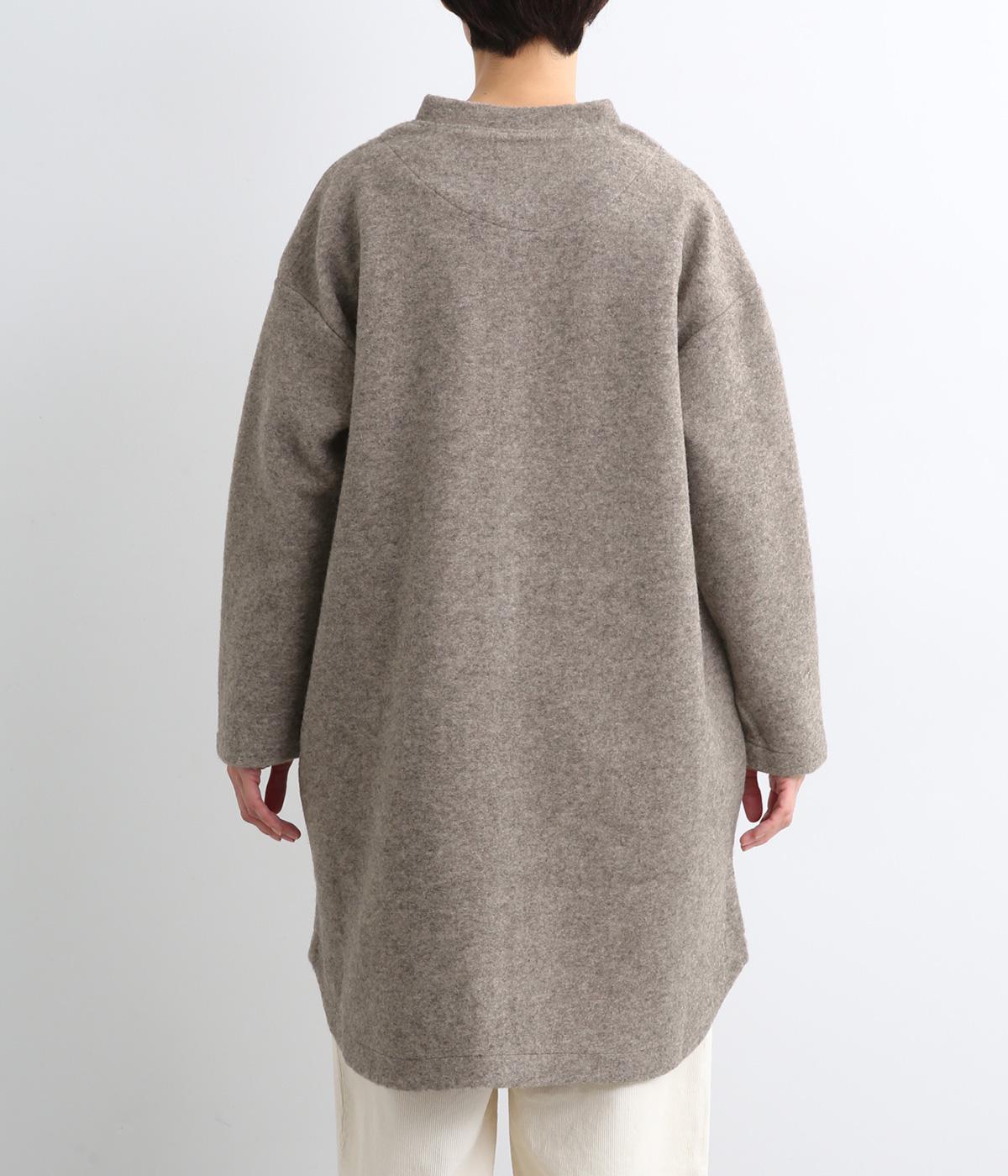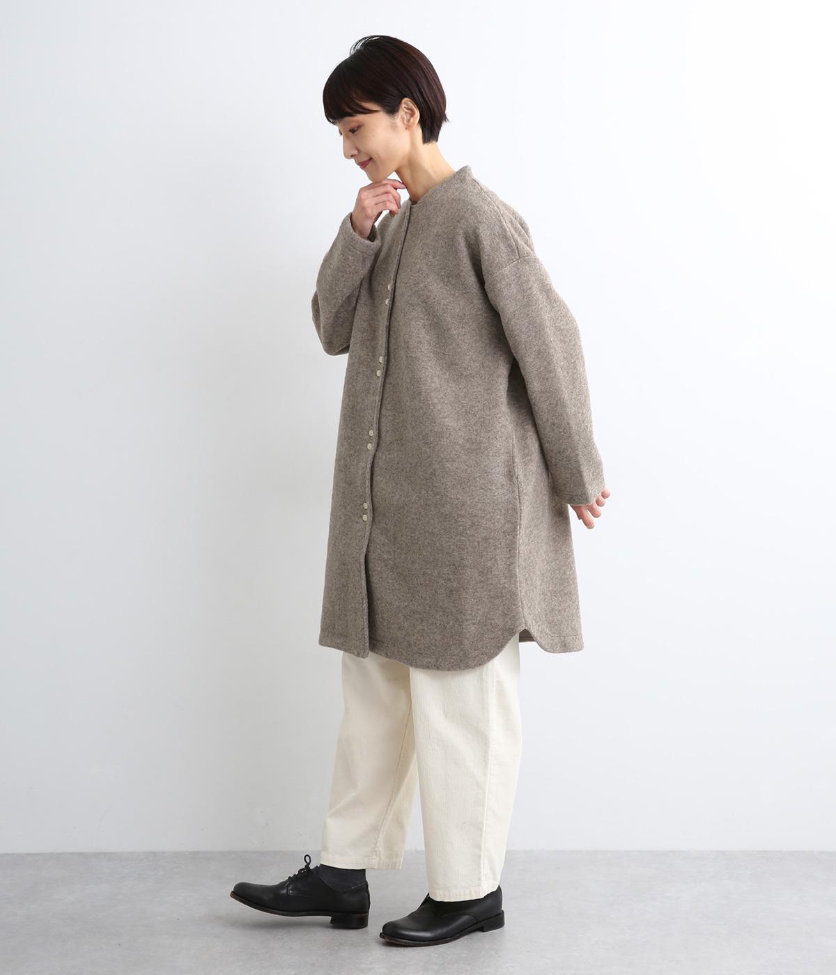 空気をたっぷりと含んだふっくらとした厚みと適度なハリ感、軽さが魅力のウール混スライバーニットを使用。保温性が高く、寒い時期に頼れる生地感です。