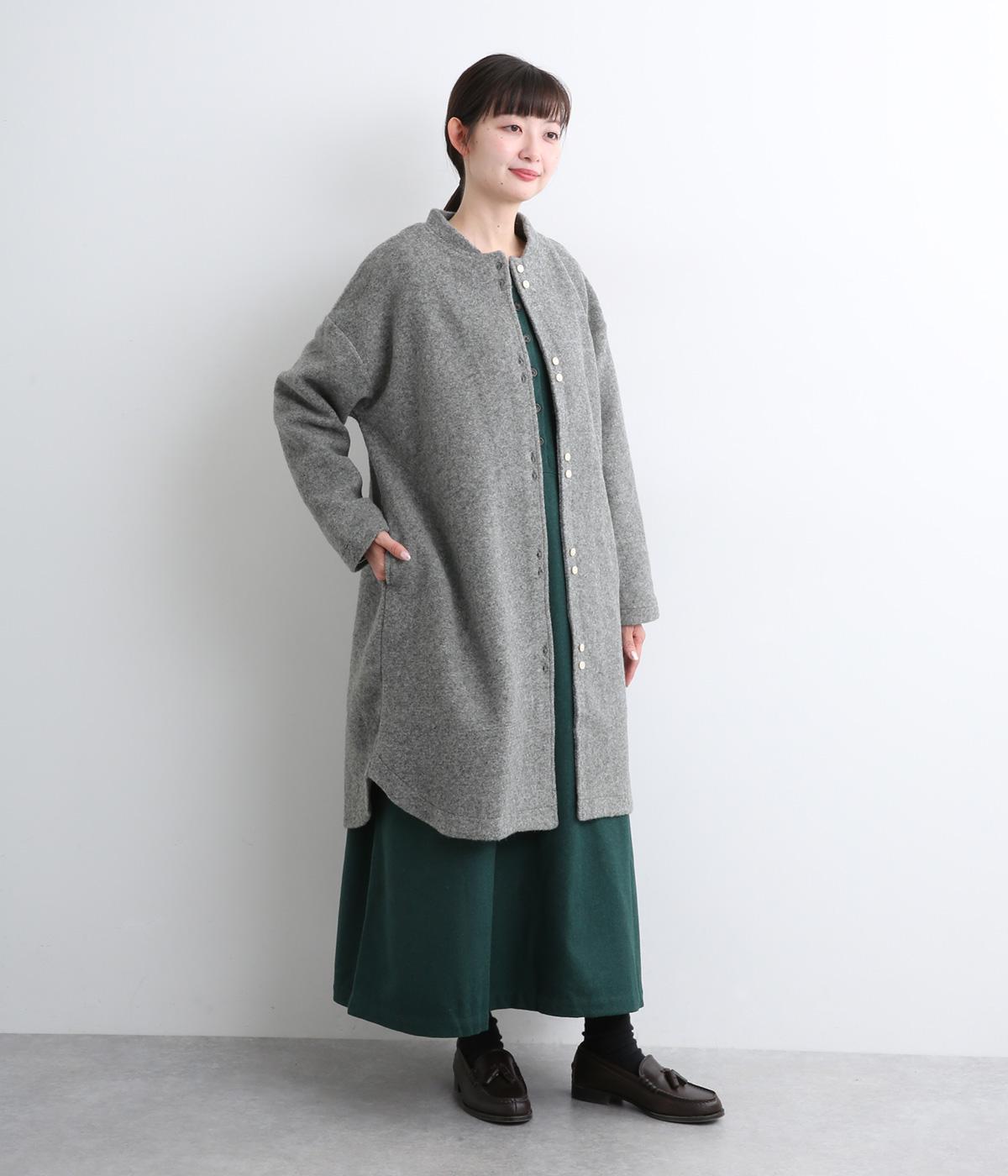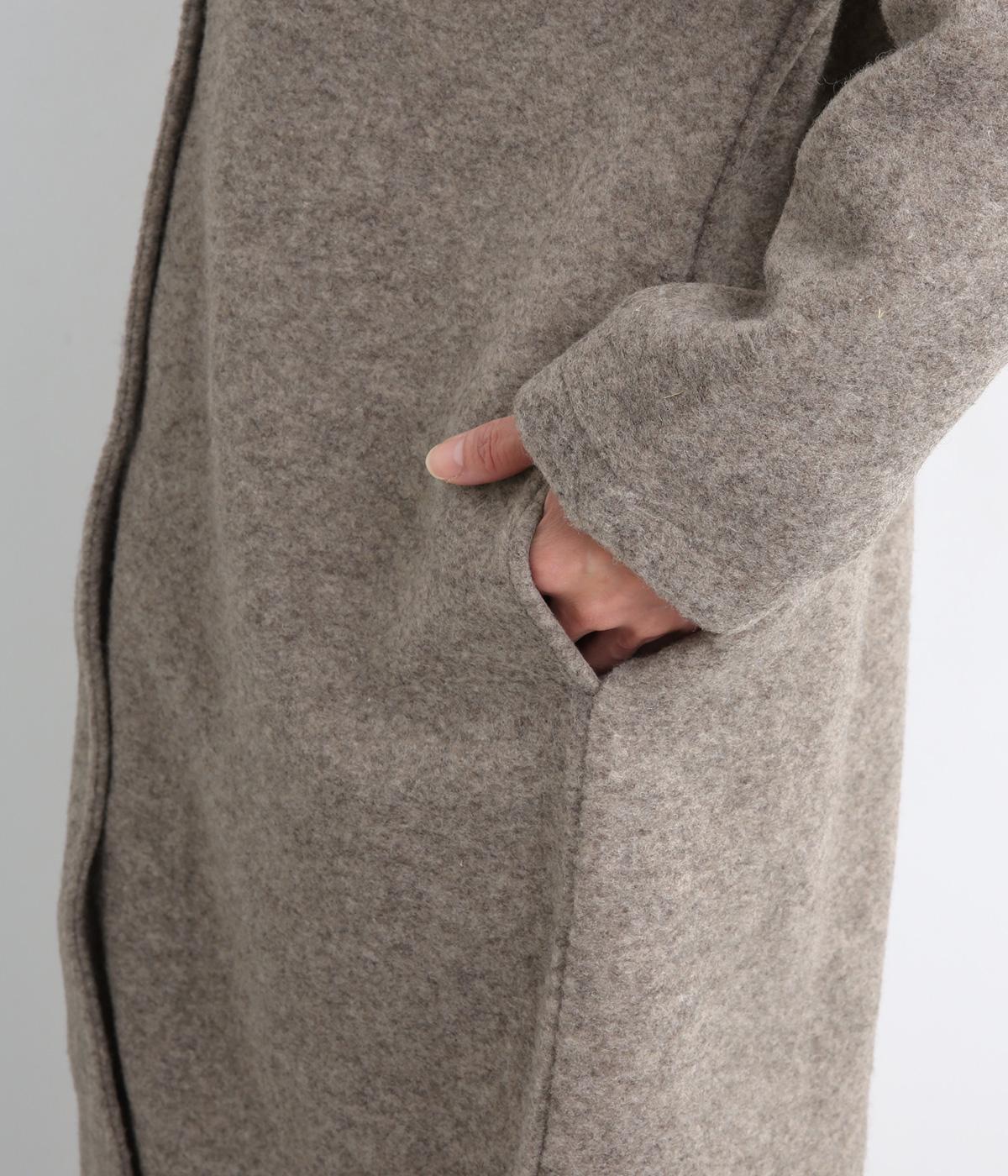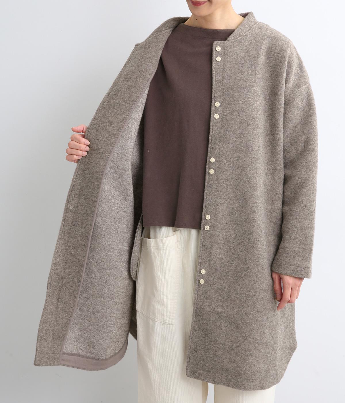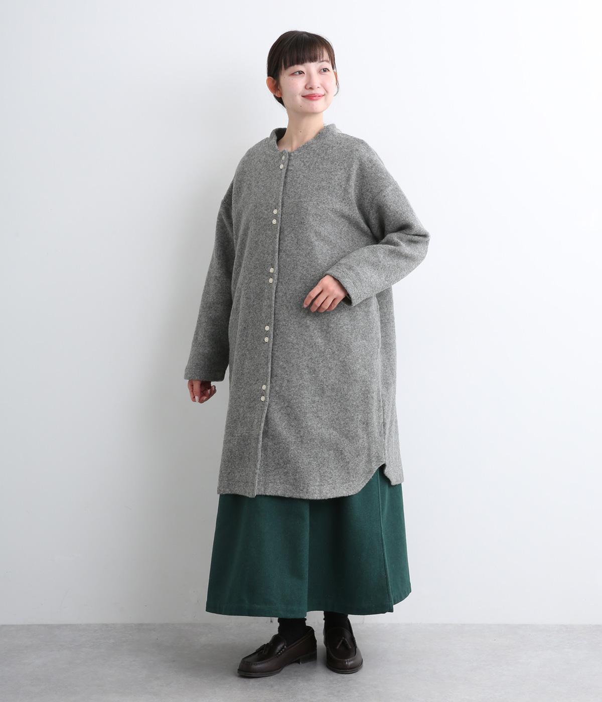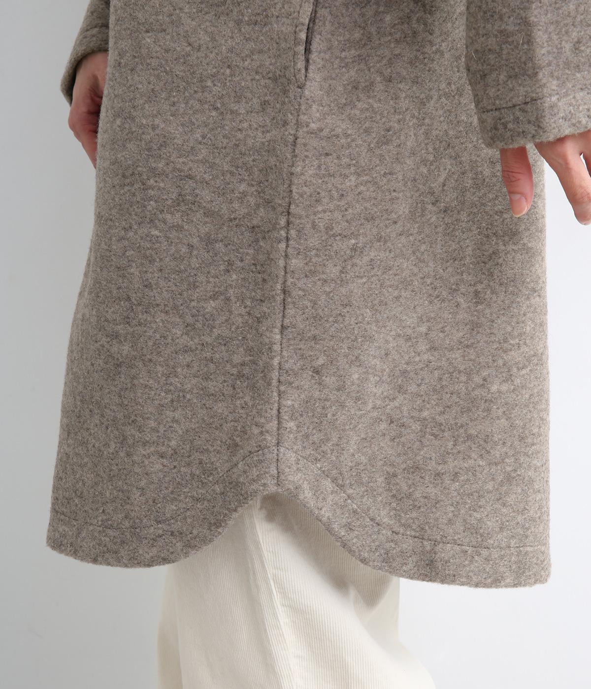 空気をたっぷりと含んだふっくらとした厚みと適度なハリ感、軽さが魅力のウール混スライバーニットを使用。保温性が高く、寒い時期に頼れる生地感です。