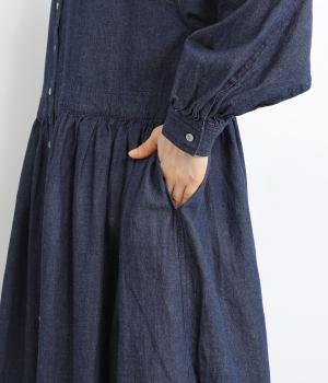 通気性が良く、軽やかな着心地を叶えるコットンとリネンのブレンド素材。適度なハリとやわらかさを両立したデニム生地は、着るほどに風合いが増していくのも魅力です。