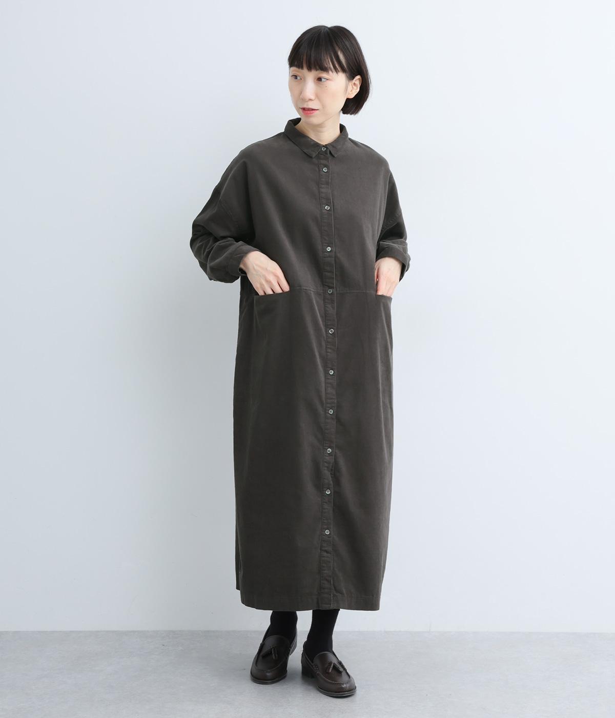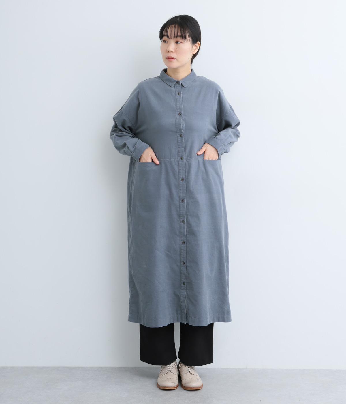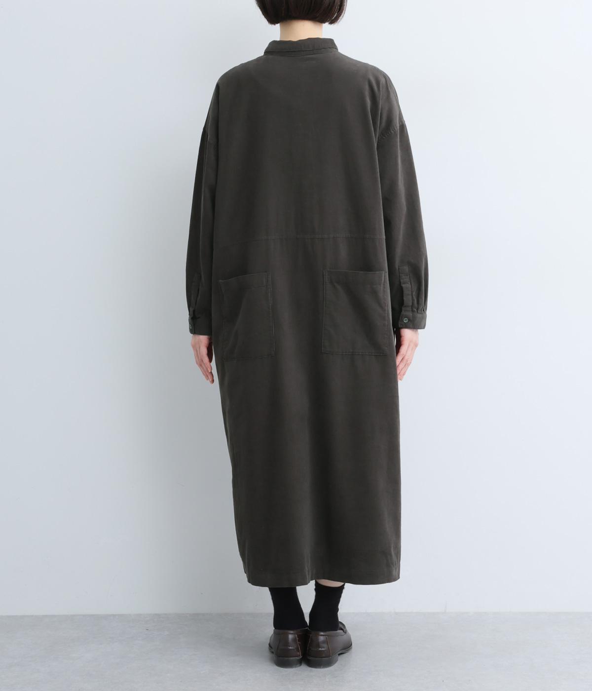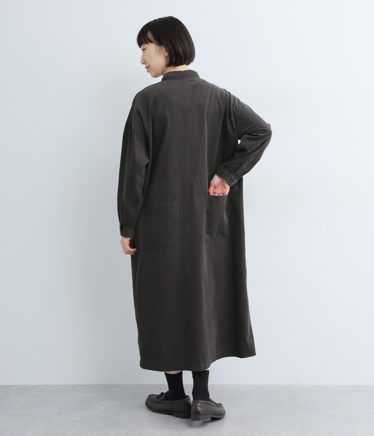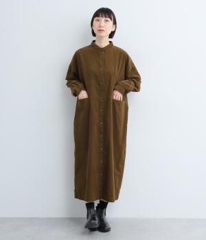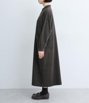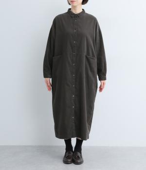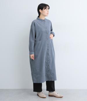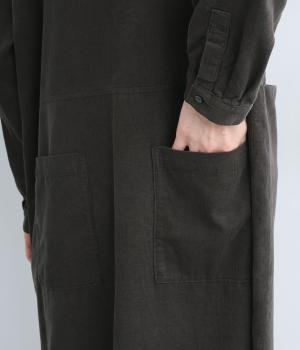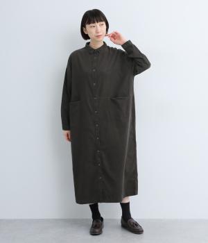 ワイドなシルエットでゆったり着られるワンピース。小さな衿とフロントポケットがアクセントになっています。1枚はもちろん、羽織りとしてレイヤードも楽しめるデザイン。秋冬らしいスモーキーなカラーバリエーションにも注目です。