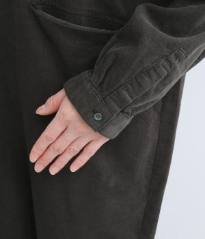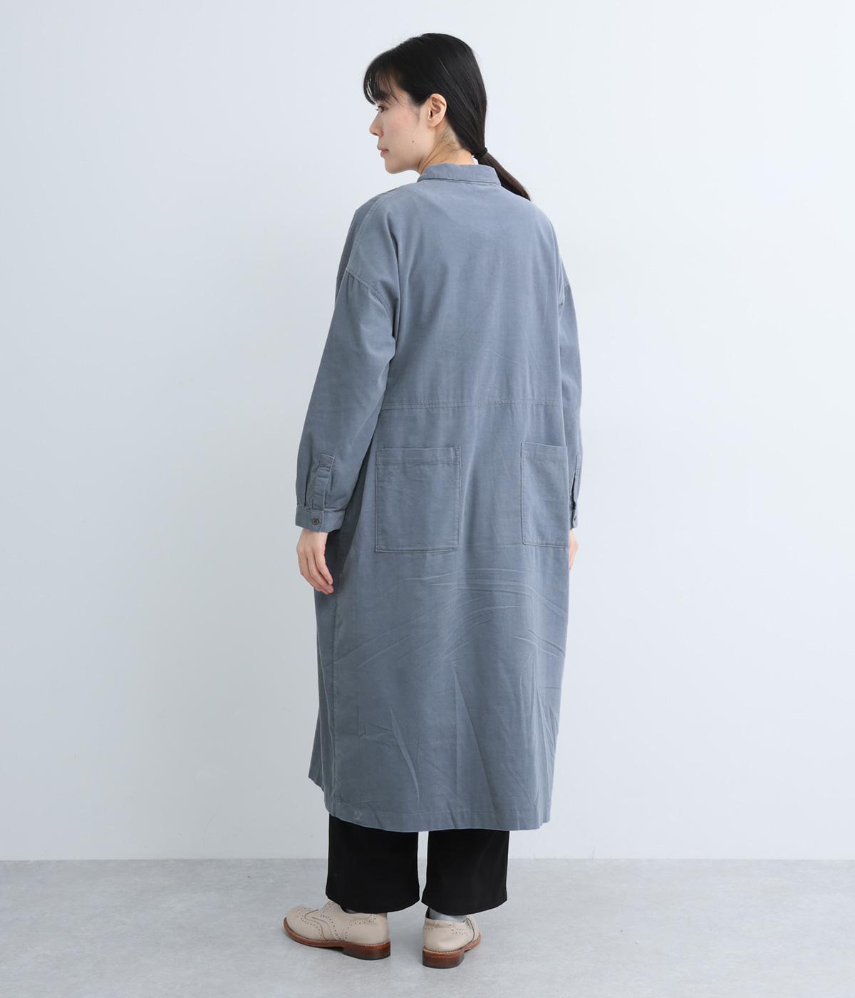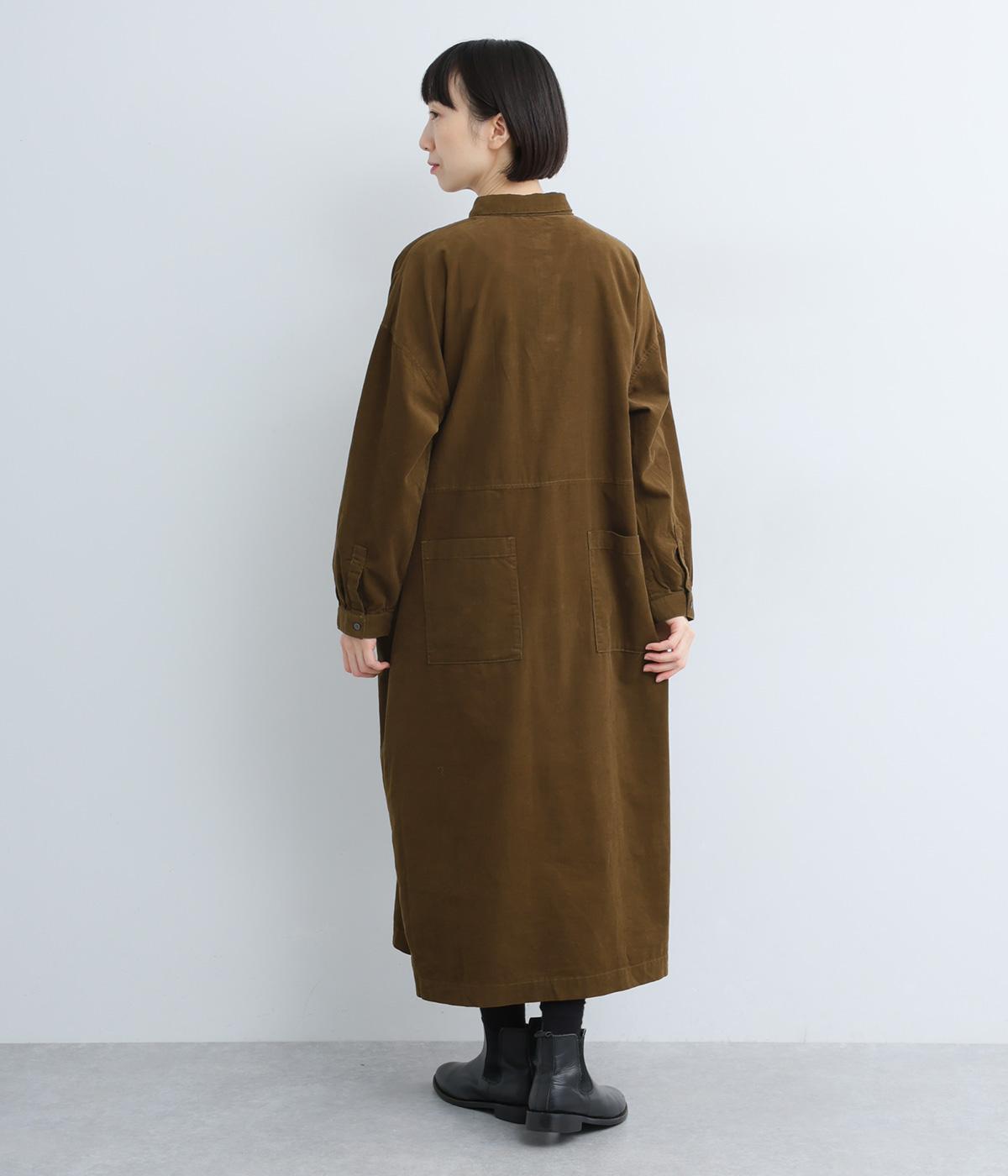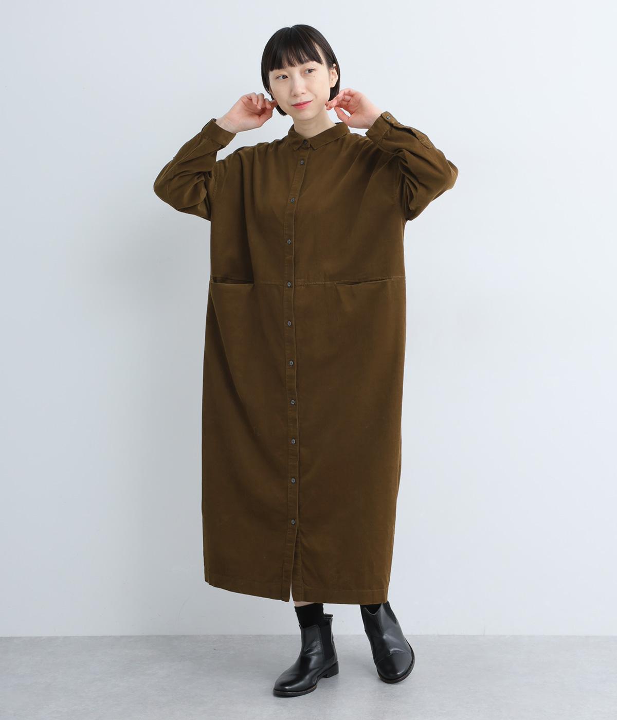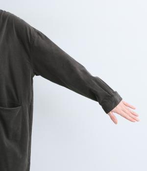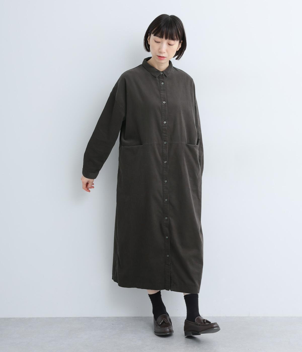 ワイドなシルエットでゆったり着られるワンピース。小さな衿とフロントポケットがアクセントになっています。1枚はもちろん、羽織りとしてレイヤードも楽しめるデザイン。秋冬らしいスモーキーなカラーバリエーションにも注目です。