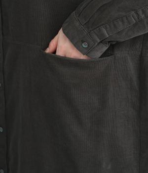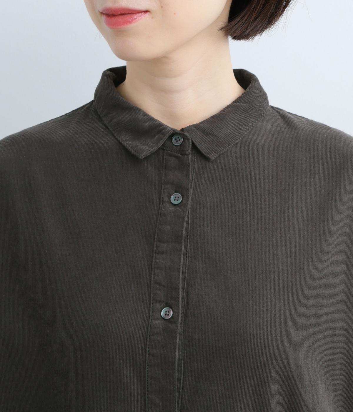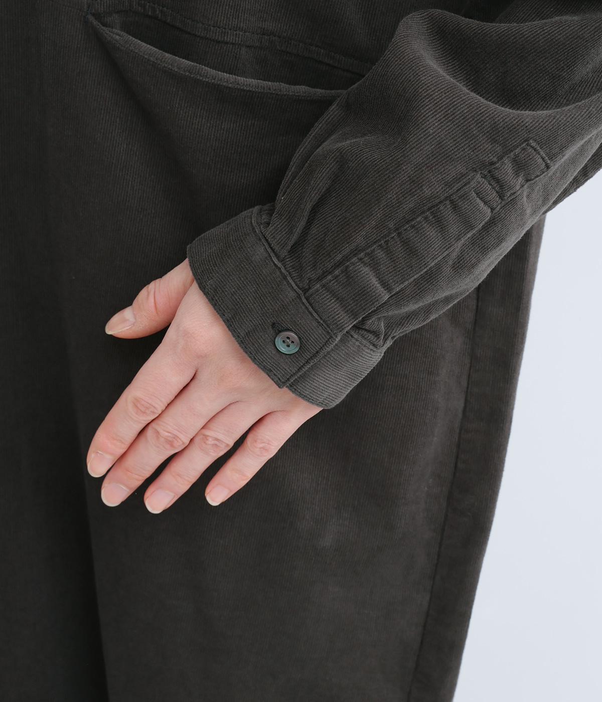表面の畝が特徴的なコットンコーデュロイ生地。畝による凸凹が空気を蓄え、あたたかい着心地です。細畝なのでカジュアルすぎず上品に仕上がります。