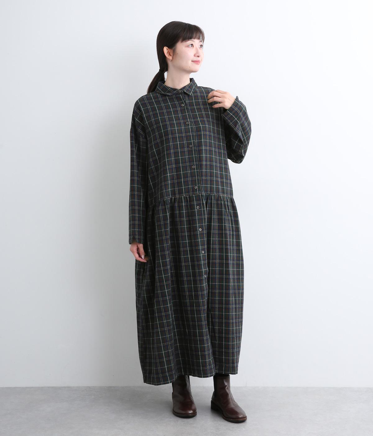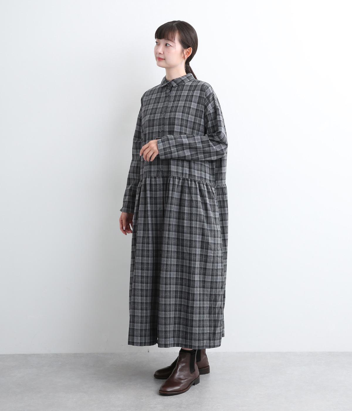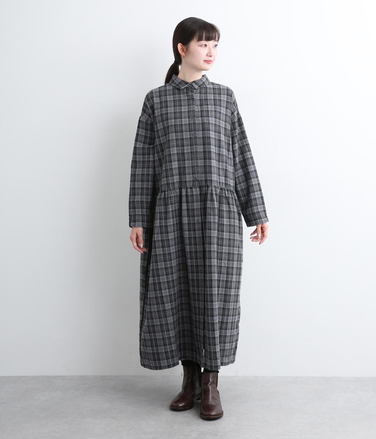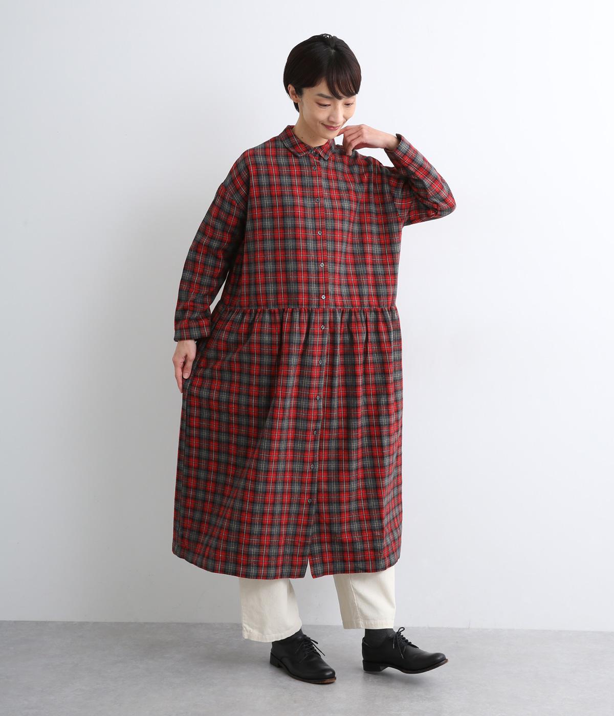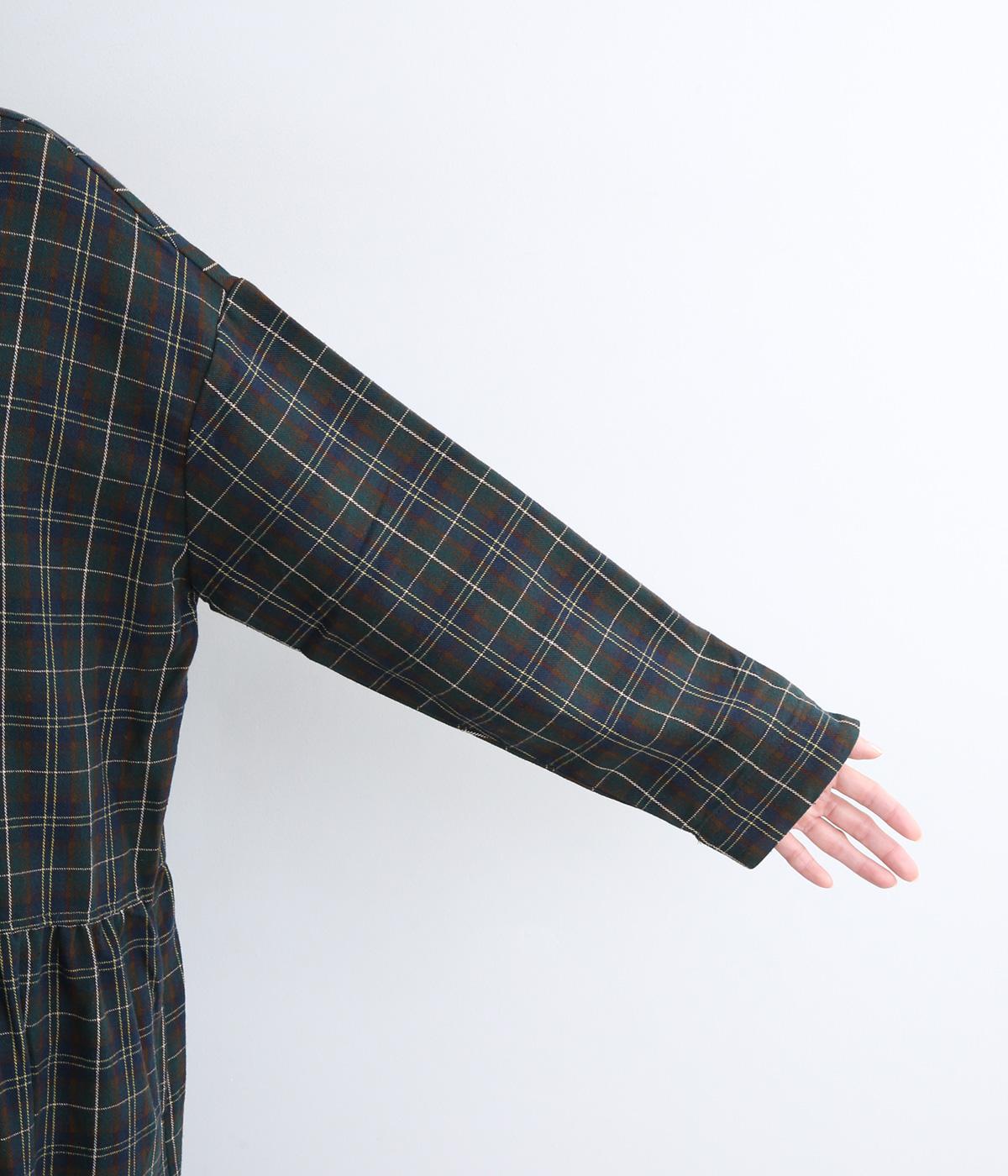 起毛がかった表面とチェック柄があたたかみを感じさせるコットンレーヨン生地。厚みをおさえた軽くてやわらかな風合いで、ストレスフリーに着ていただけます。
