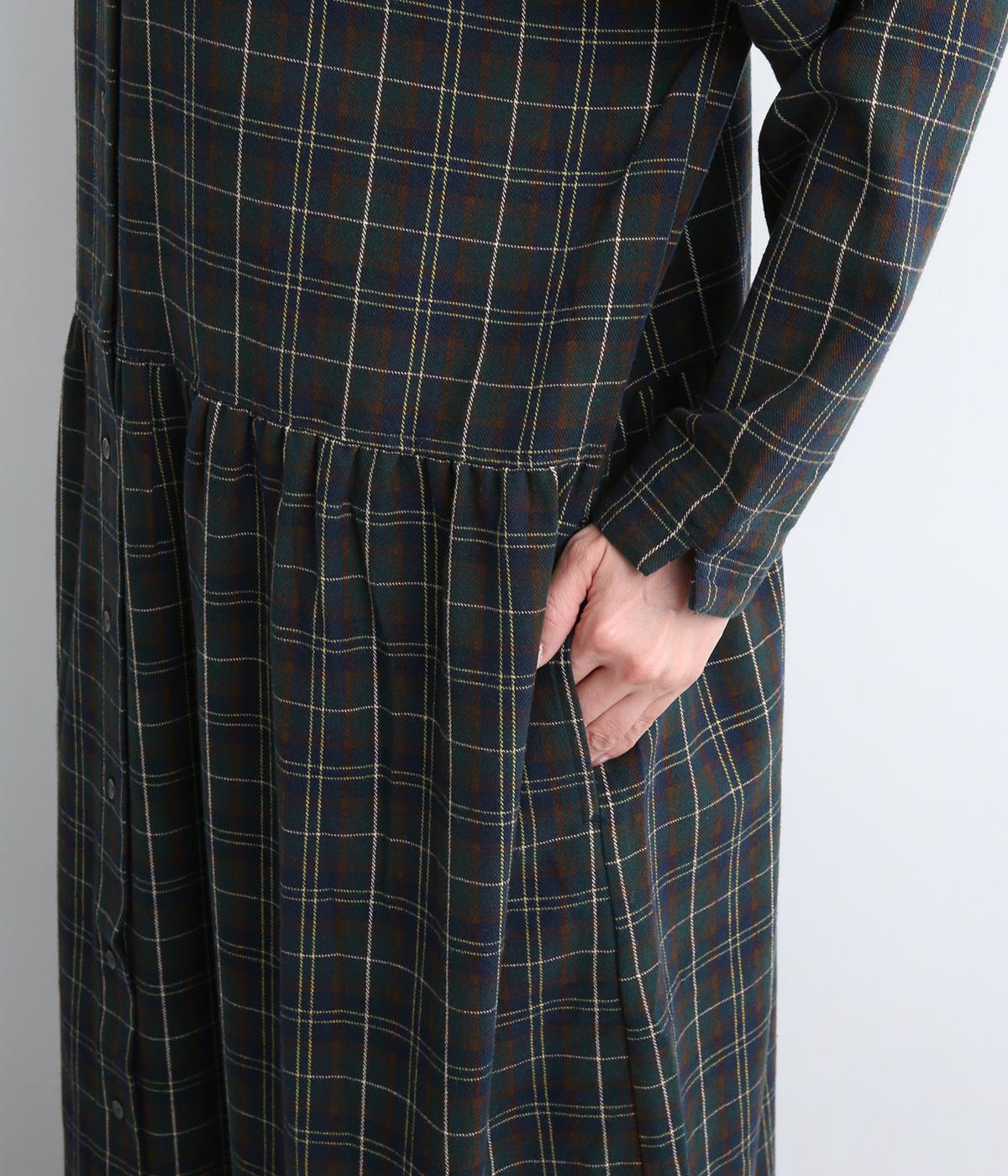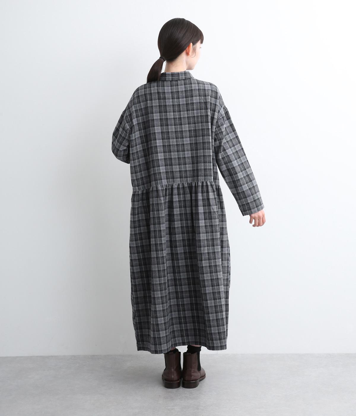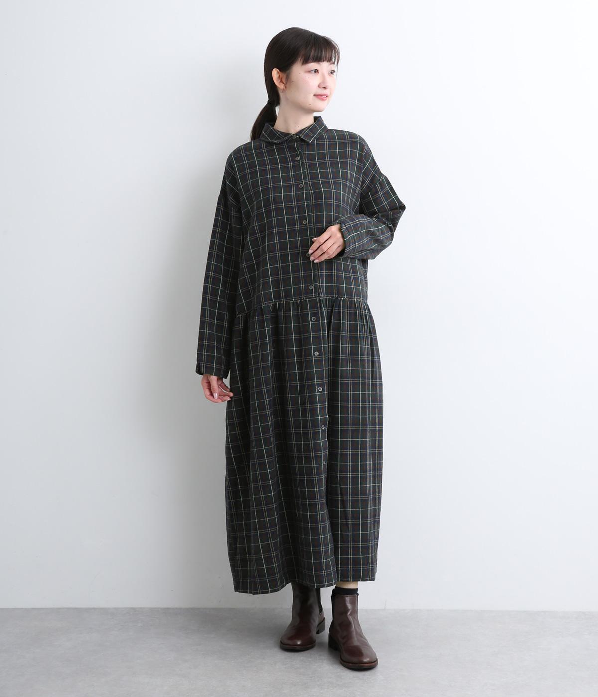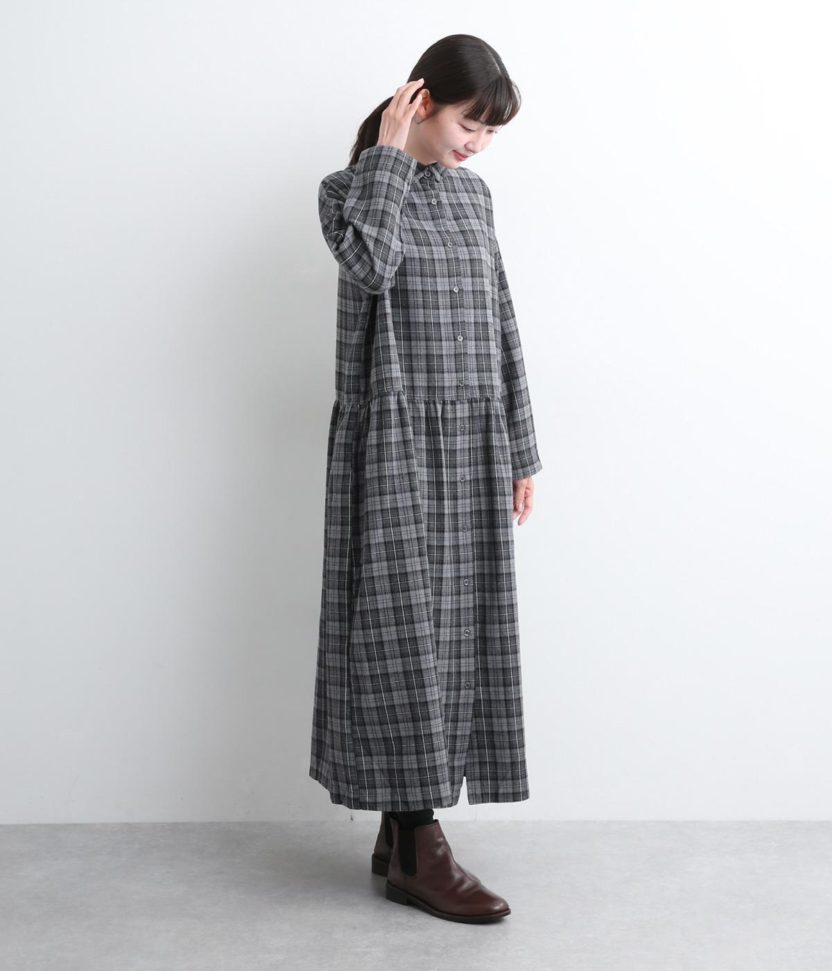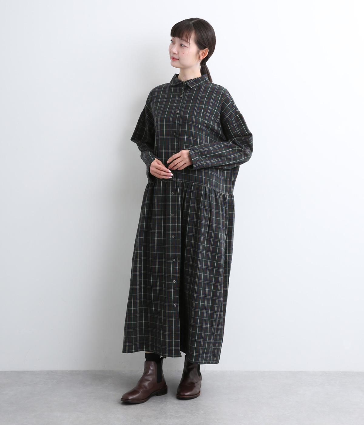 起毛がかった表面とチェック柄があたたかみを感じさせるコットンレーヨン生地。厚みをおさえた軽くてやわらかな風合いで、ストレスフリーに着ていただけます。