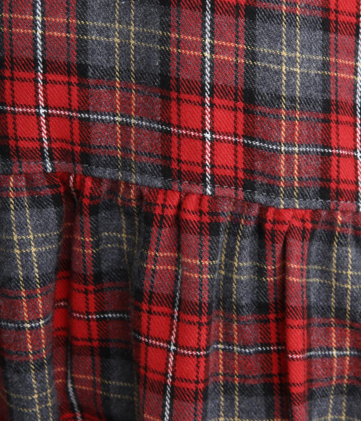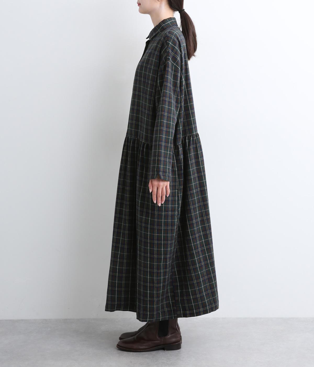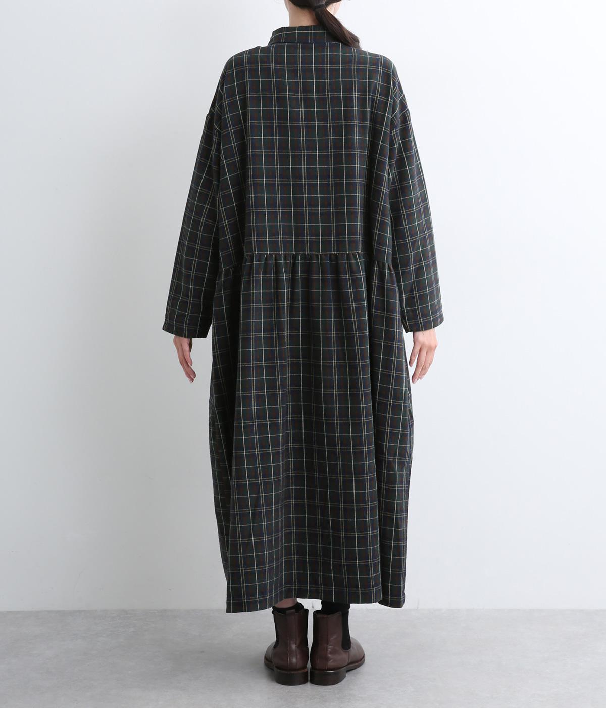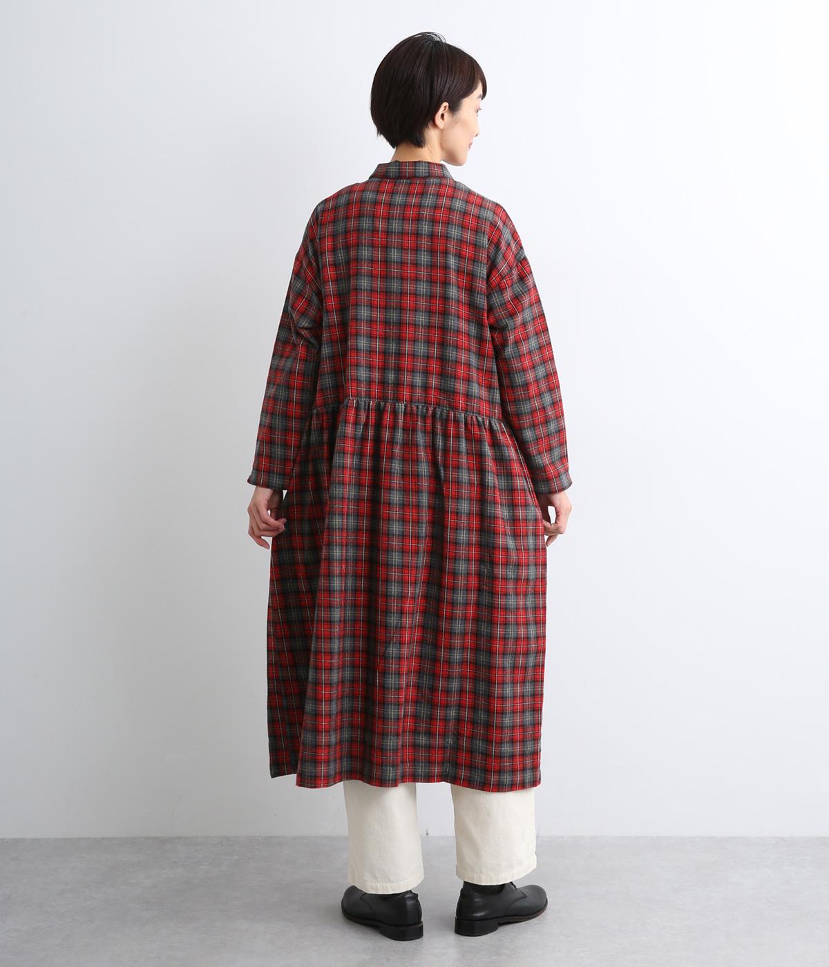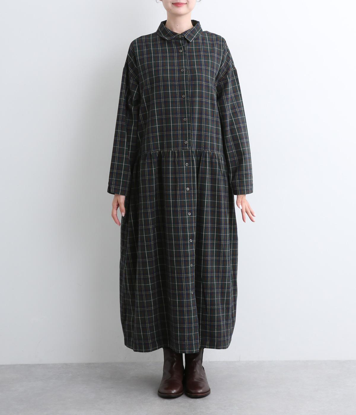起毛がかった表面とチェック柄があたたかみを感じさせるコットンレーヨン生地。厚みをおさえた軽くてやわらかな風合いで、ストレスフリーに着ていただけます。