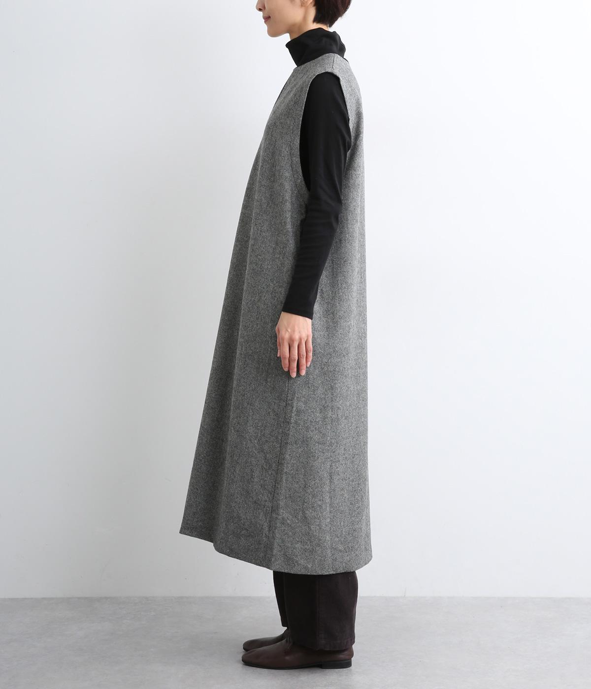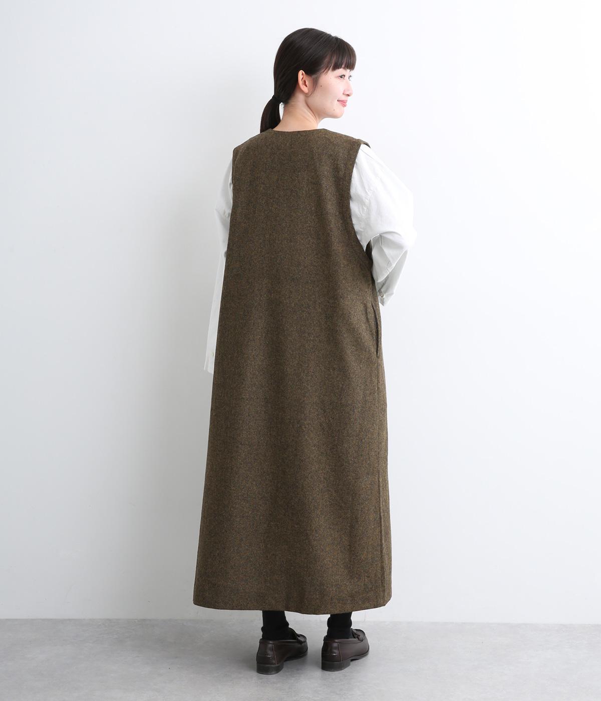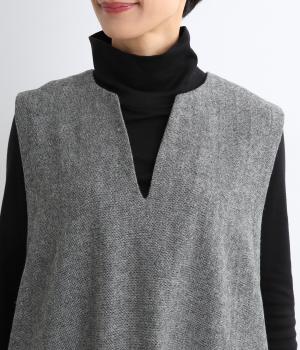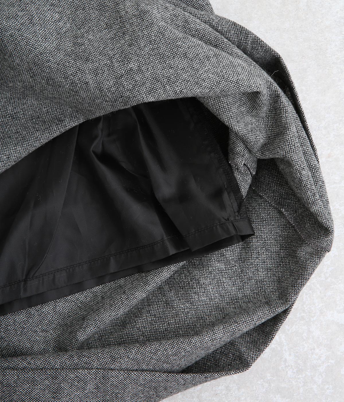 ウールを混紡して起毛感のあるあたたかな生地に仕上げました。適度なハリと柔らかさを持ちあわせた絶妙な風合いと、ツイードならではの素朴で上品な見た目が魅力。さらりとした裏地つきです。