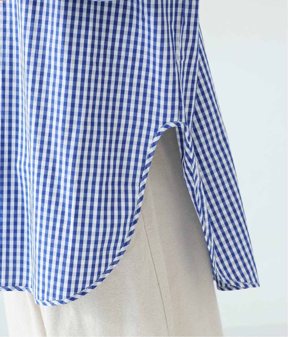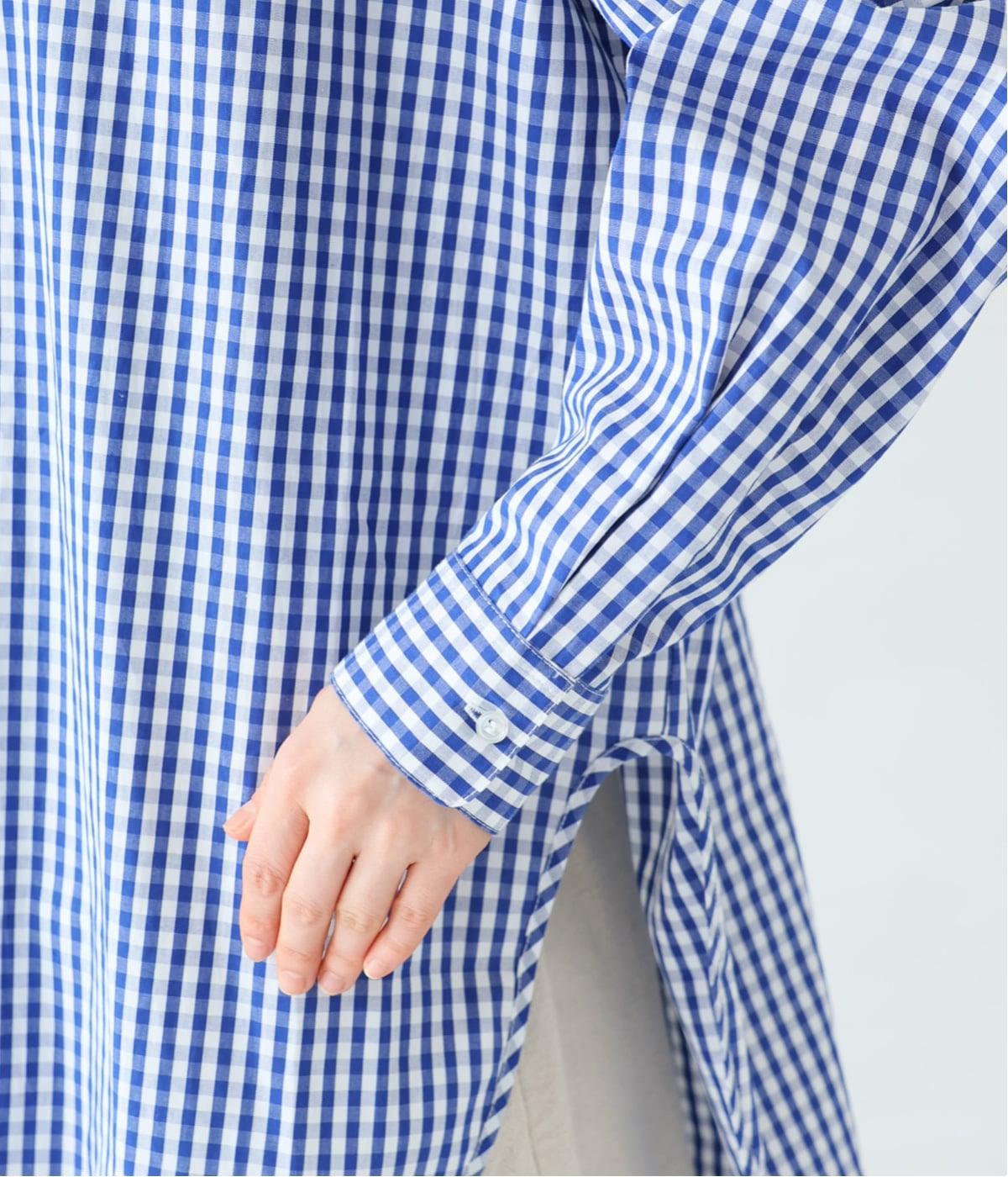 ちょっぴりマニッシュな雰囲気のブルーギンガムのビッグシャツ。
