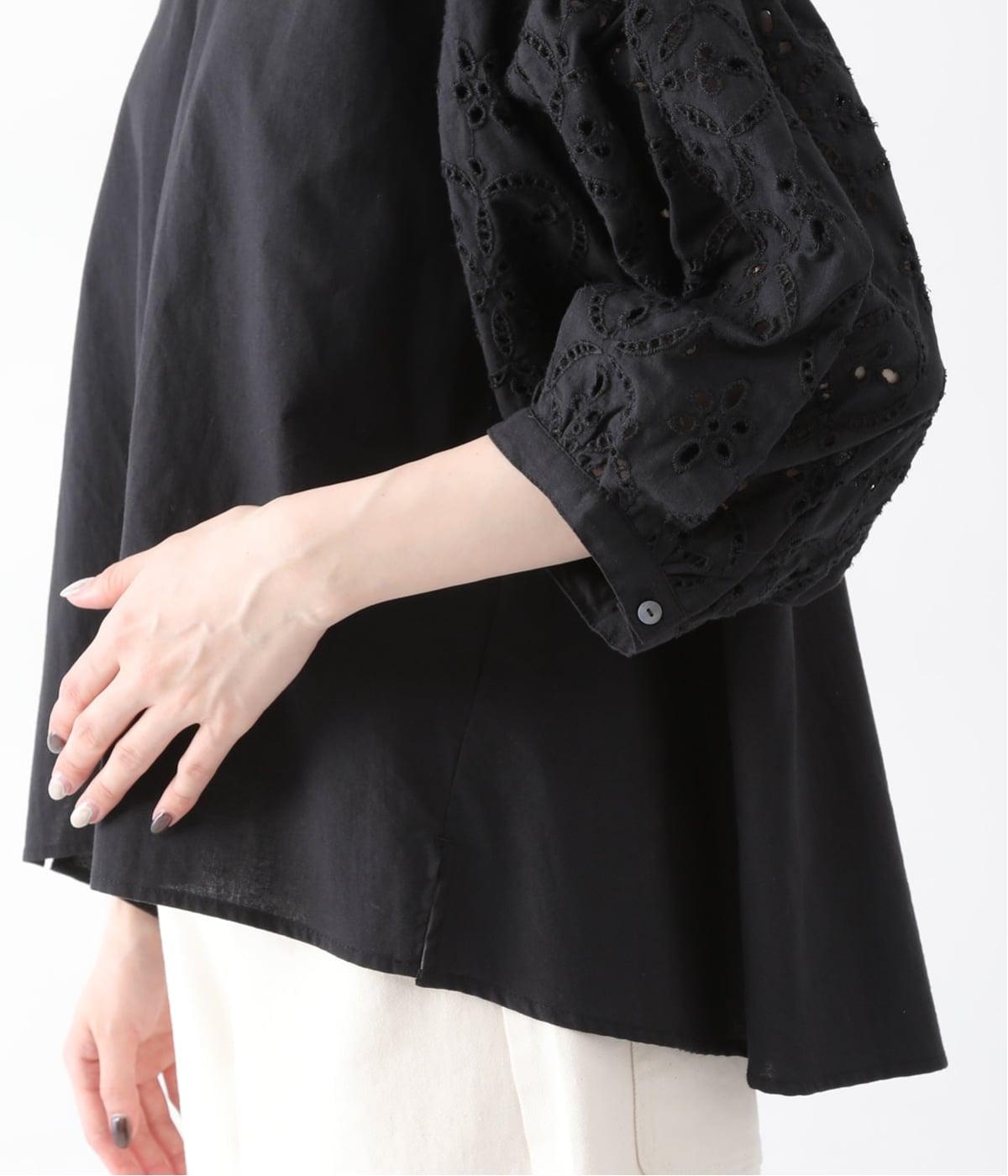 顔まわりが華やぐ。袖レースのブラウス