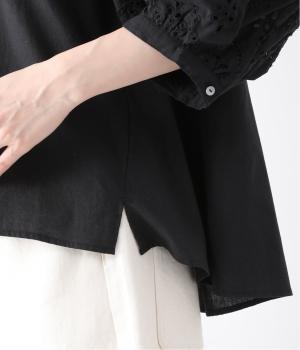 身頃と同じコットンを使い、袖のみ刺繍工房でつくってもらったこだわりの刺繍。糸がぎゅっと蜜で、細かくきれいなのが特徴です。