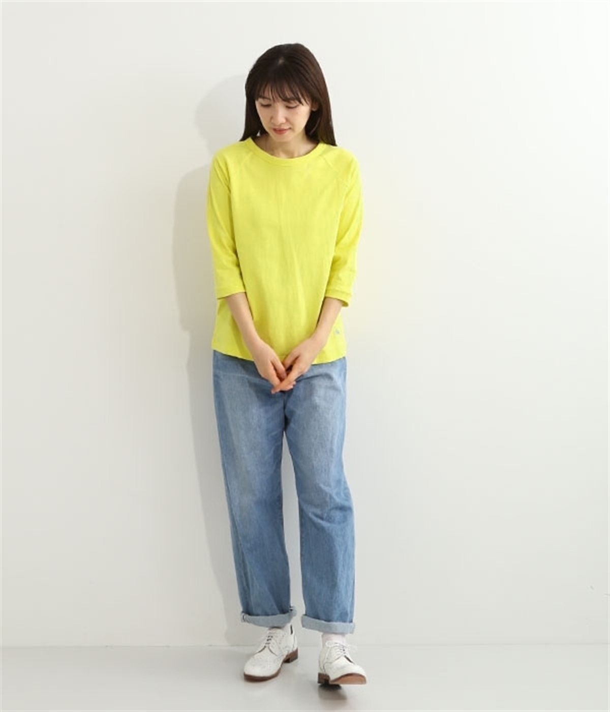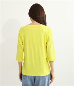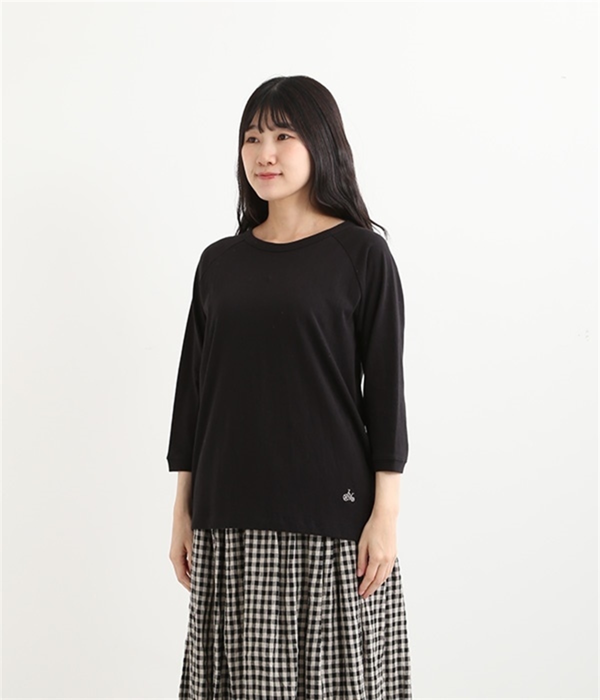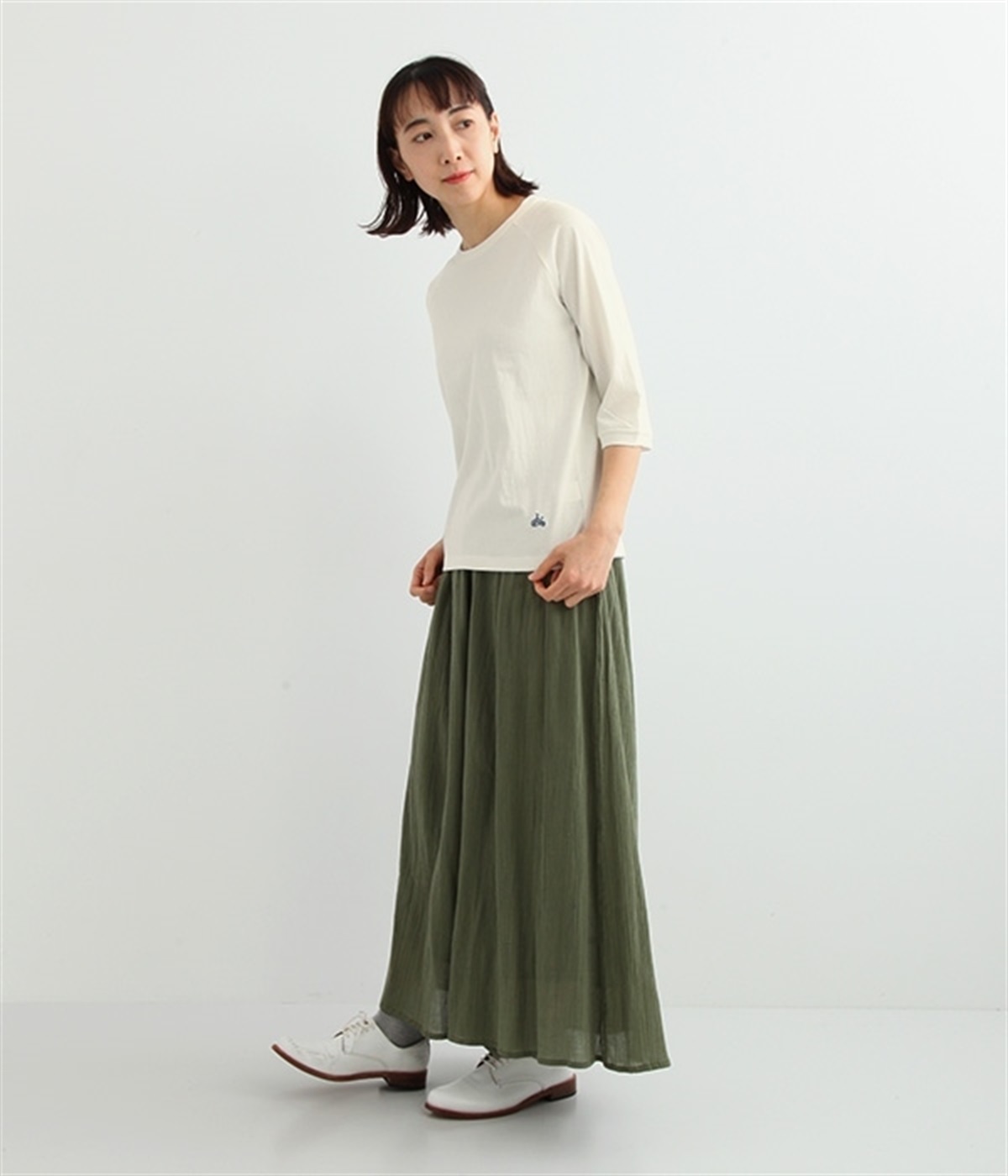 生地の凹凸やネップのある豊かな表情が特徴で、着るほどに風合いが増し肌になじんでいく七分袖のTシャツです。紡績工程で出る落ち綿などを再利用した、リサイクルコットン仕立て。袖部分は肩を動かしやすいラグランスリーブに仕上げています。自転車モチーフのワンポイント刺しゅうがアクセント。大人のカジュアルスタイルに最適な、使いやすいカラー展開も魅力です。
