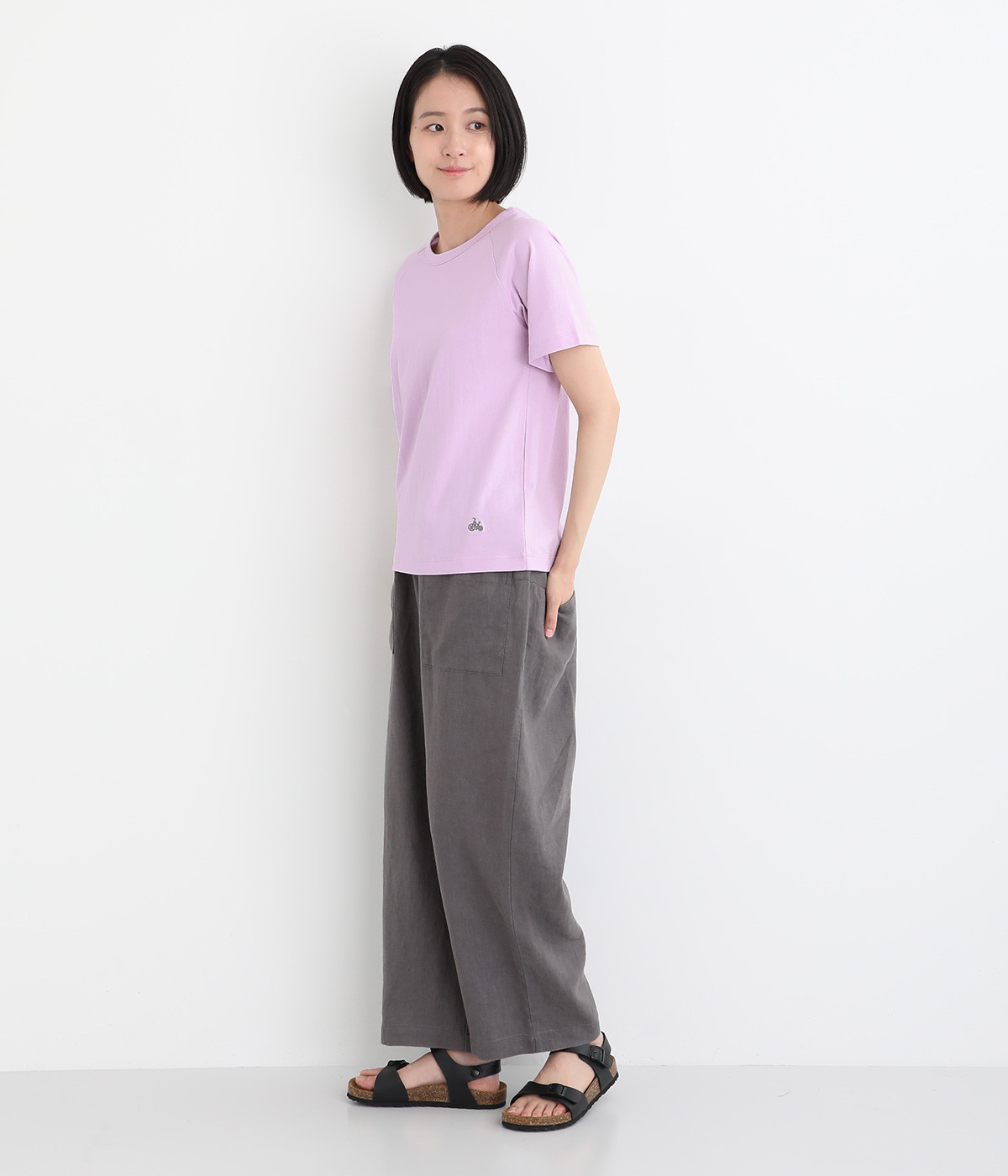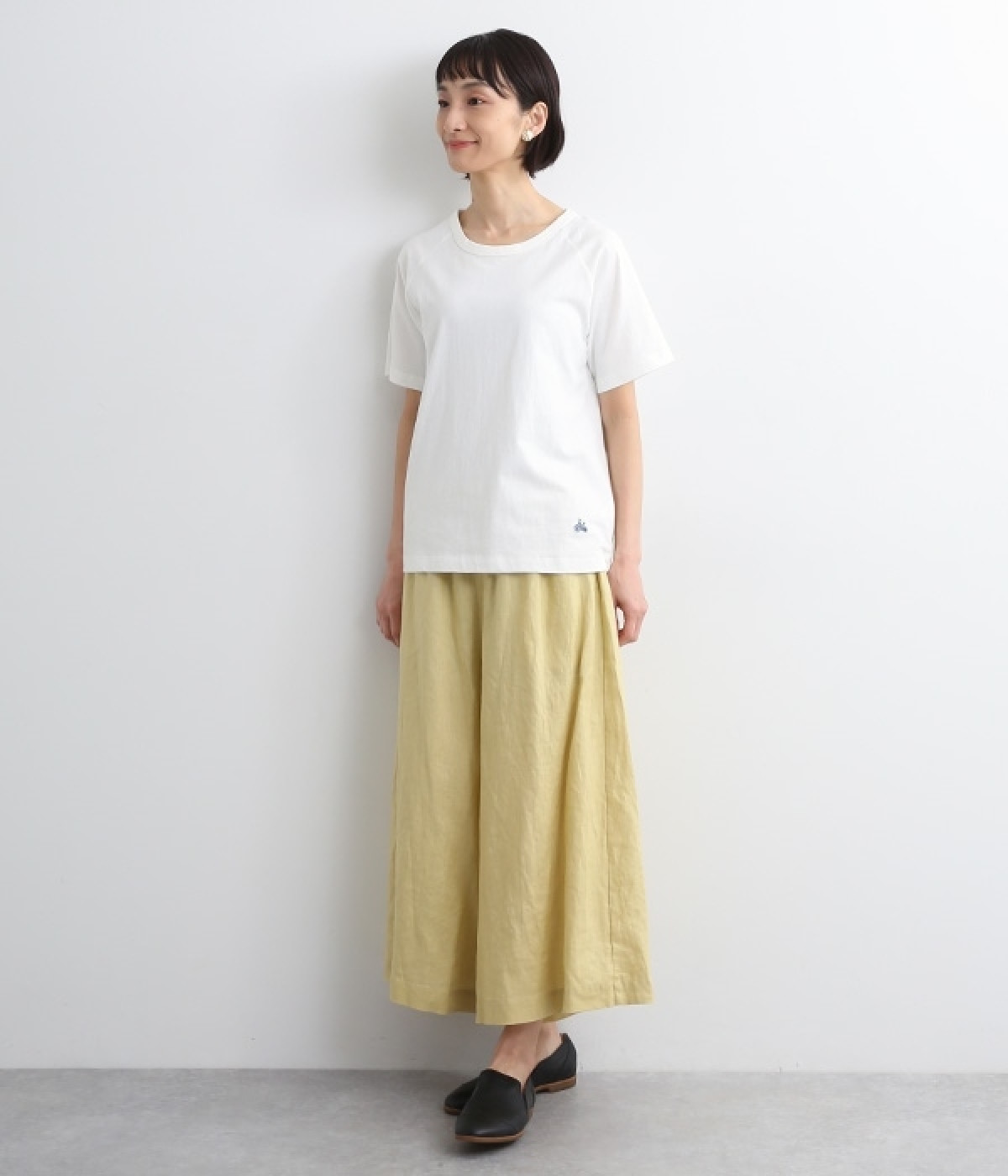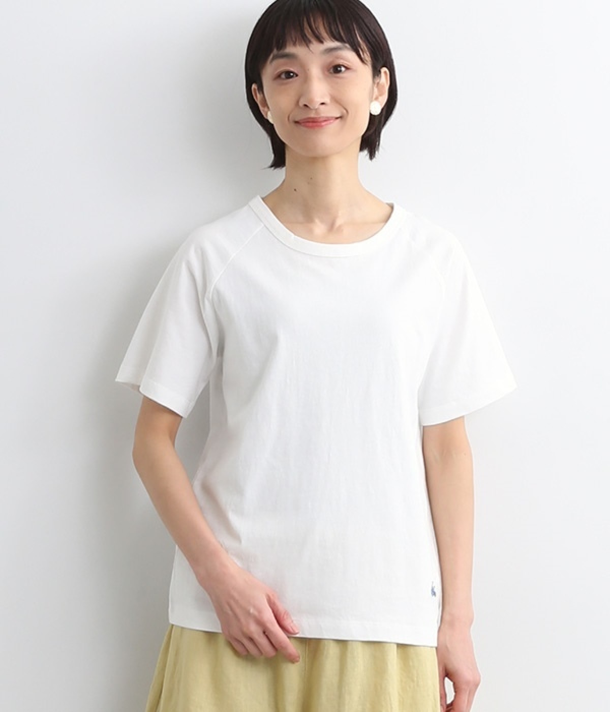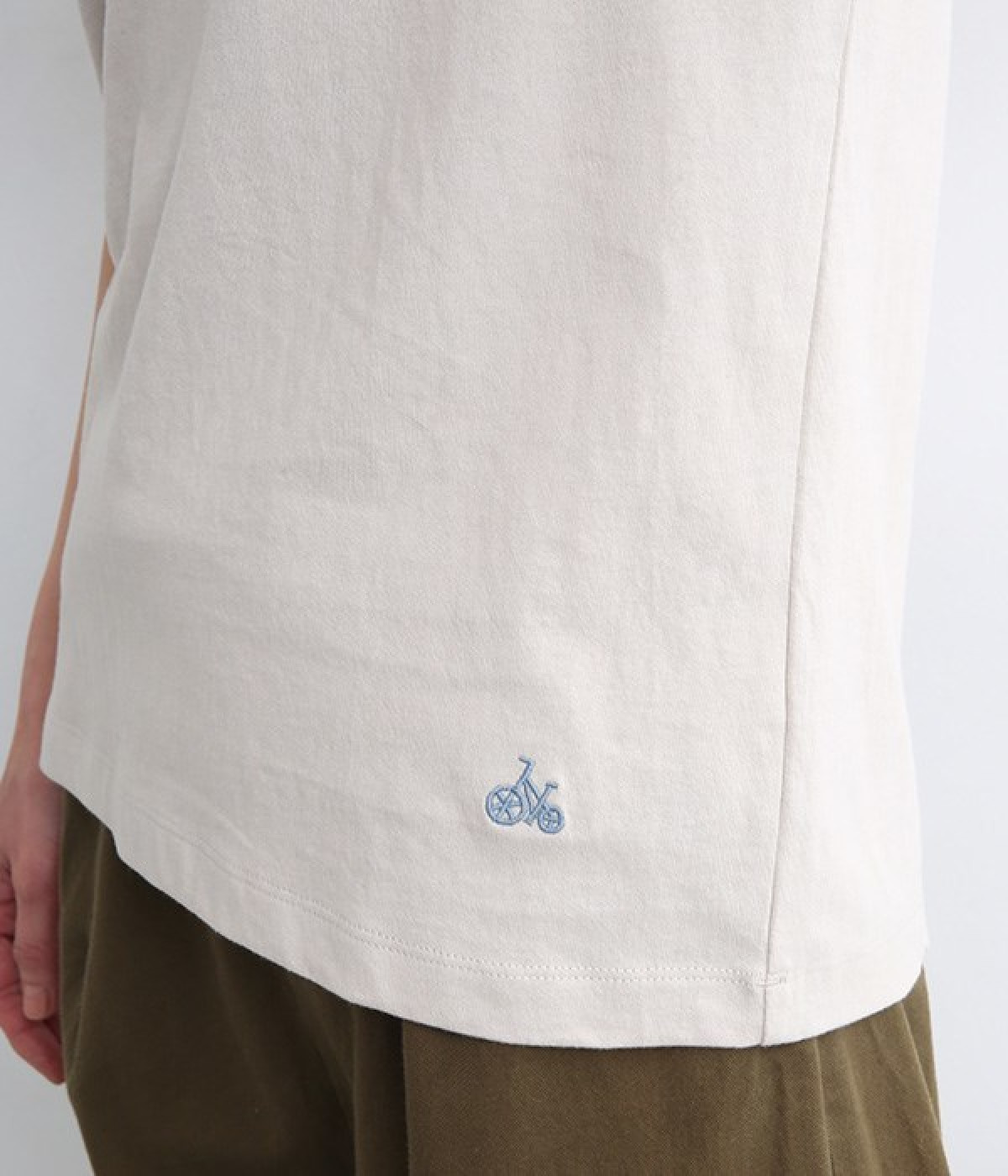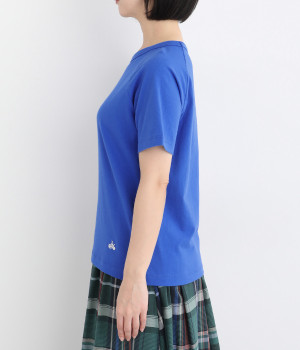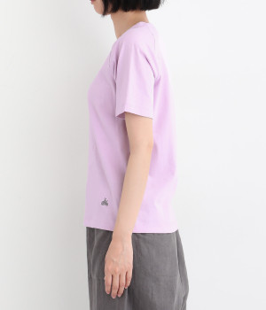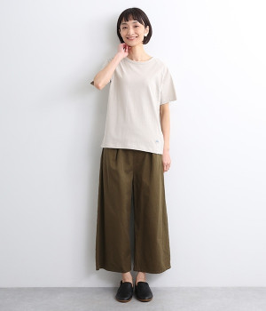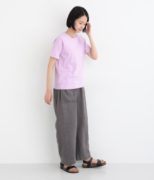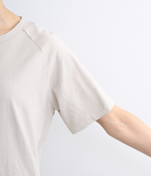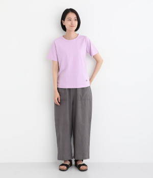 リサイクルコットンを使用した、軽やかな肌触りが特徴のTシャツです。生地のさりげない凸凹やネップのある表情が豊かで、洗うたびに風合いが増し、肌に馴染んでいきます。ほどよいあきのクルーネックで顔まわりがすっきりと見えるのが魅力。裾のワンポイント刺繍がさりげないアクセントになっています。重ね着のインナーとしても活躍するアイテムです。