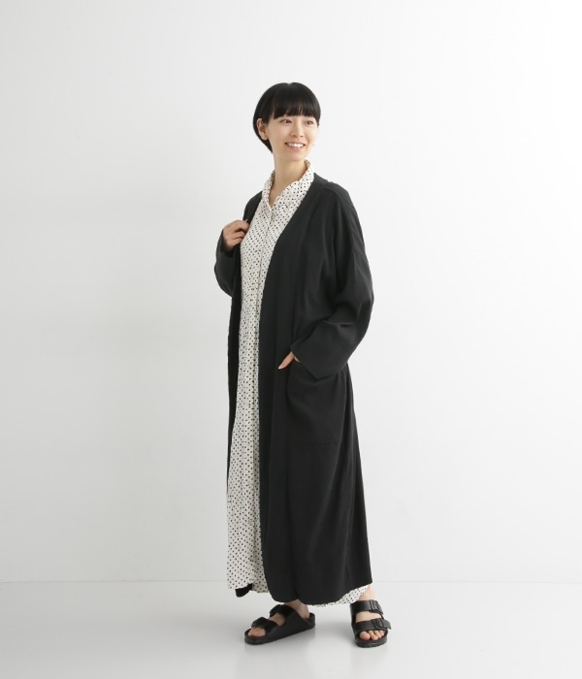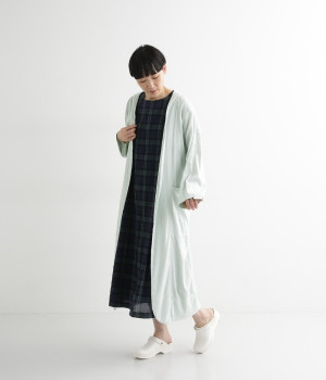『リンネル』でも活躍する人気モデルkanocoさんとのコラボレーションアイテム。ふわっとしたやわらかなコットンに、繊細で美しいカラーを合わせたガウンです。心地よく風を通す軽やかなタッチで、ロングシーズン快適に着用可能。日ざしよけや冷房対策にもおすすめです。ワンピースやワイドパンツにも合わせやすい、ゆったりとしたロング丈のシルエット。さっとまとうだけでこなれた印象を与えてくれます。