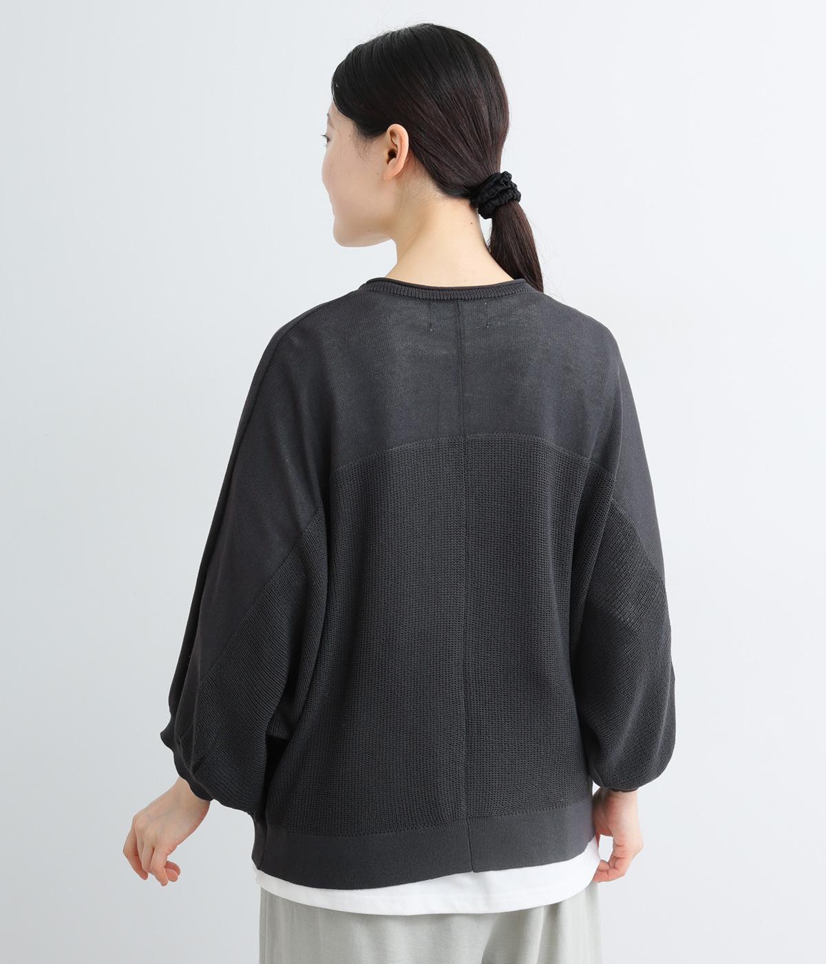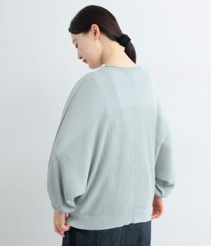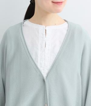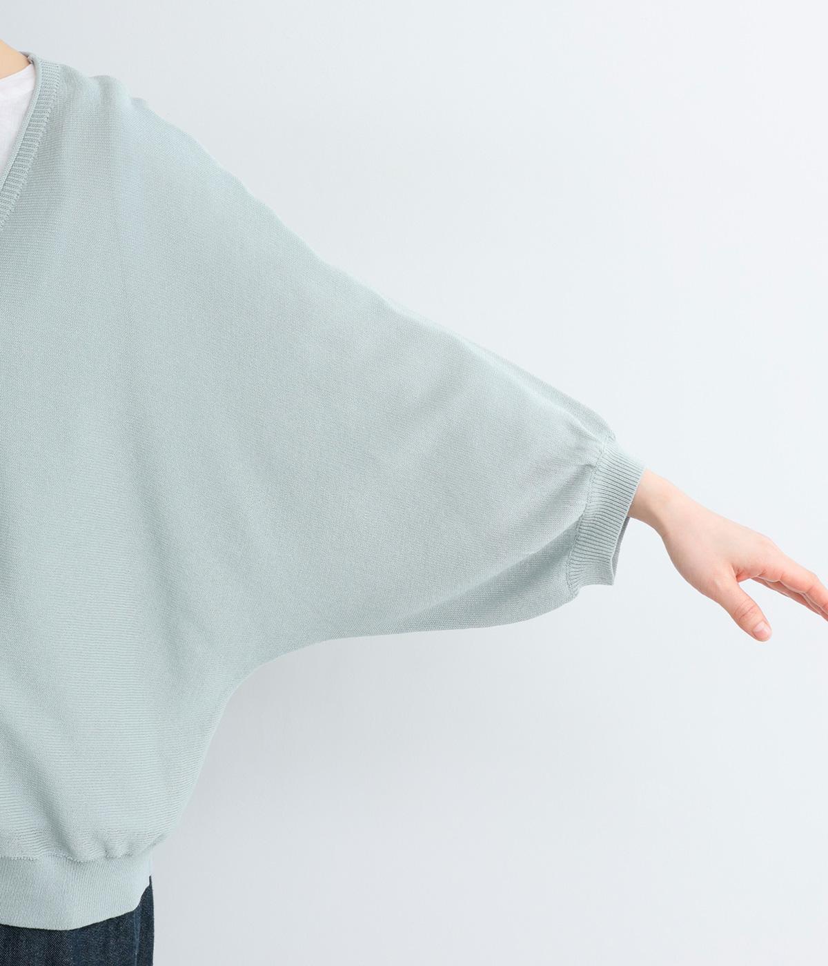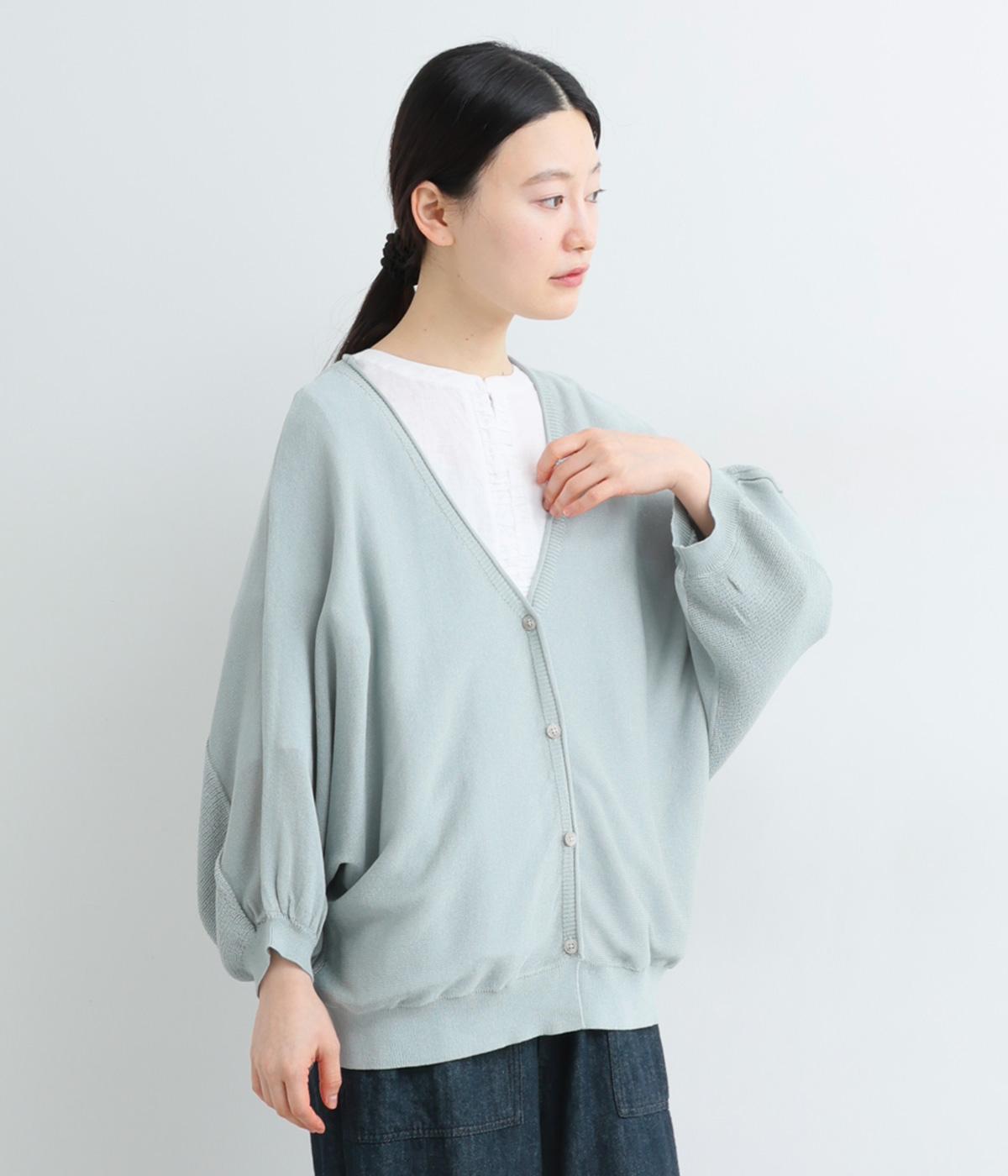 前後の編み地を変えて、バックスタイルまで印象的に仕上げたカーディガンです。抜け感のあるVネックラインが、顔まわりをすっきりと見せてくれます。ゆとりをもたせたドルマンスリーブはこなれ感のあるスタイリングに。