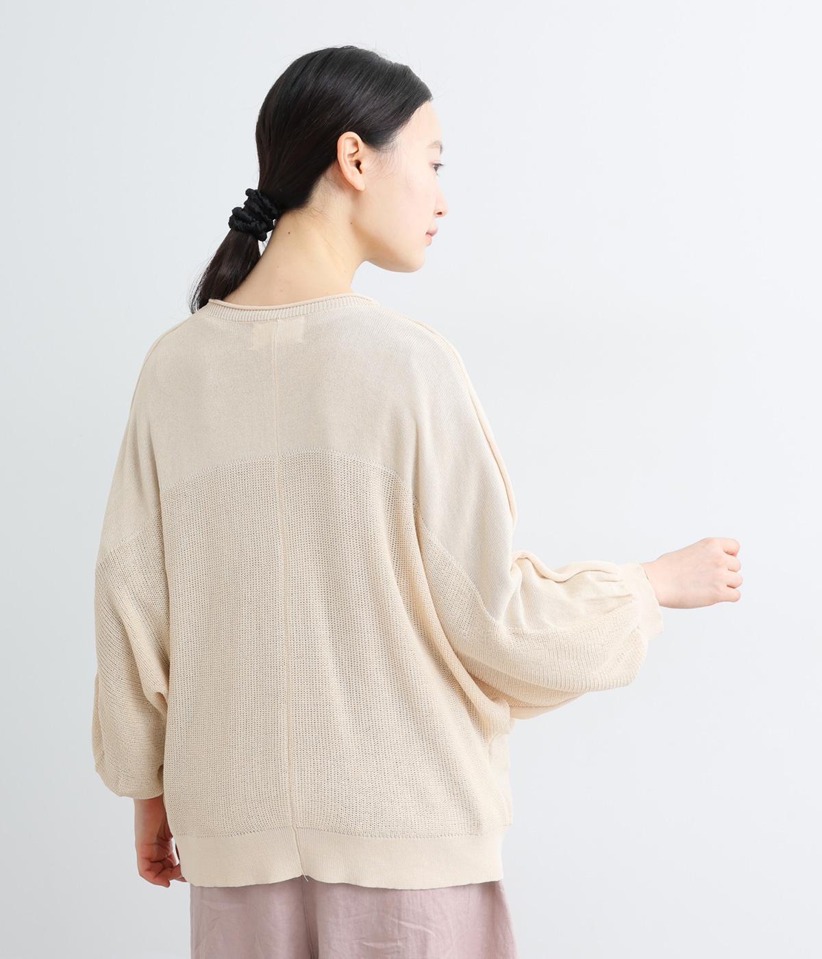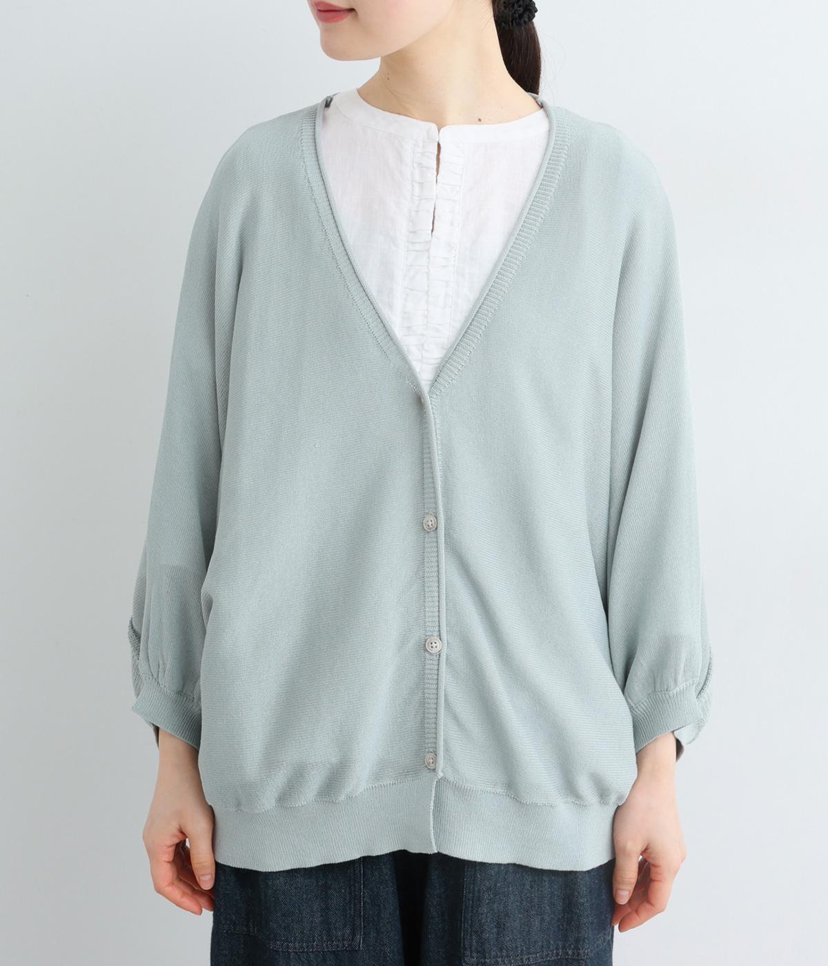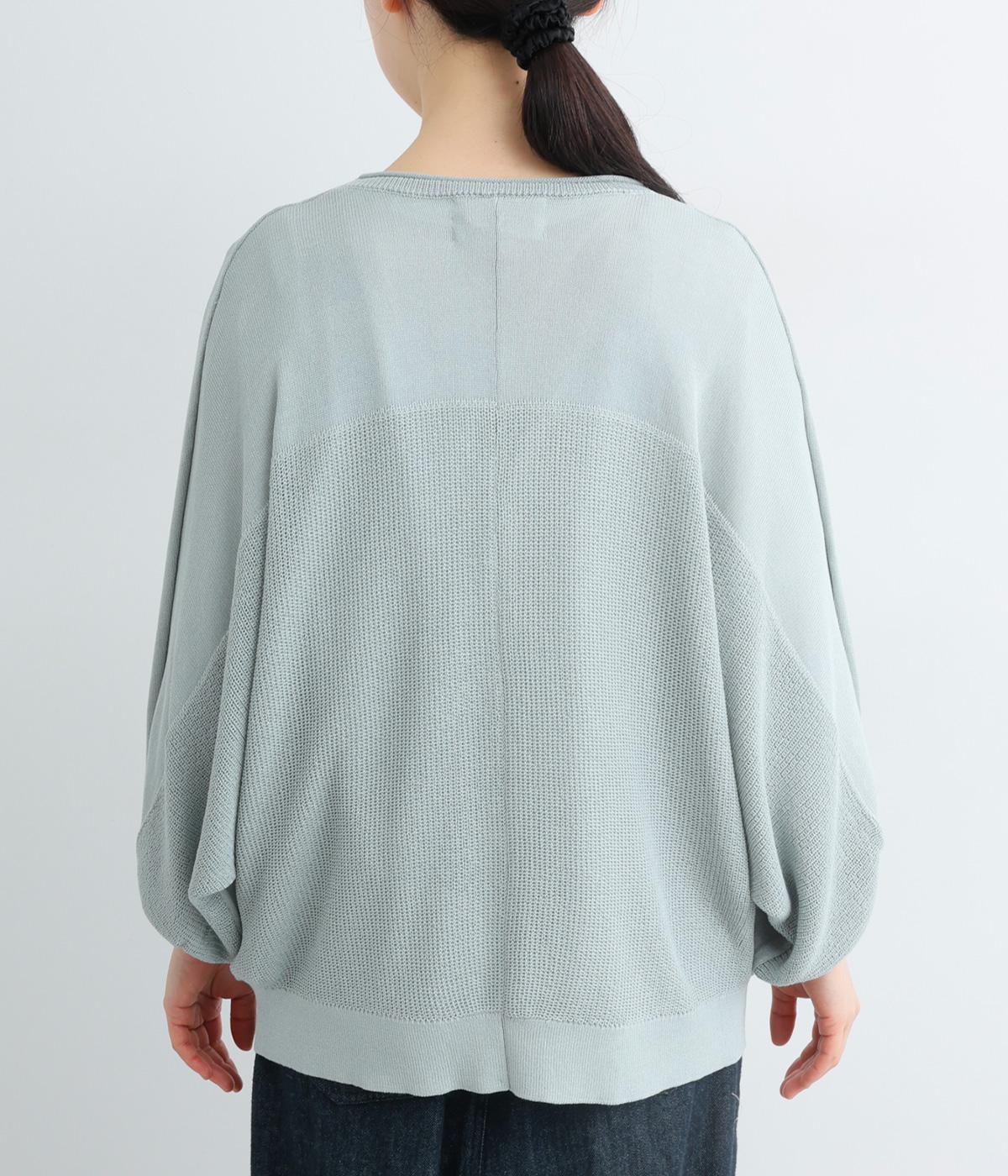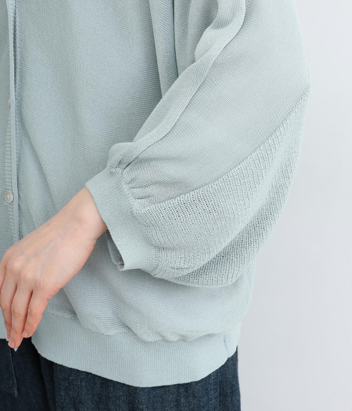 前後の編み地を変えて、バックスタイルまで印象的に仕上げたカーディガンです。抜け感のあるVネックラインが、顔まわりをすっきりと見せてくれます。ゆとりをもたせたドルマンスリーブはこなれ感のあるスタイリングに。
