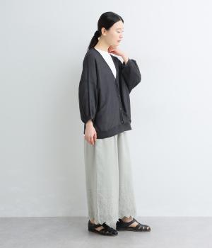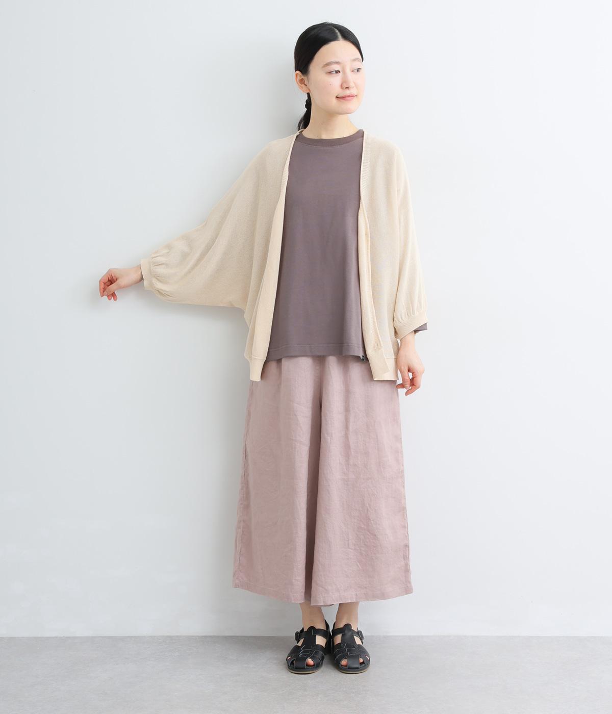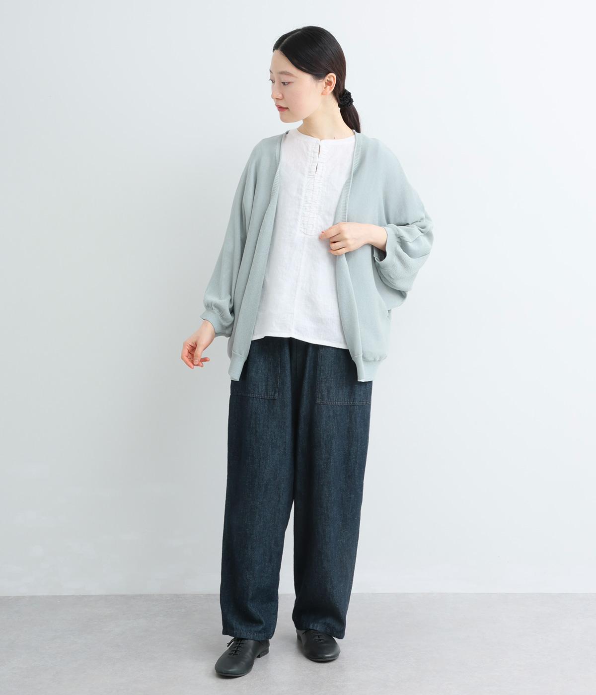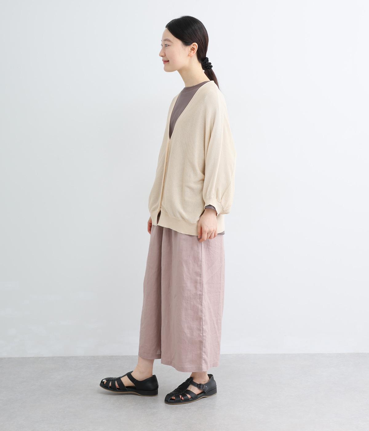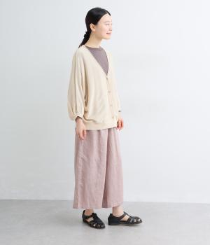 リネンのような清涼感がありながら、柔らかな肌ざわりのニット素材を使用しました。レーヨン混紡ならではの落ち感が、品のあるシルエットを表現します。シワになりにくいのも嬉しいポイントです。