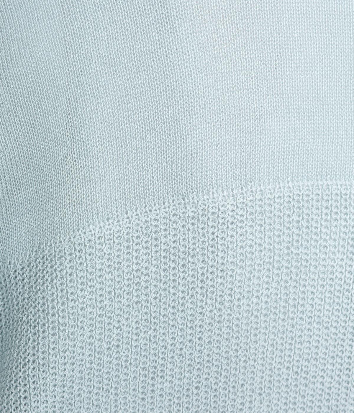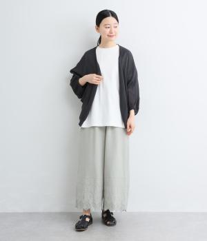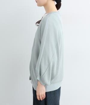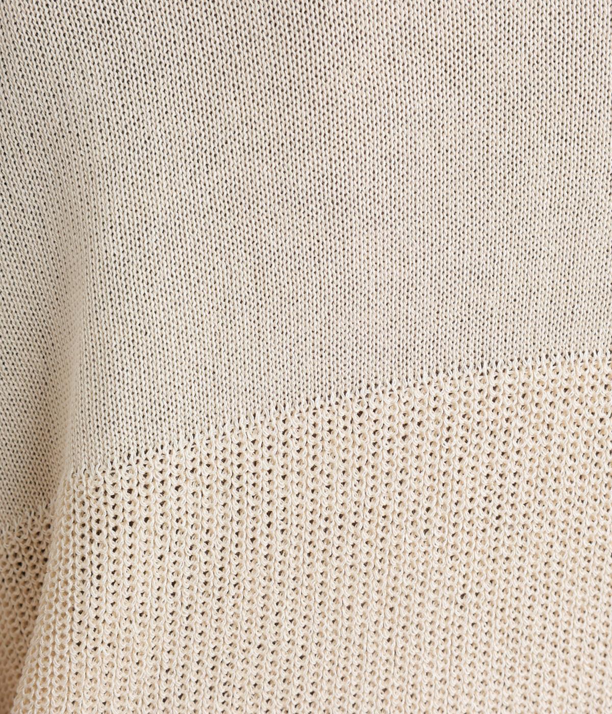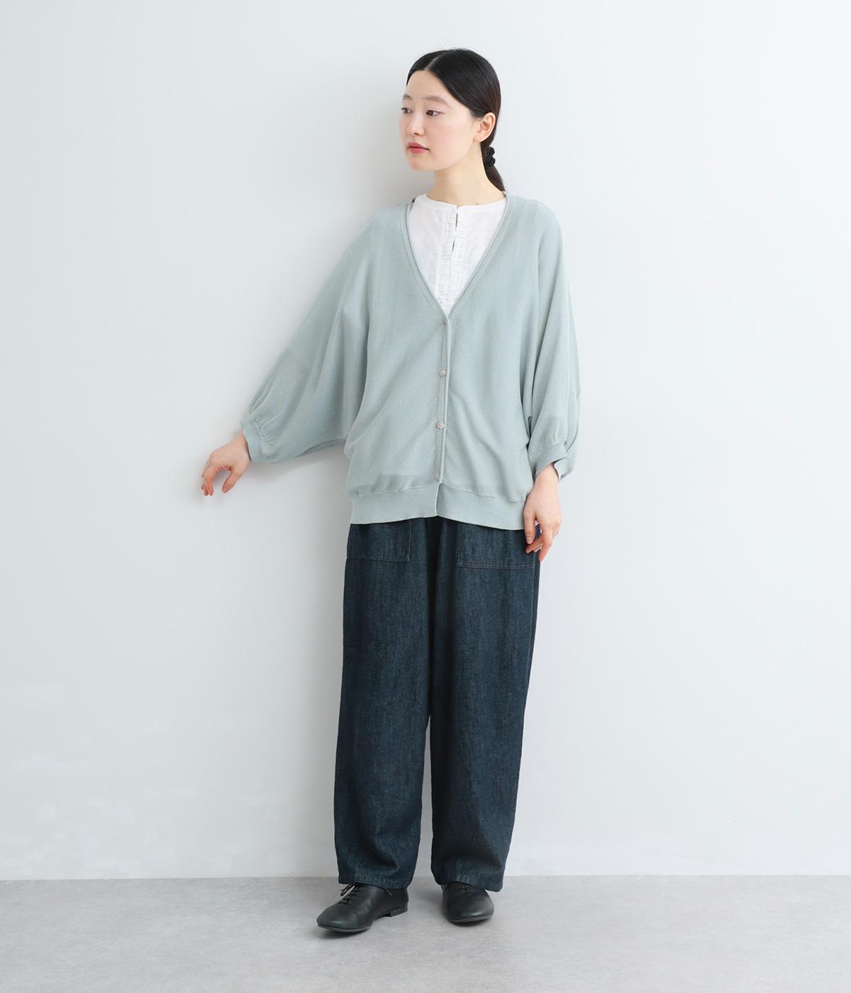 リネンのような清涼感がありながら、柔らかな肌ざわりのニット素材を使用しました。レーヨン混紡ならではの落ち感が、品のあるシルエットを表現します。シワになりにくいのも嬉しいポイントです。