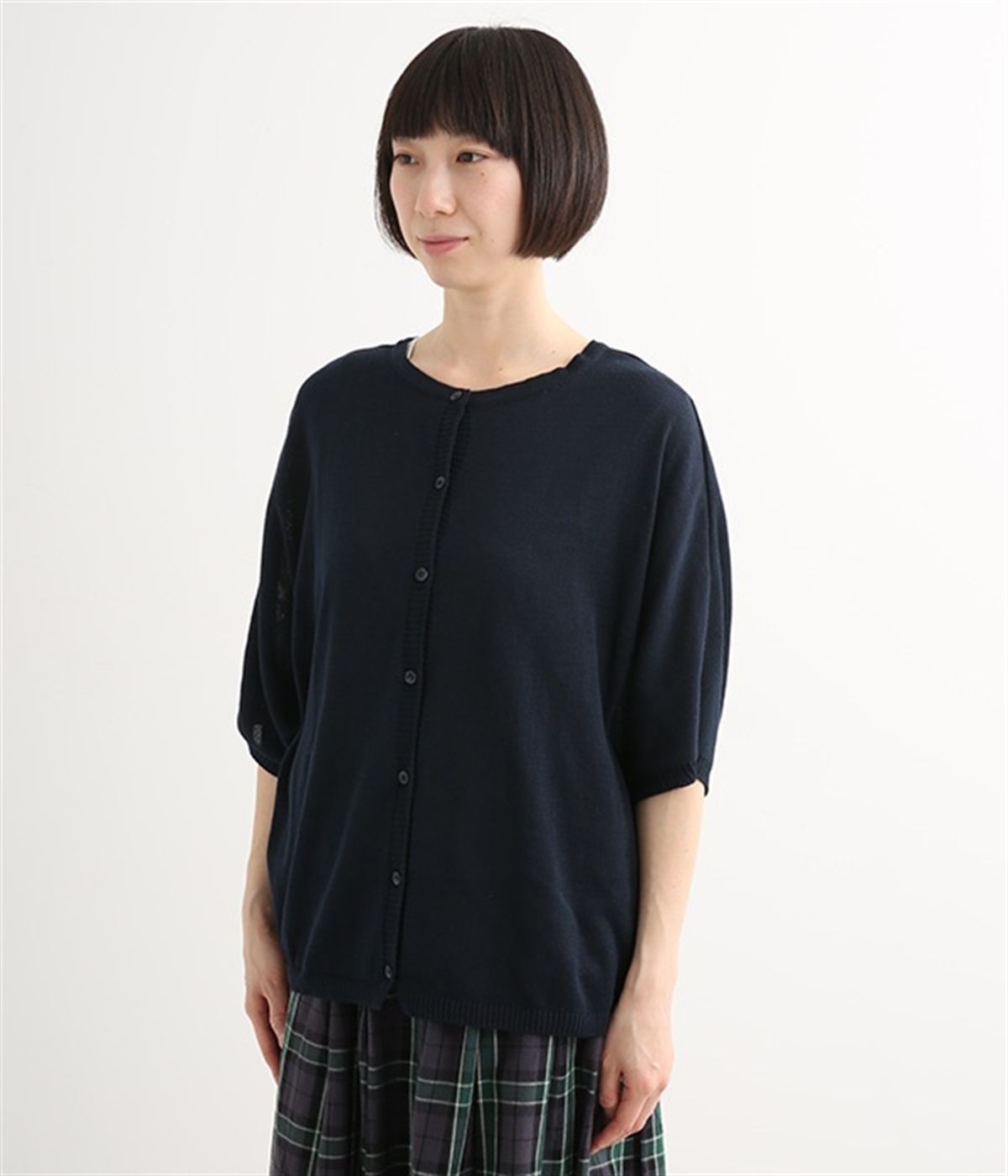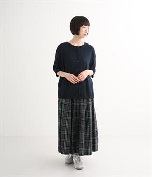 しなやかな肌触りを持つ薄手のレーヨン混紡ニットで仕立てたカーディガンです。季節の変わり目に活躍すること間違いなしで、夏の日除け・冷房対策にも重宝します。少しドルマンになっている、ゆったりシルエットがポイントに。前後着用可能な2WAY仕様なので、その日の気分や合わせるボトムスによってカーディガン・プルオーバーと雰囲気を変えて着まわせるのも特徴です。