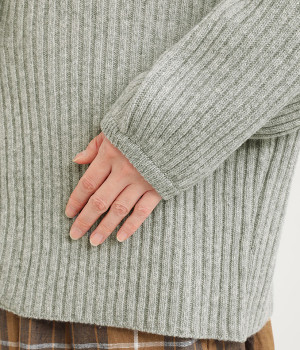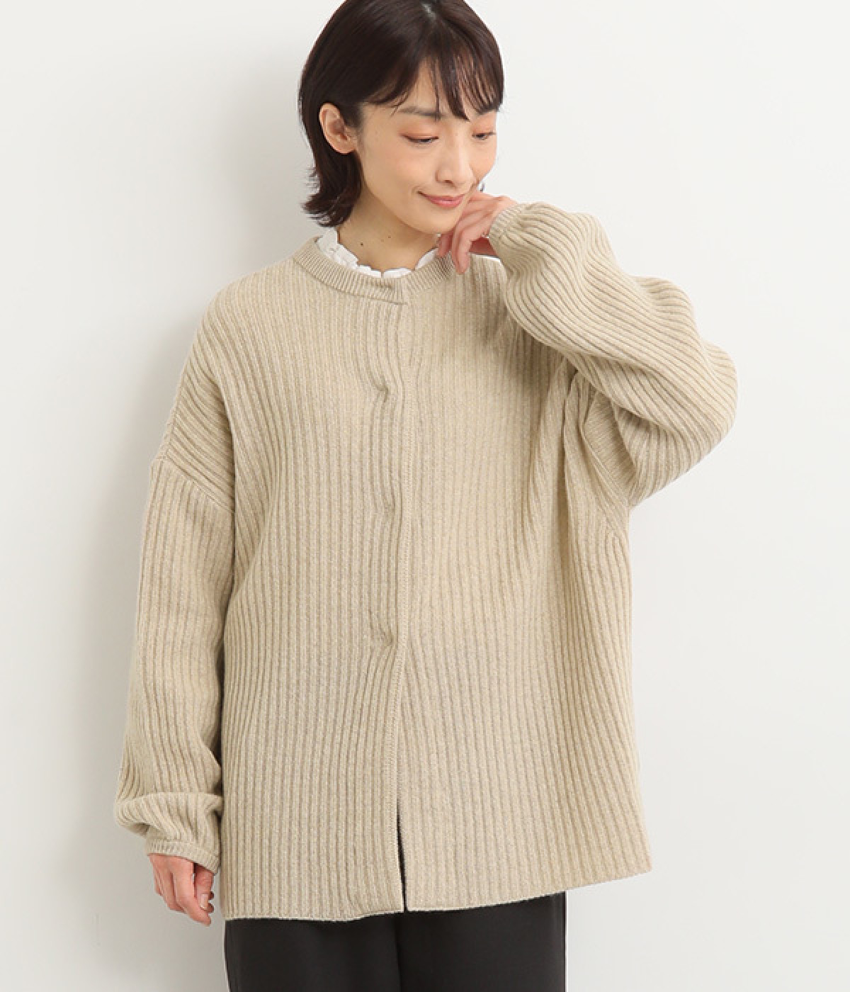 リブニット特有の伸縮性があり、ストレスフリーな着心地
