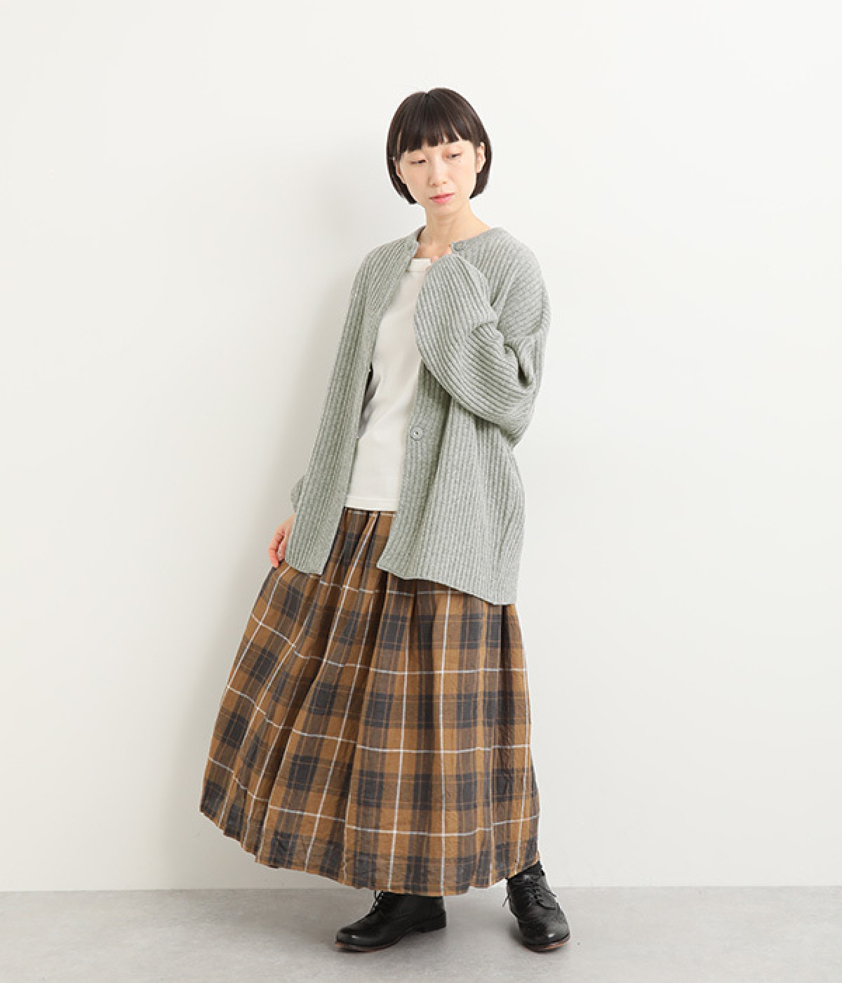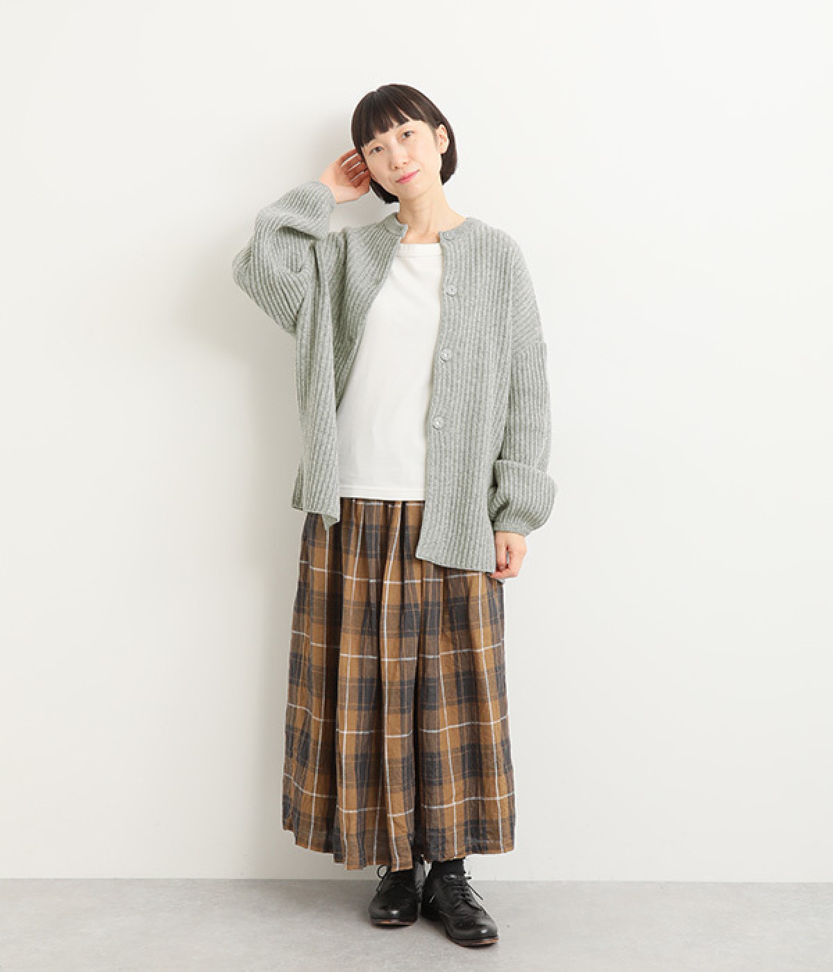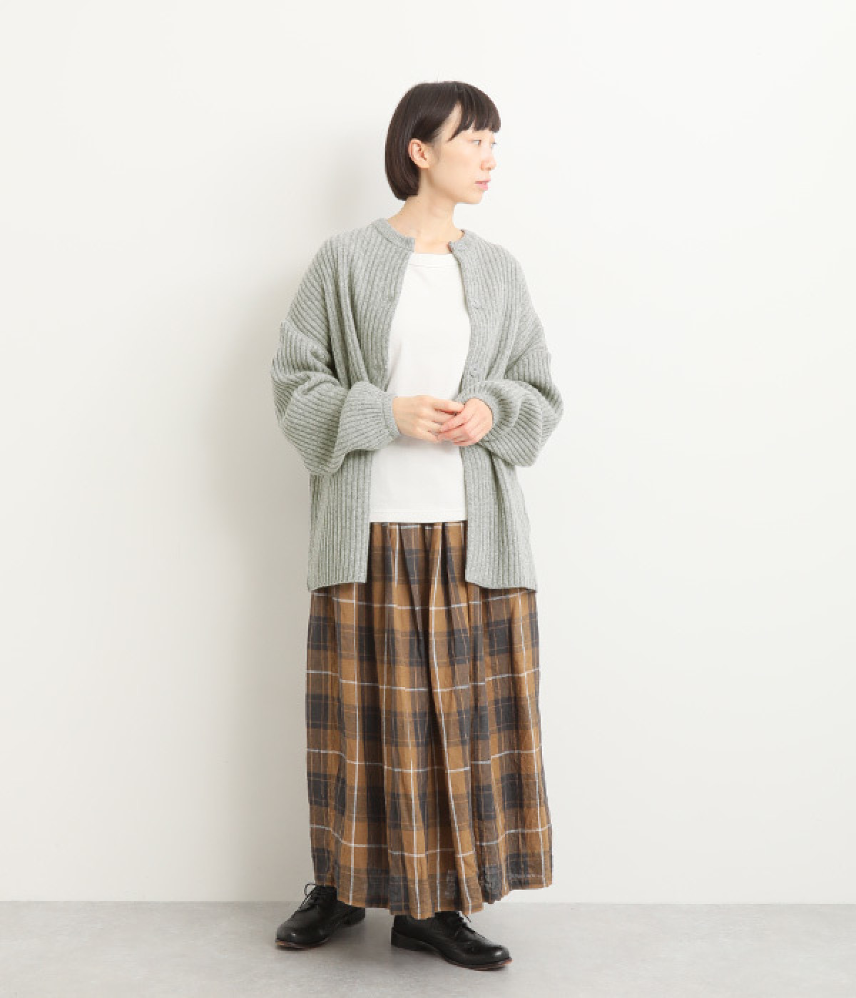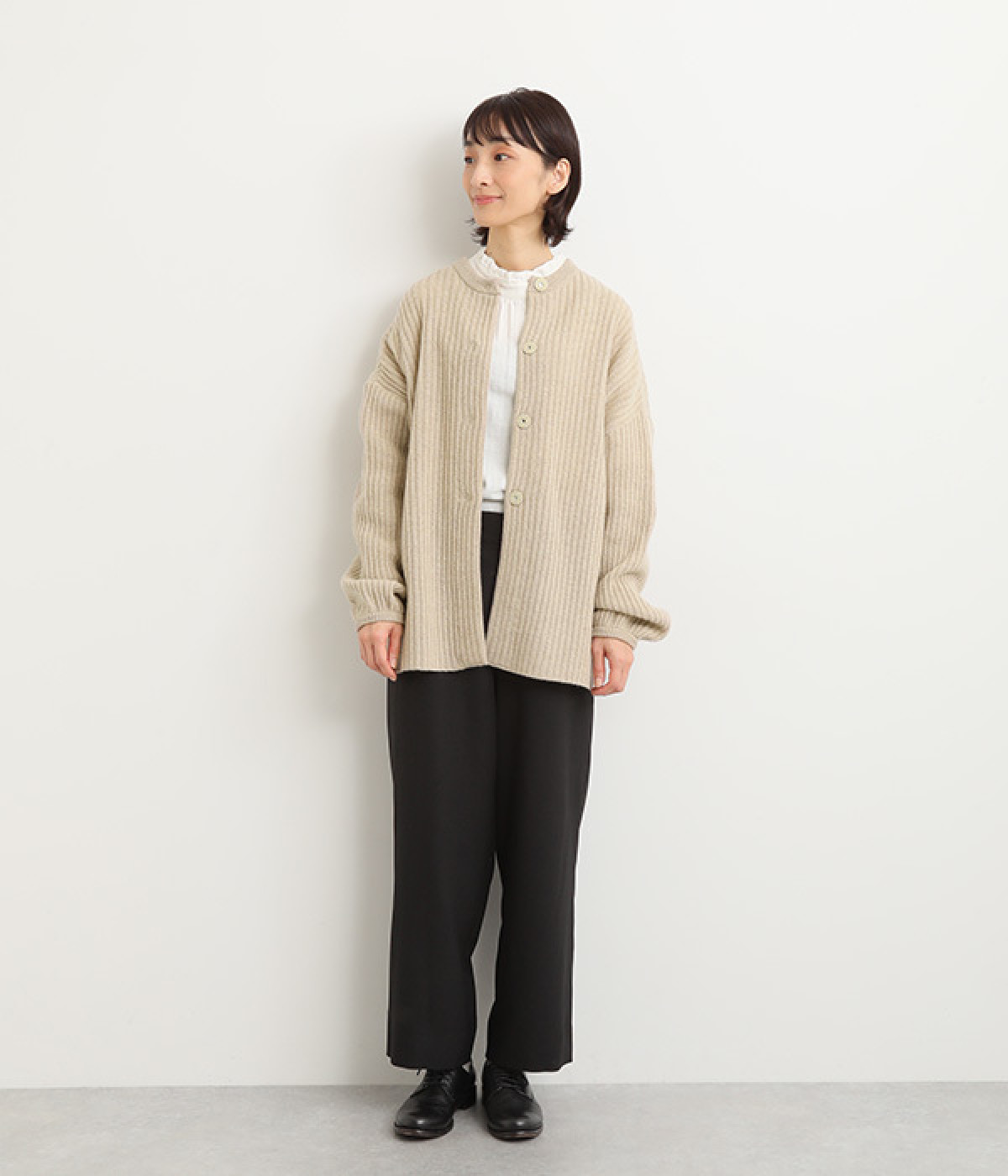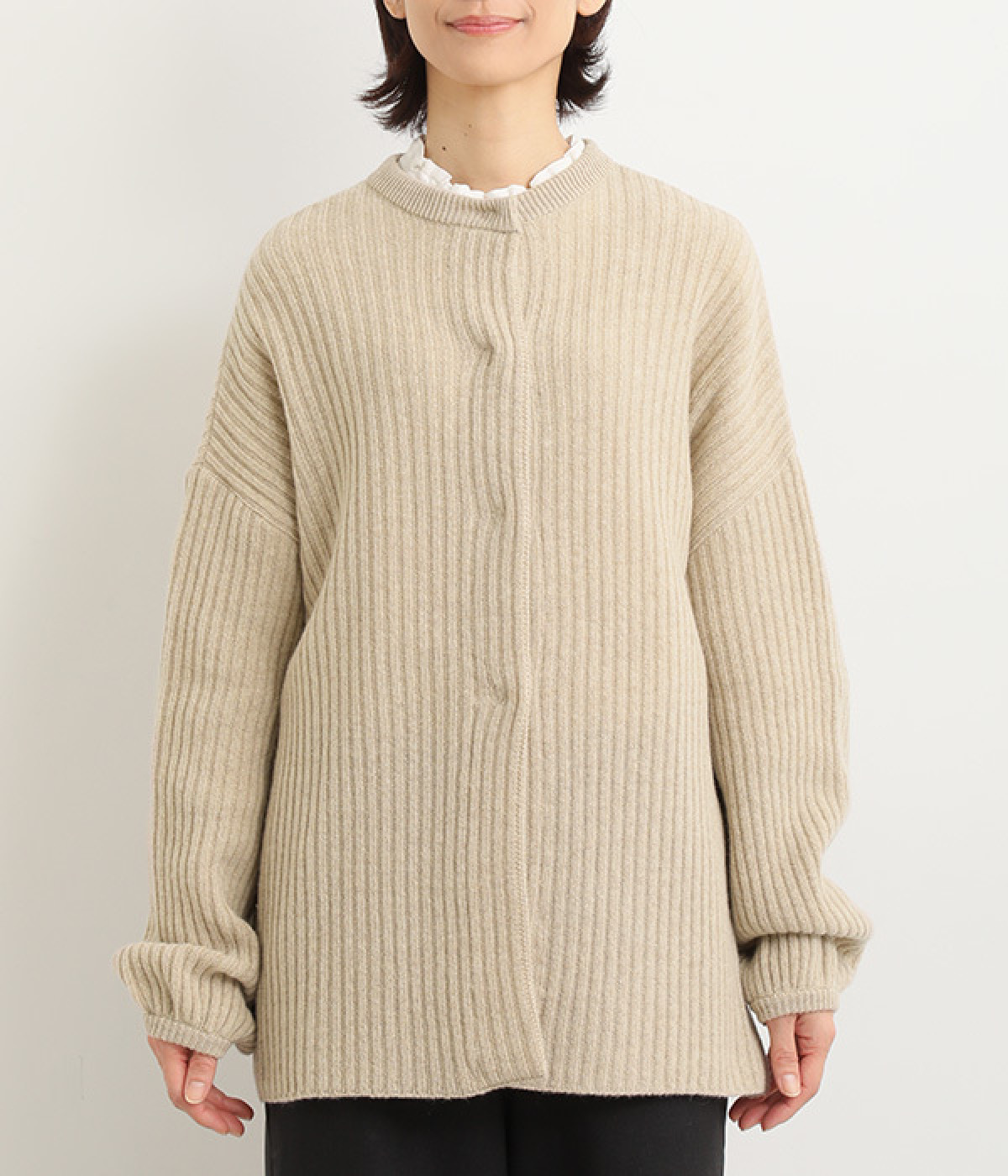 縦に長く見せるリブならではの表情が魅力