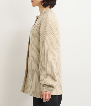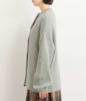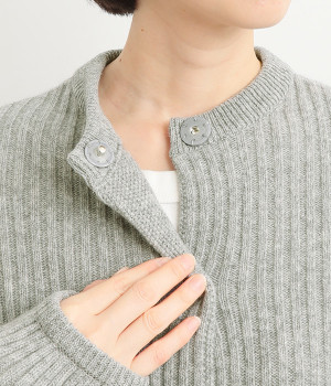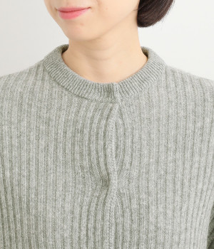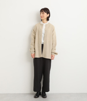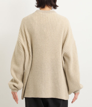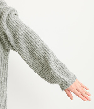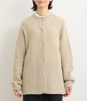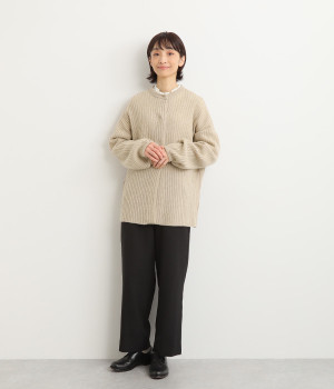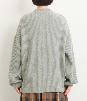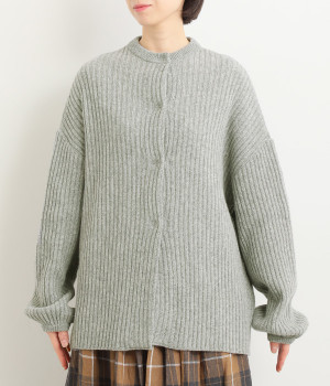 肩から袖にかけての編地の向きを変え、単色ながらメリハリを