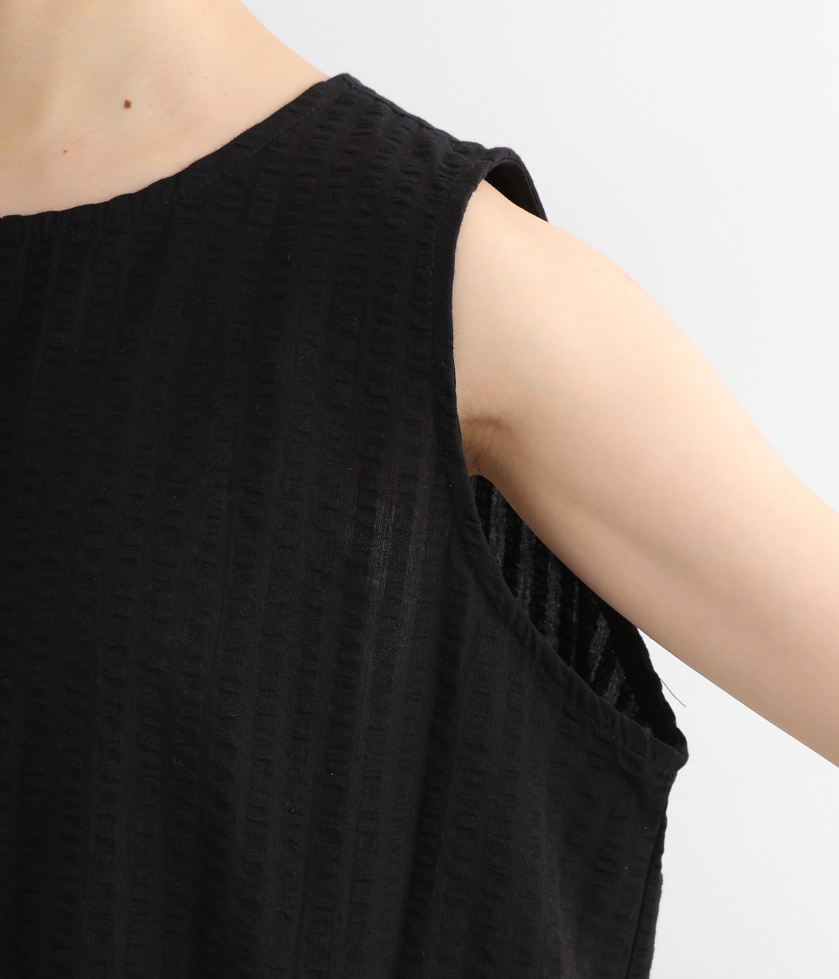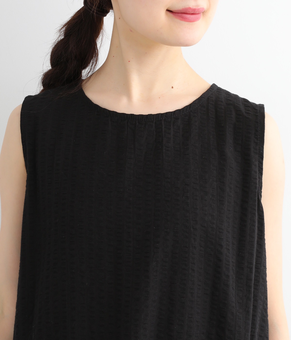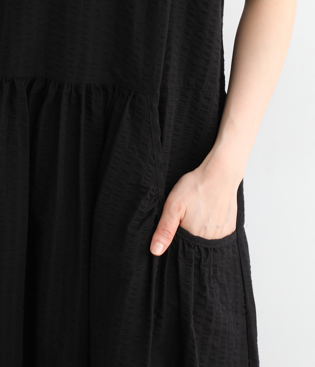 ワンピースはほんのり透け感のあるサッカー地で、見た目にも涼やか。