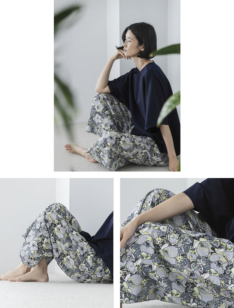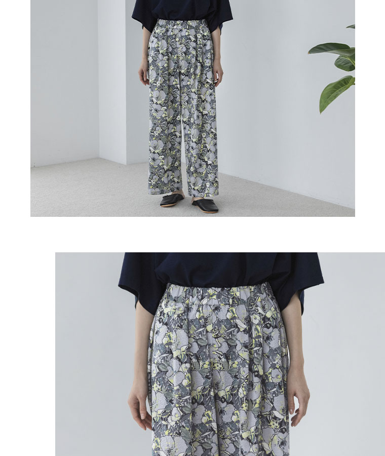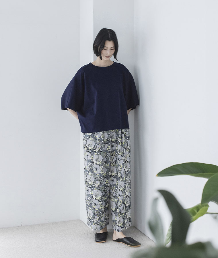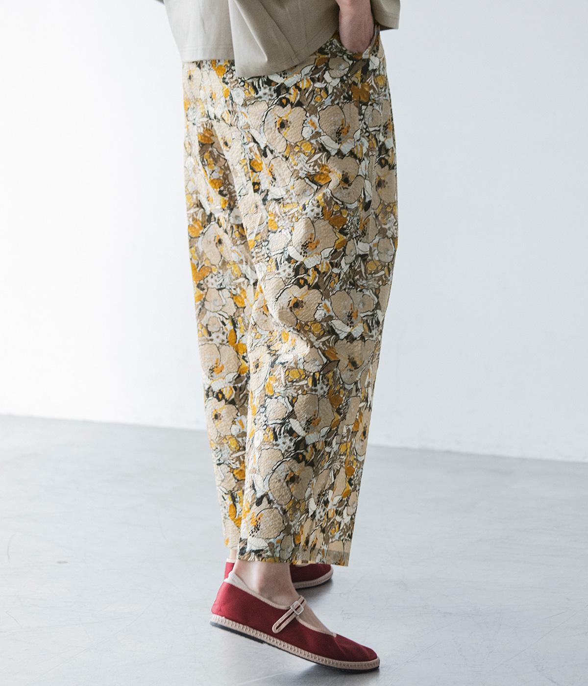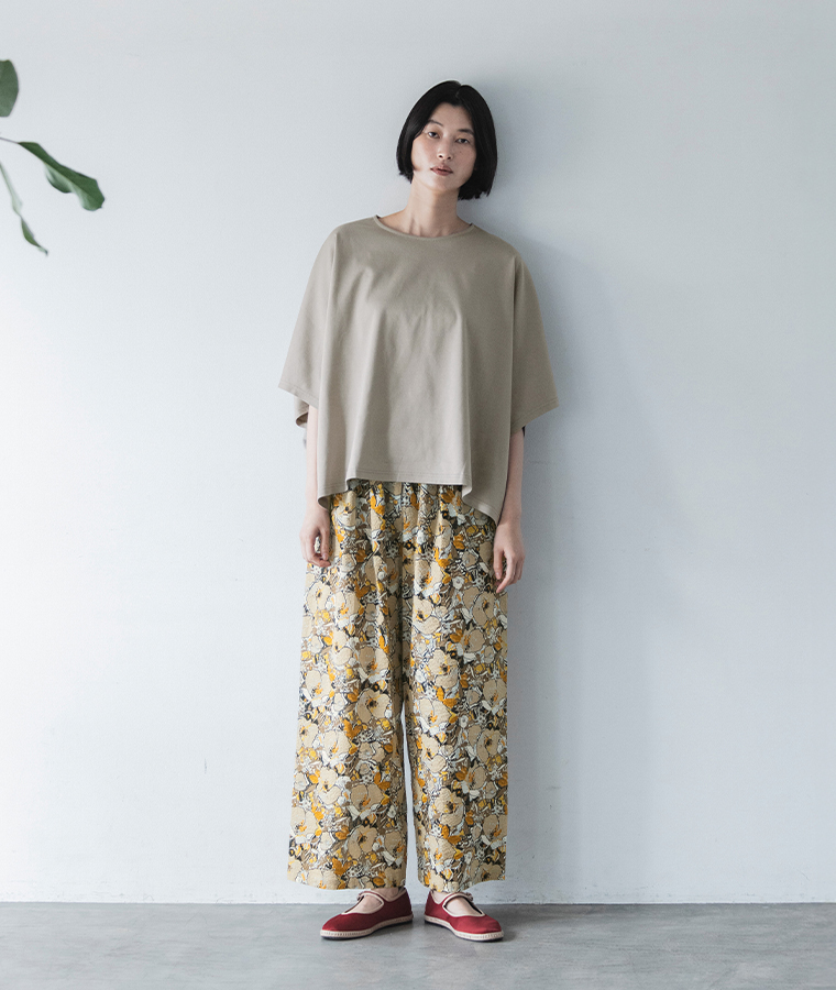 見た目の華やかさに反して扱いやすく、デイリーにも頼れる花柄ワイドパンツ。