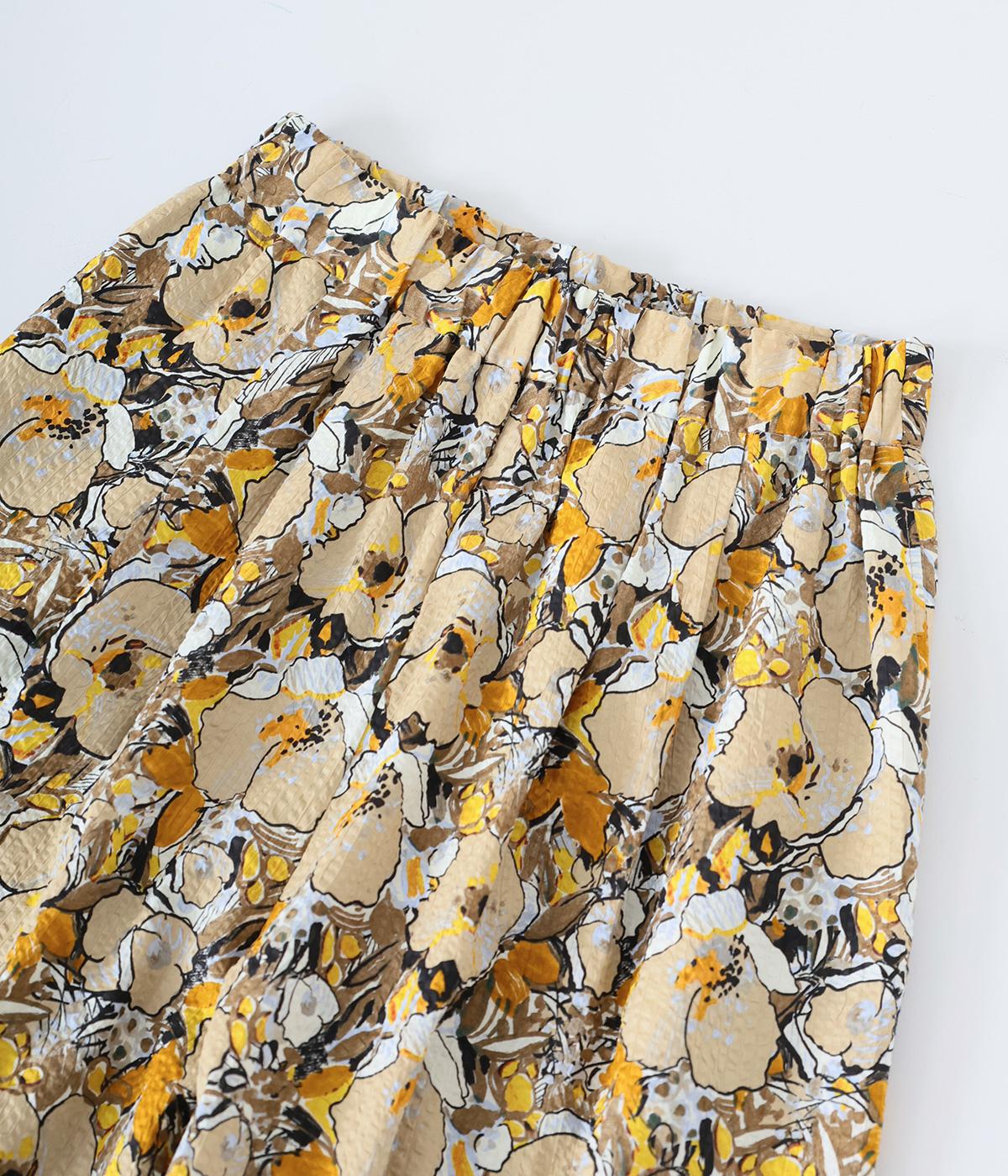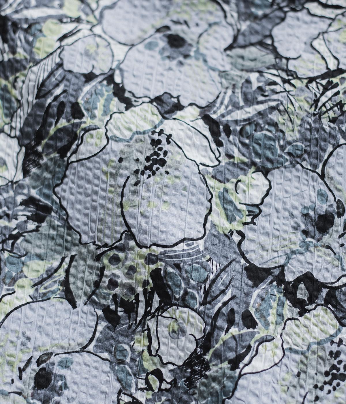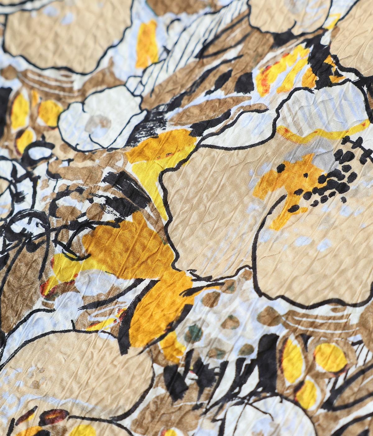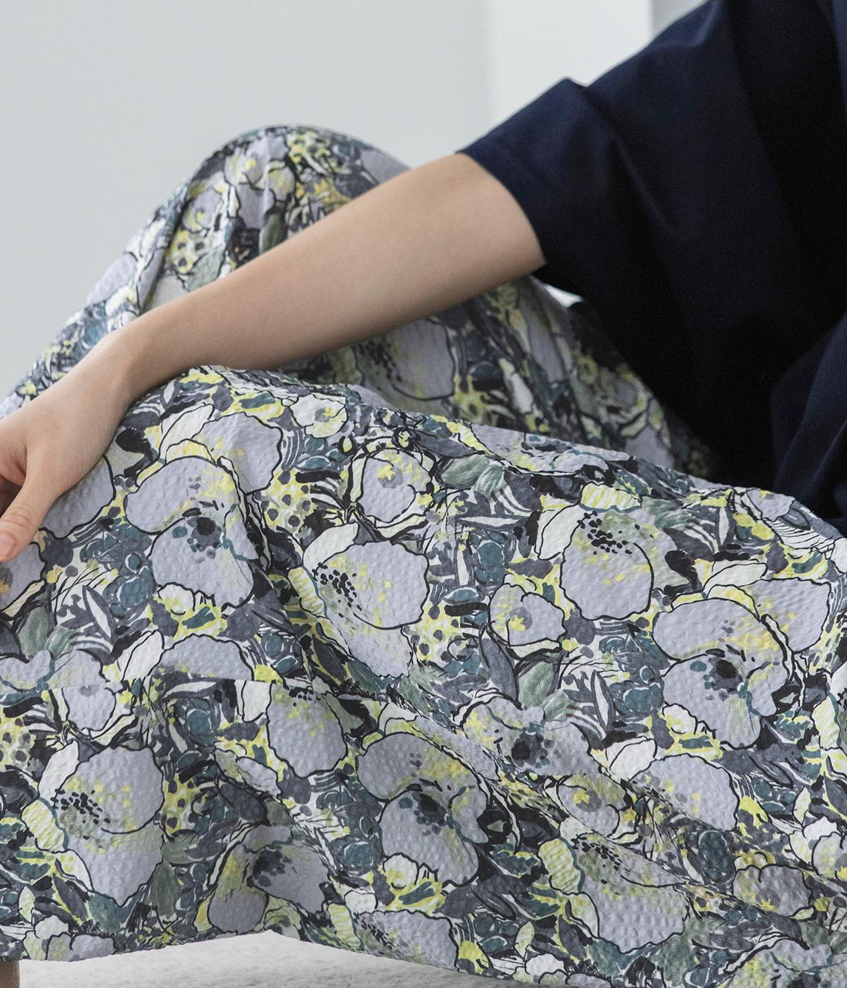 大胆なフラワープリントも、落ち着いたトーンで大人っぽく。