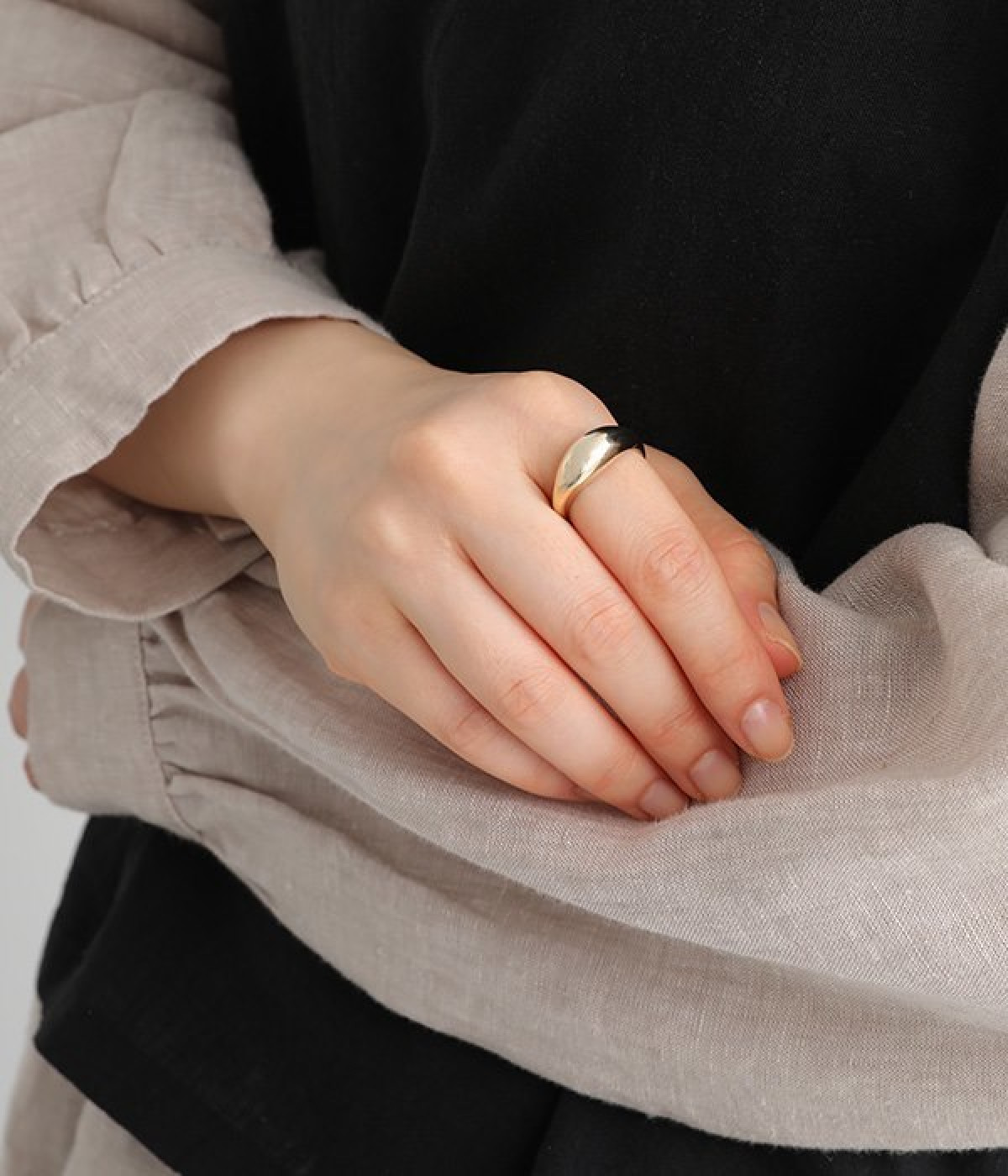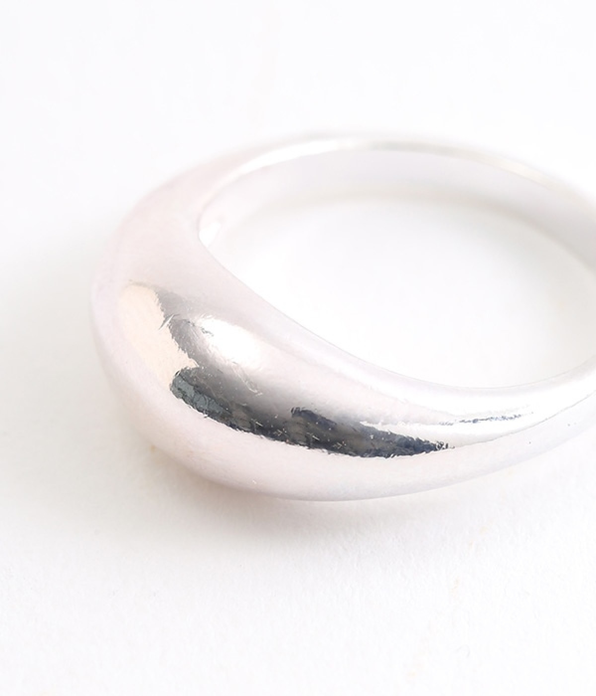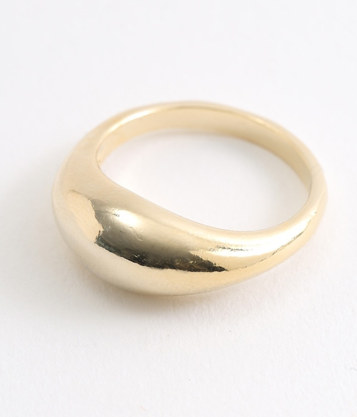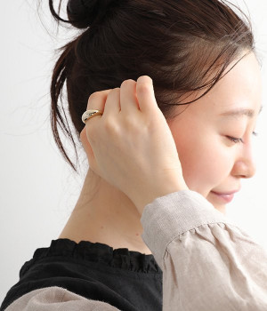 ぷっくりと立体感があり、ひとつ付けるだけで手元がおしゃれに見えるリングです。丸みを帯びたフォルムがやさしい印象で、甘さのあるブラウスやワンピースなどと相性が良さそう。使い続けるほどに味わいが増していくツヤの変化も楽しむことができます。他のリングやアクセサリーともなじみの良いメタル製で、さまざまな装いに活躍してくれるデイリーアイテムです。