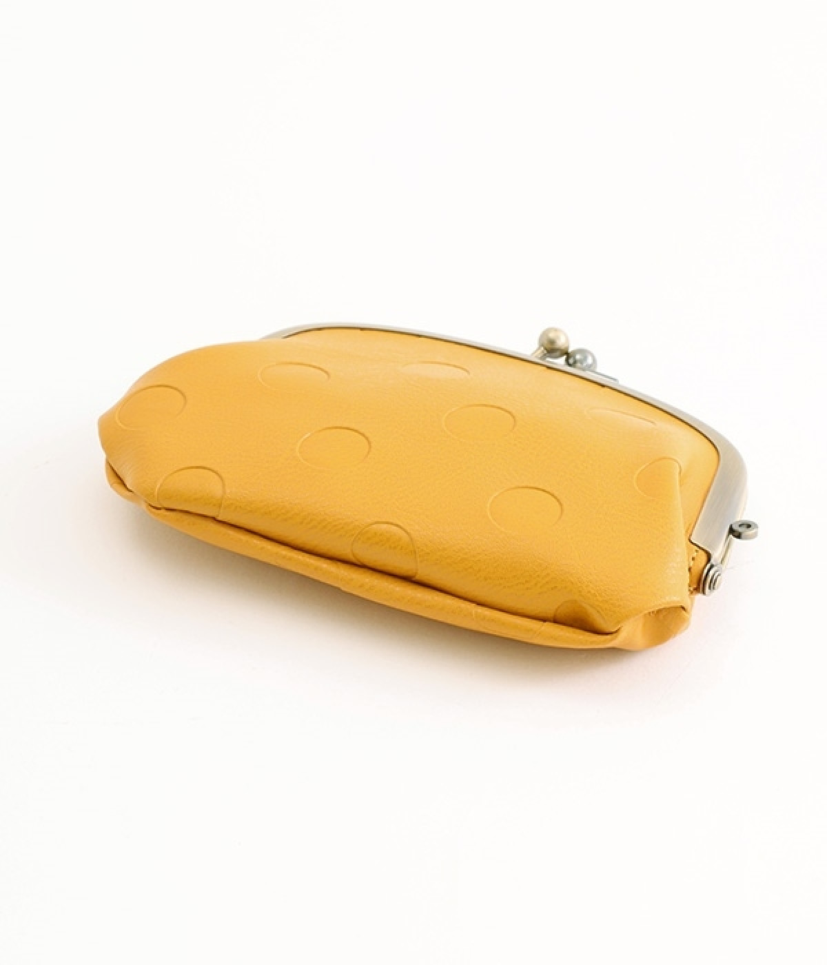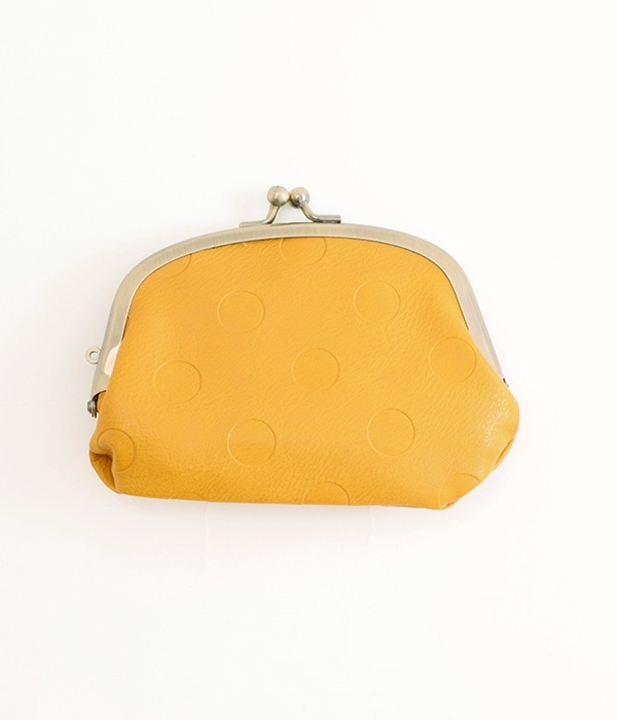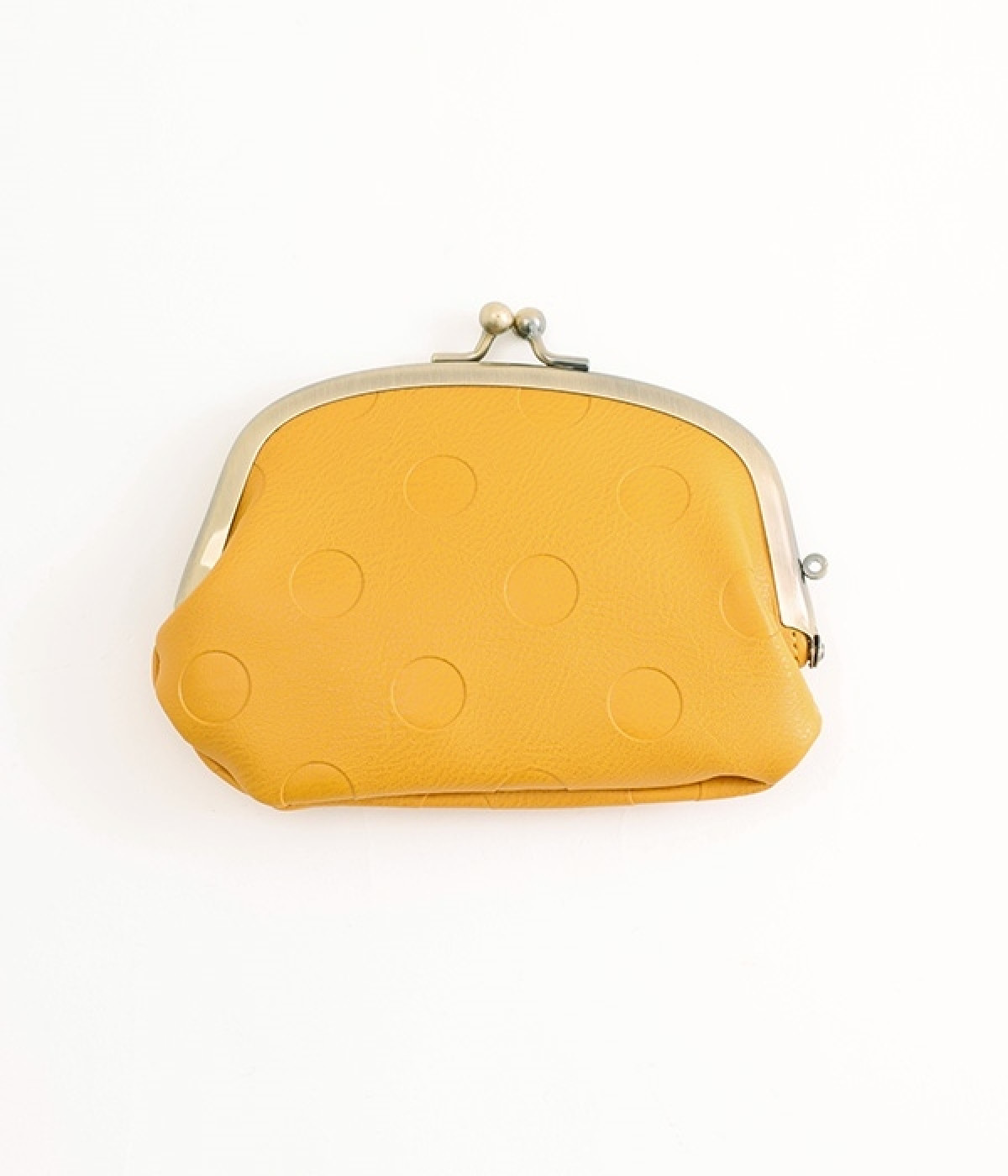 シボのあるカラー合皮にドット柄を型押しした大人かわいい仕上がりのがま口ミニ財布です。明るさと遊び心をプラスしたデザインで、持っているだけで気分の上がるハッピーアイテム。内側にもさらに小さながま口ポケットが付いているので小銭を分けて収納可能。小ぶりながらもカードもお札も入る実力派で、アクセサリーケースにしても◎