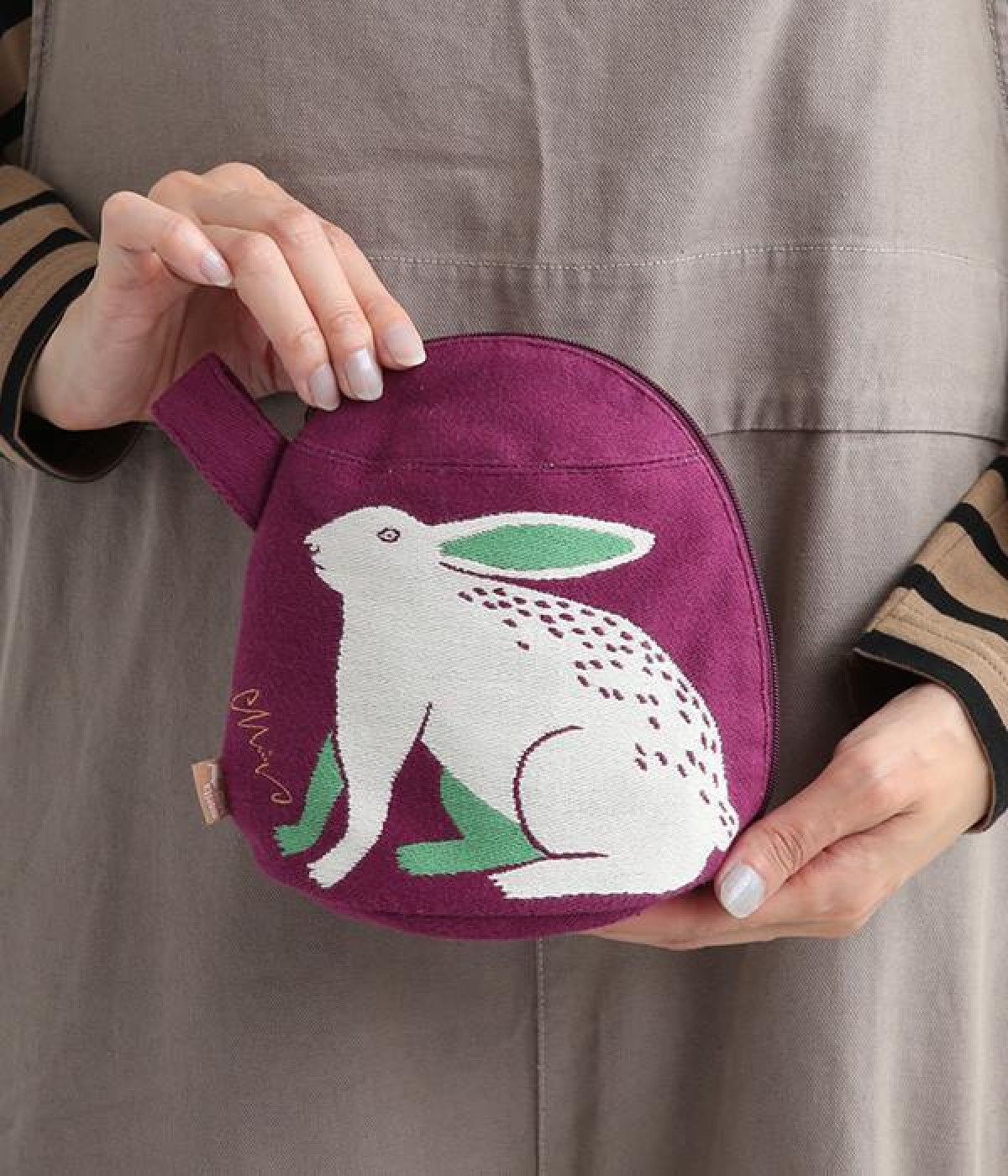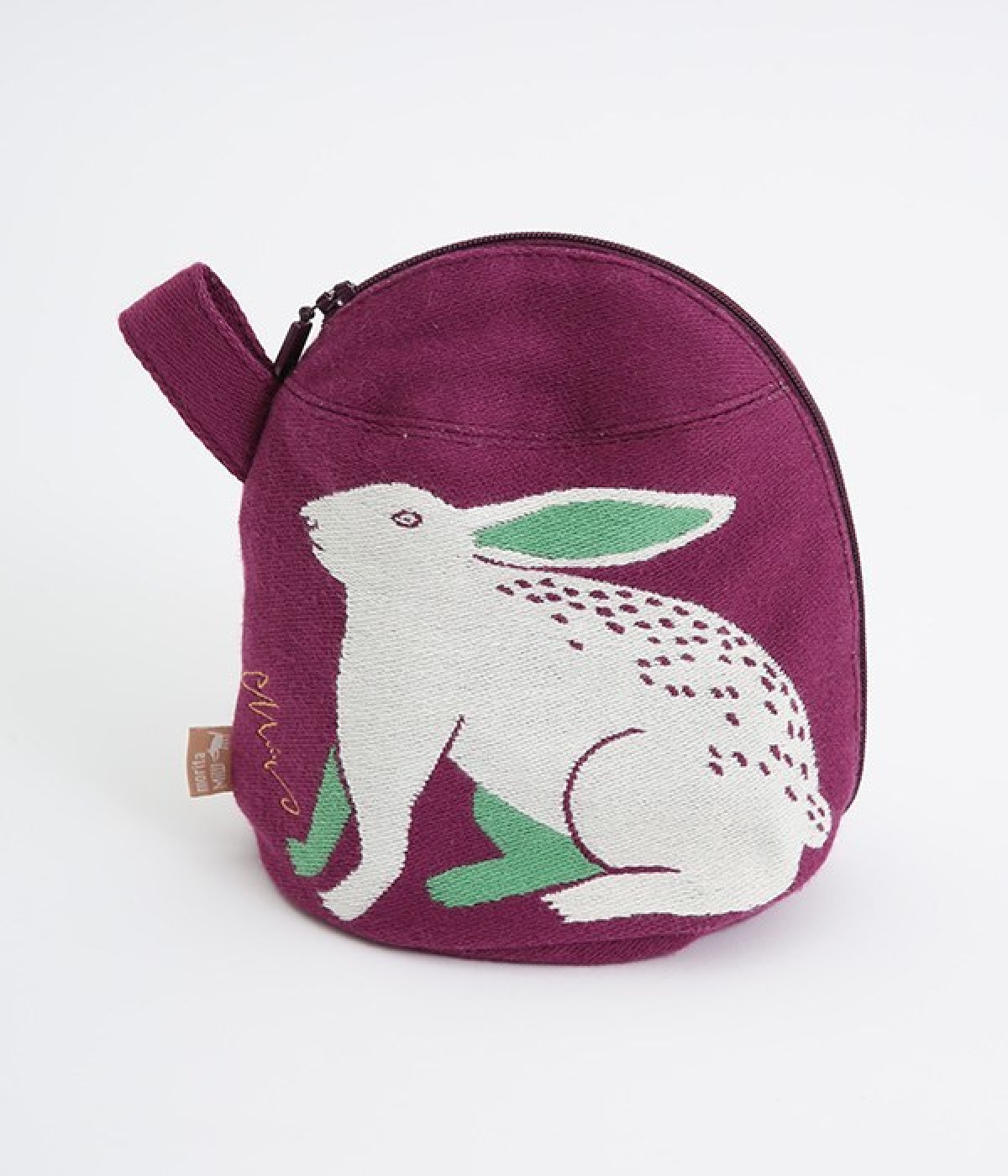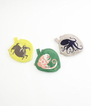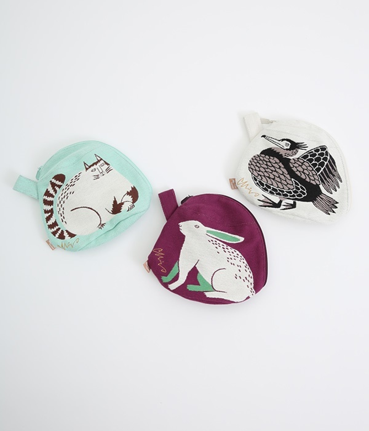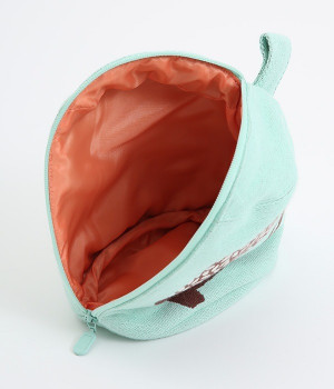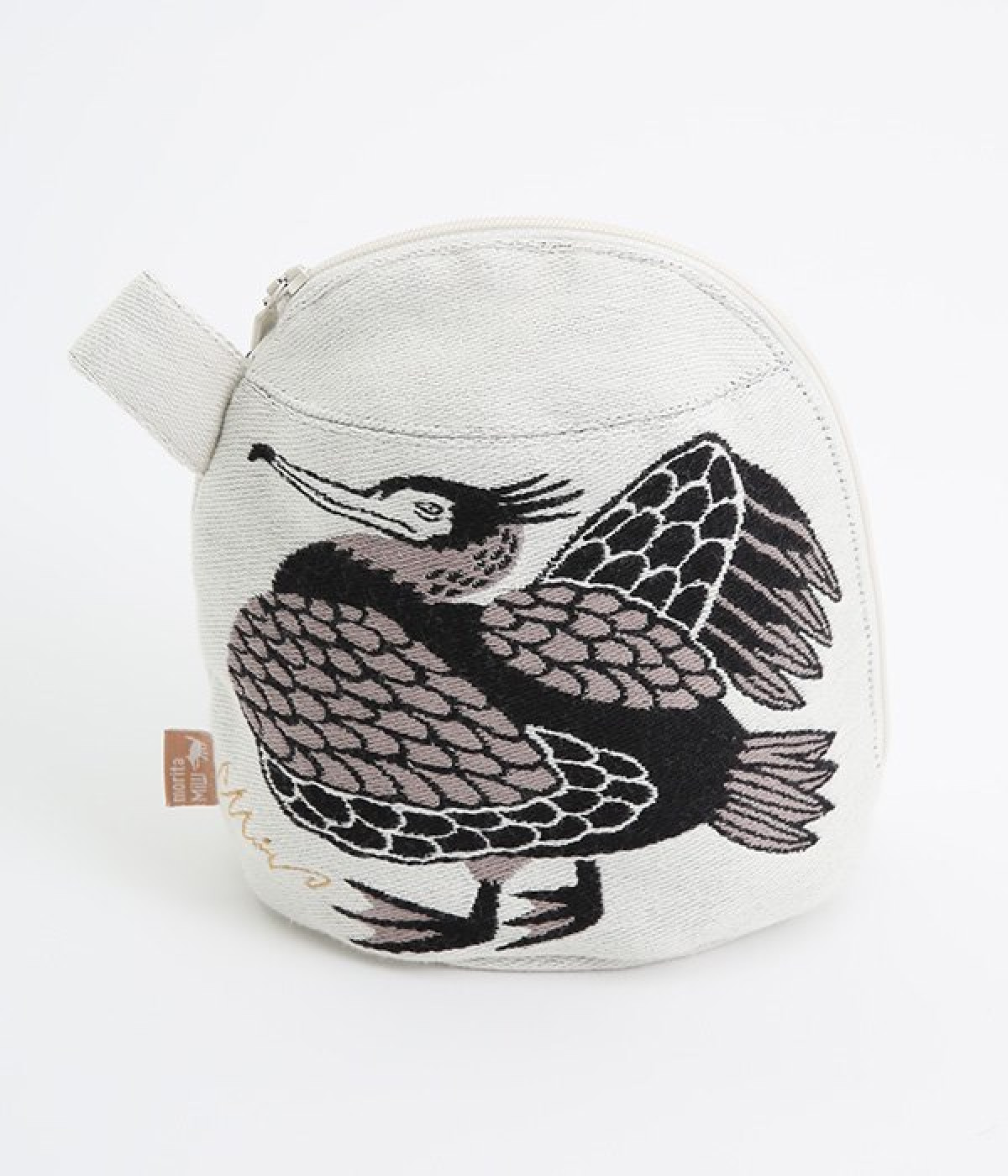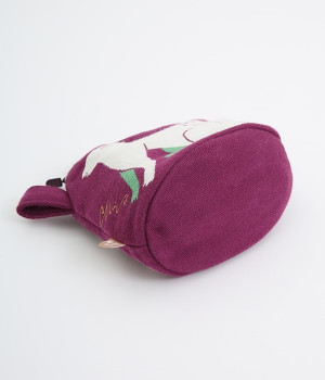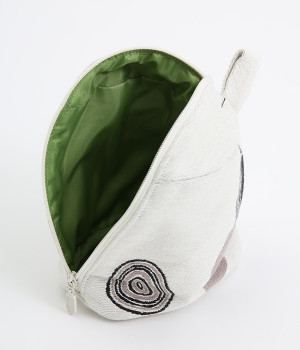 挿絵画家moritaMiWさんの不思議な絵の世界を映しだす、小さくてコロンとした愛おしい形のマチつきポーチです。タオルメーカー楠橋紋織のしっかり織り上げた厚手の生地からのぞく、裏地のビビッドカラーがさりげないアクセント。さらっとしたコットン素材の肌触りや、開閉口が大きく開いて物を出し入れしやすいのも魅力です。
