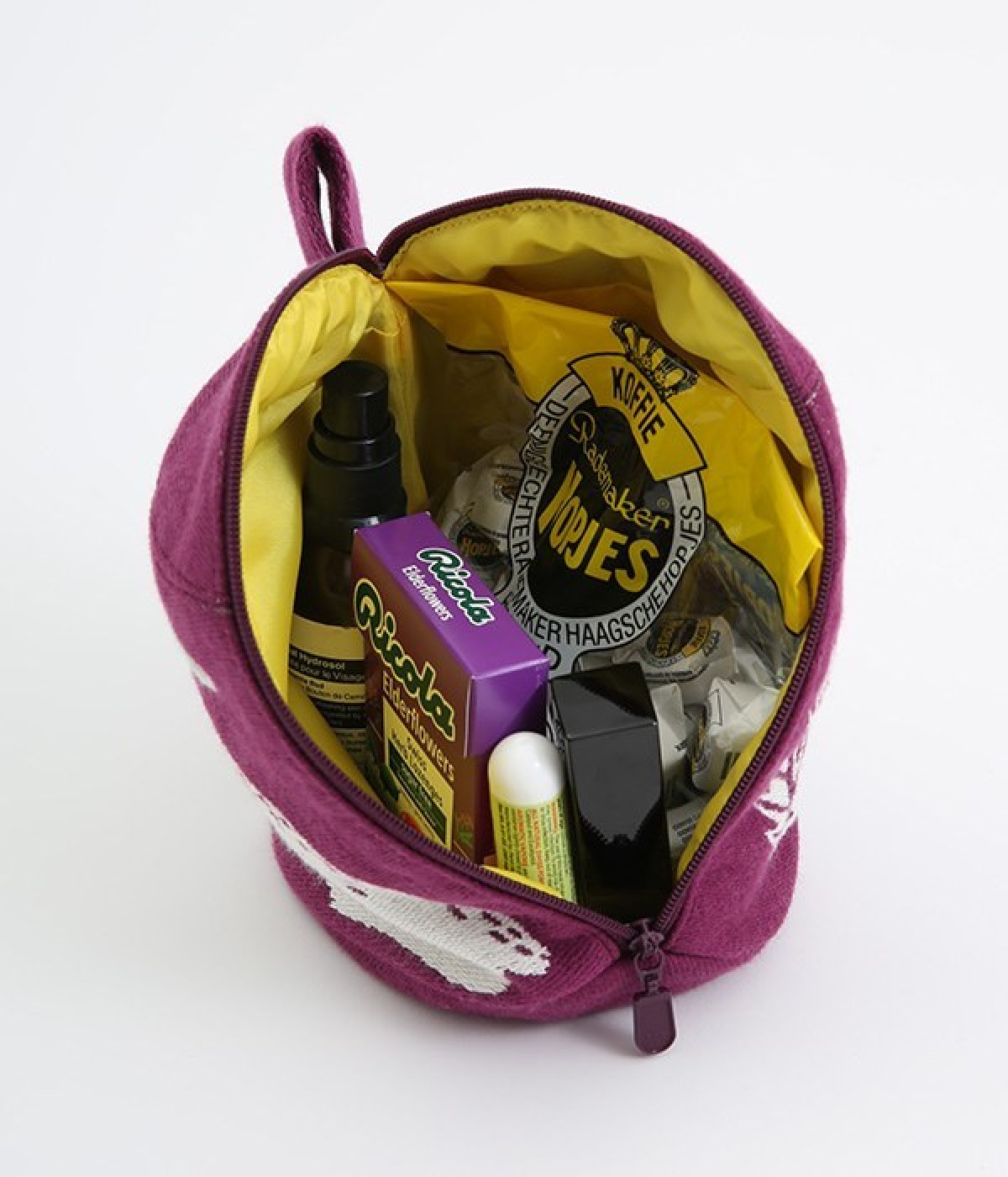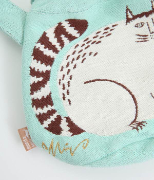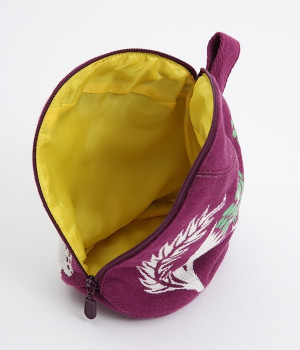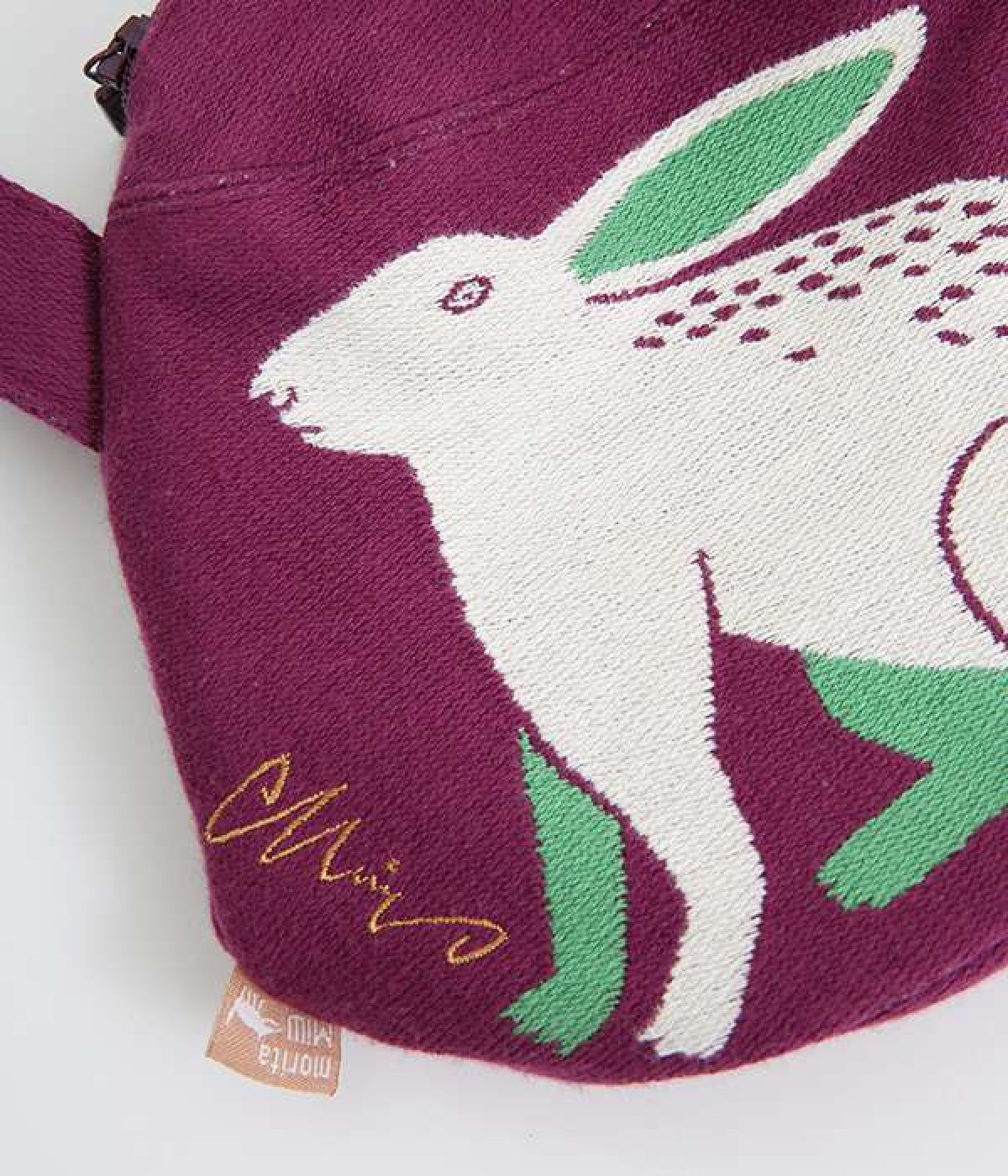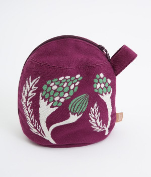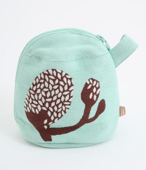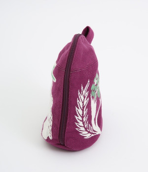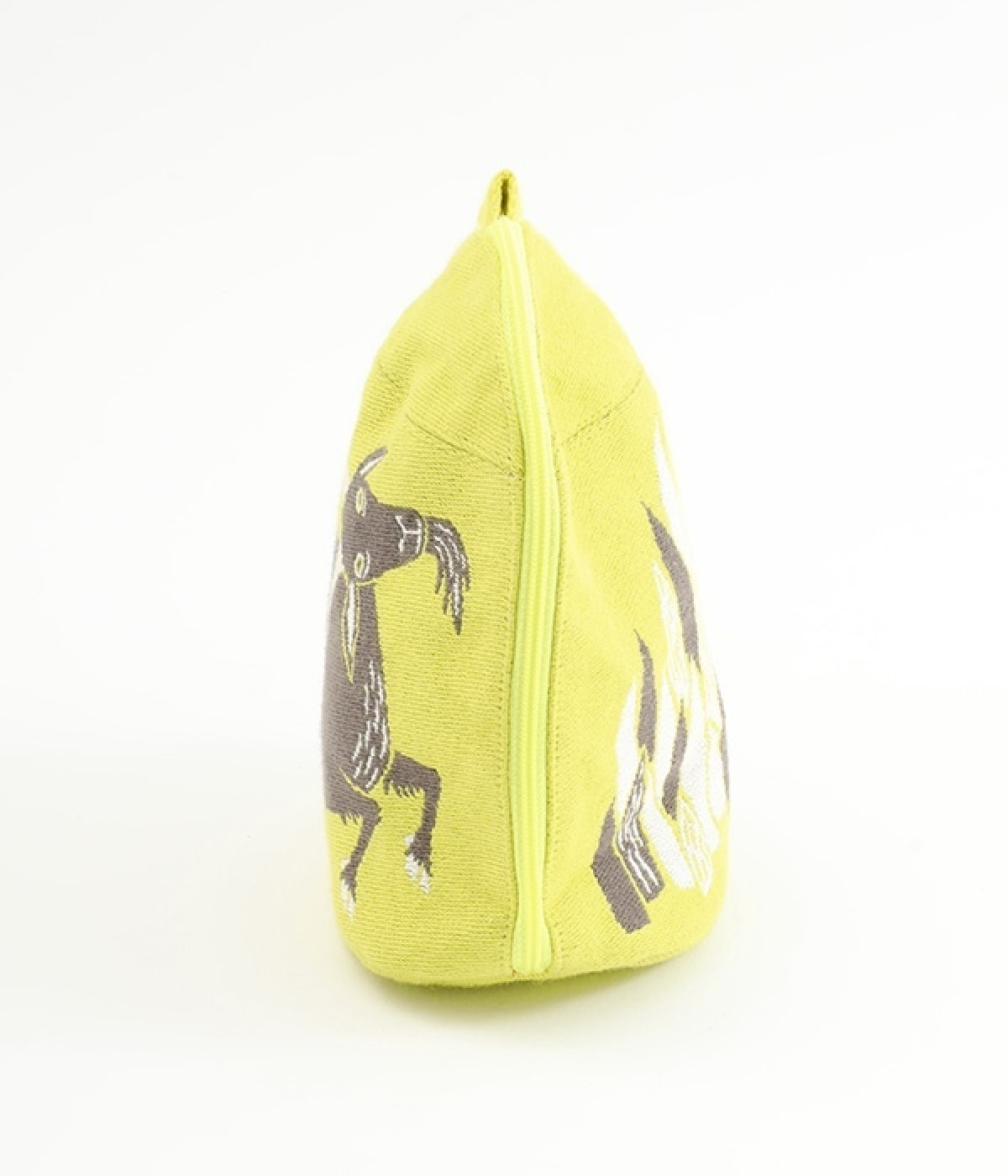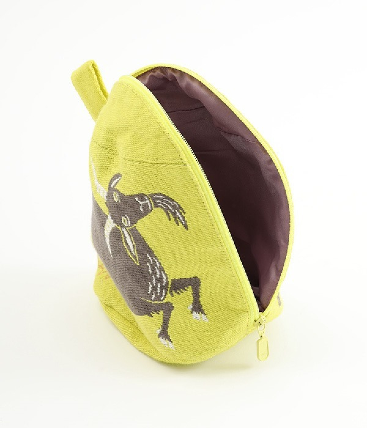 挿絵画家moritaMiWさんの不思議な絵の世界を映しだす、小さくてコロンとした愛おしい形のマチつきポーチです。タオルメーカー楠橋紋織のしっかり織り上げた厚手の生地からのぞく、裏地のビビッドカラーがさりげないアクセント。さらっとしたコットン素材の肌触りや、開閉口が大きく開いて物を出し入れしやすいのも魅力です。