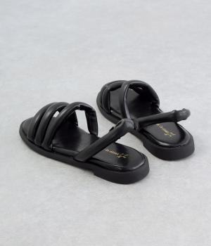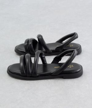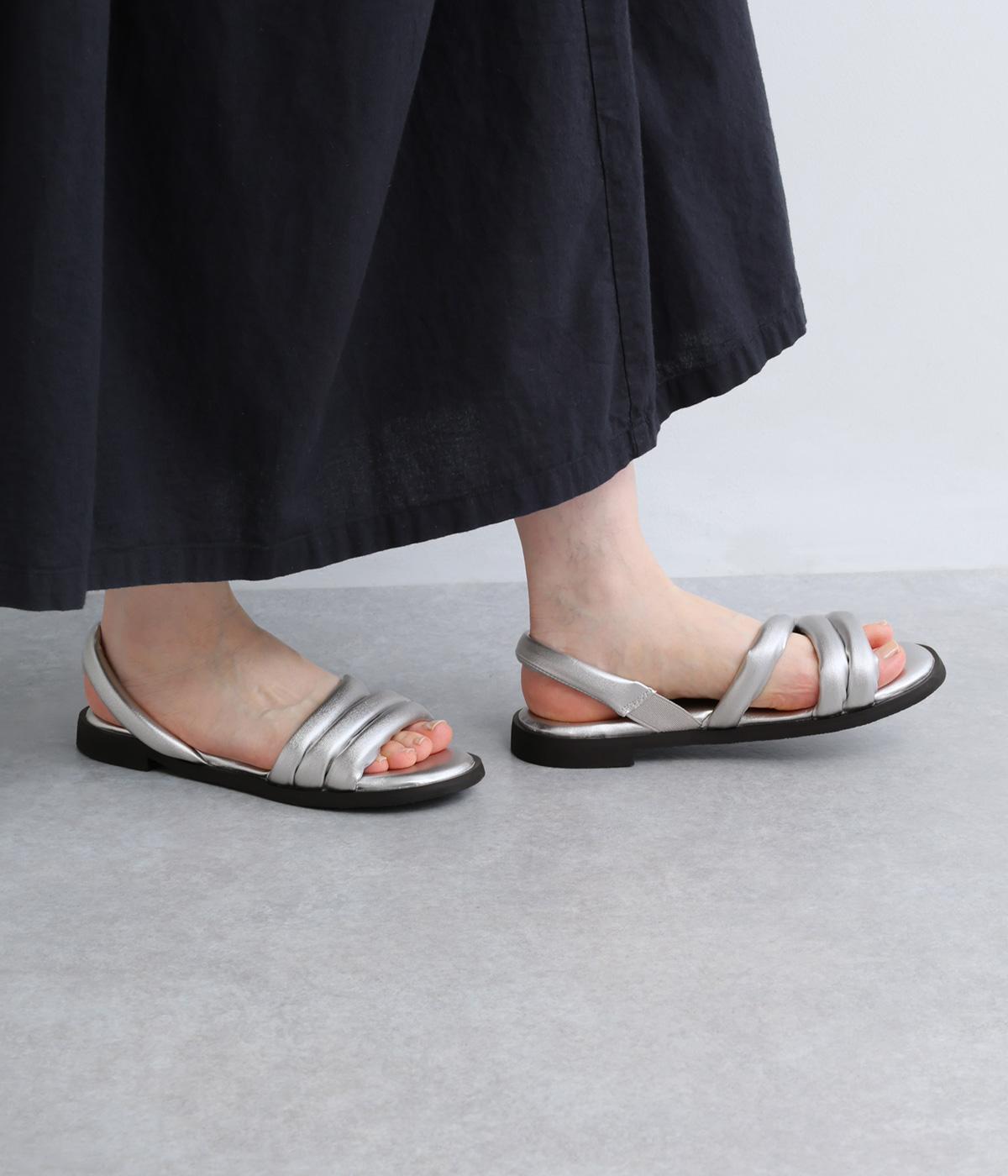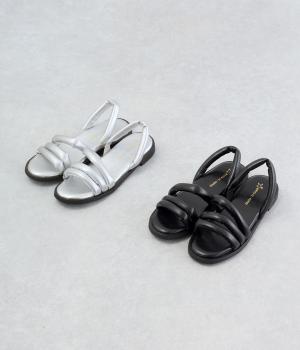 ツヤ感のあるアッパーに3連ストラップが、カジュアルながらも大人な表情を魅せるストローサンダル。かかとは部分ゴムで脱ぎ履きもイージー。ふかふかしたインソールにフラットシューズでデイリーに活躍。