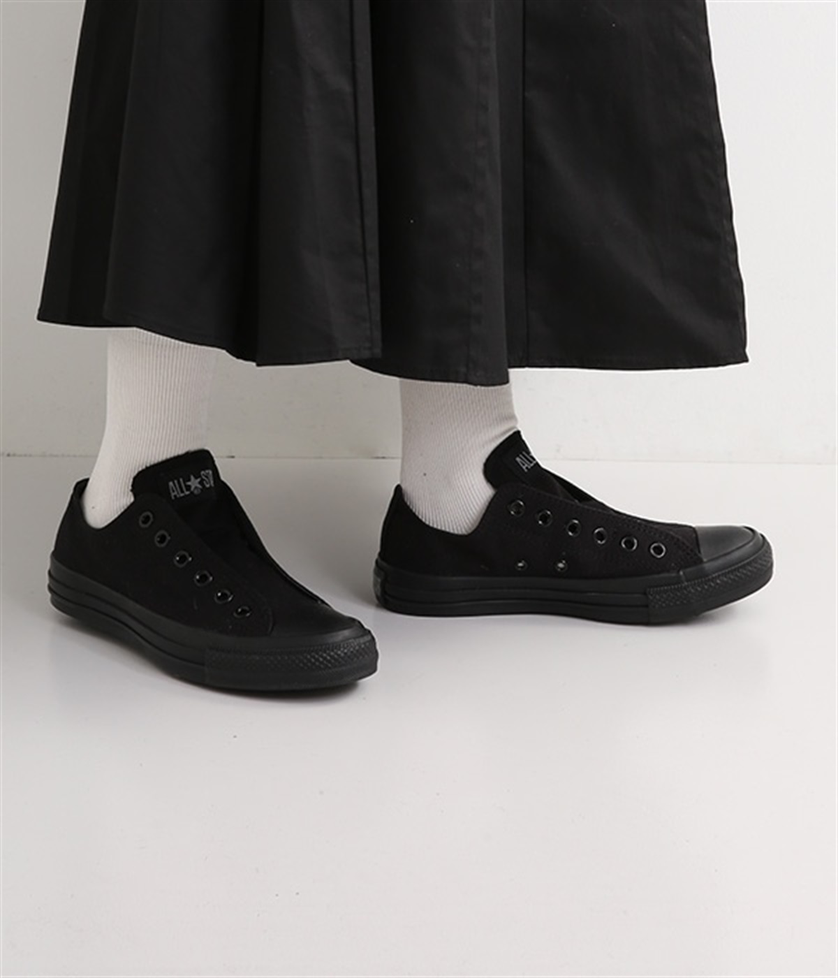 定番のオールスターのシューレースをなくし、脱ぎ履きしやすいスリッポンタイプに仕上げたアレンジモデルのスニーカー。通年でコーディネートしやすいベーシックなカラー展開も魅力です。ベロの裏にはゴムを配しているので、心地よくフィットして歩きやすいのもポイント。グリップ力に優れたラバーアウトソールが快適な歩行をサポートしてくれます。
