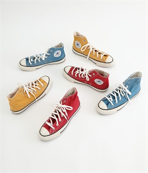 「U.S. ORIGINATOR」のスペックを搭載したオールスターのカラーアレンジモデル。洗い加工を施したキャンバス素材を使用し、新品ながらもはき慣れたような風合いに仕上げています。生成りのラバーテープにはつや出し加工を施して垢ぬけた印象に。カジュアルスタイルとは切り離せない、大定番スニーカーは持っておいて損はありません。