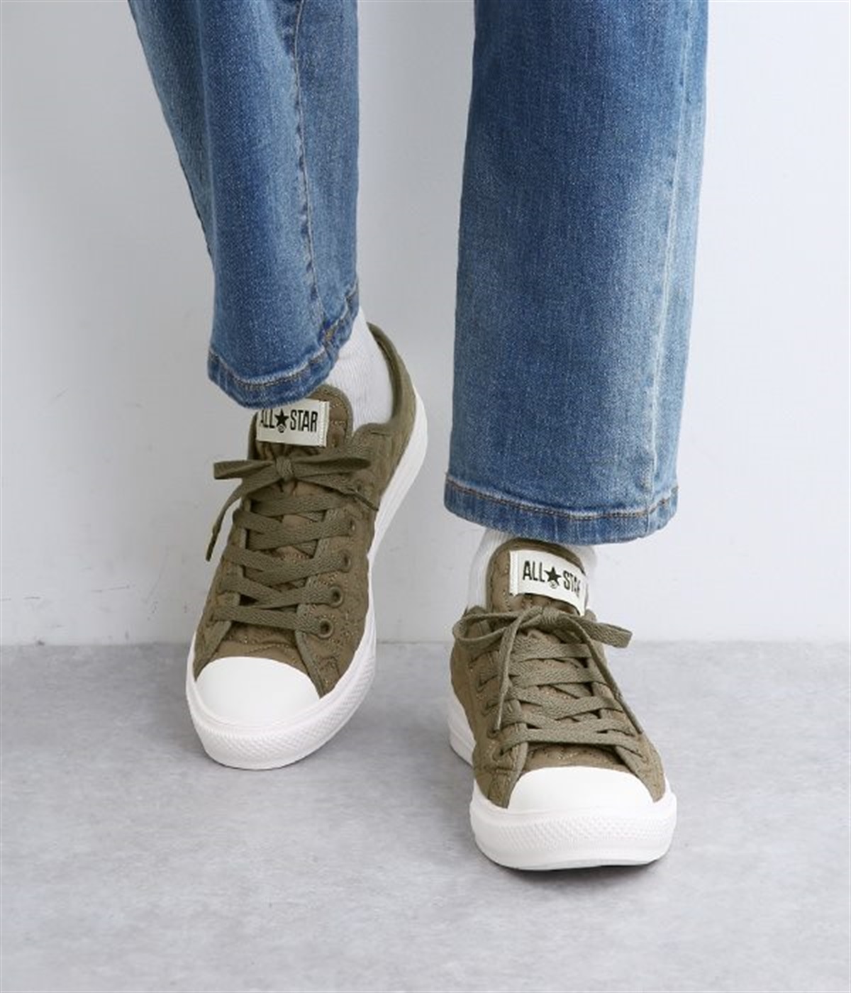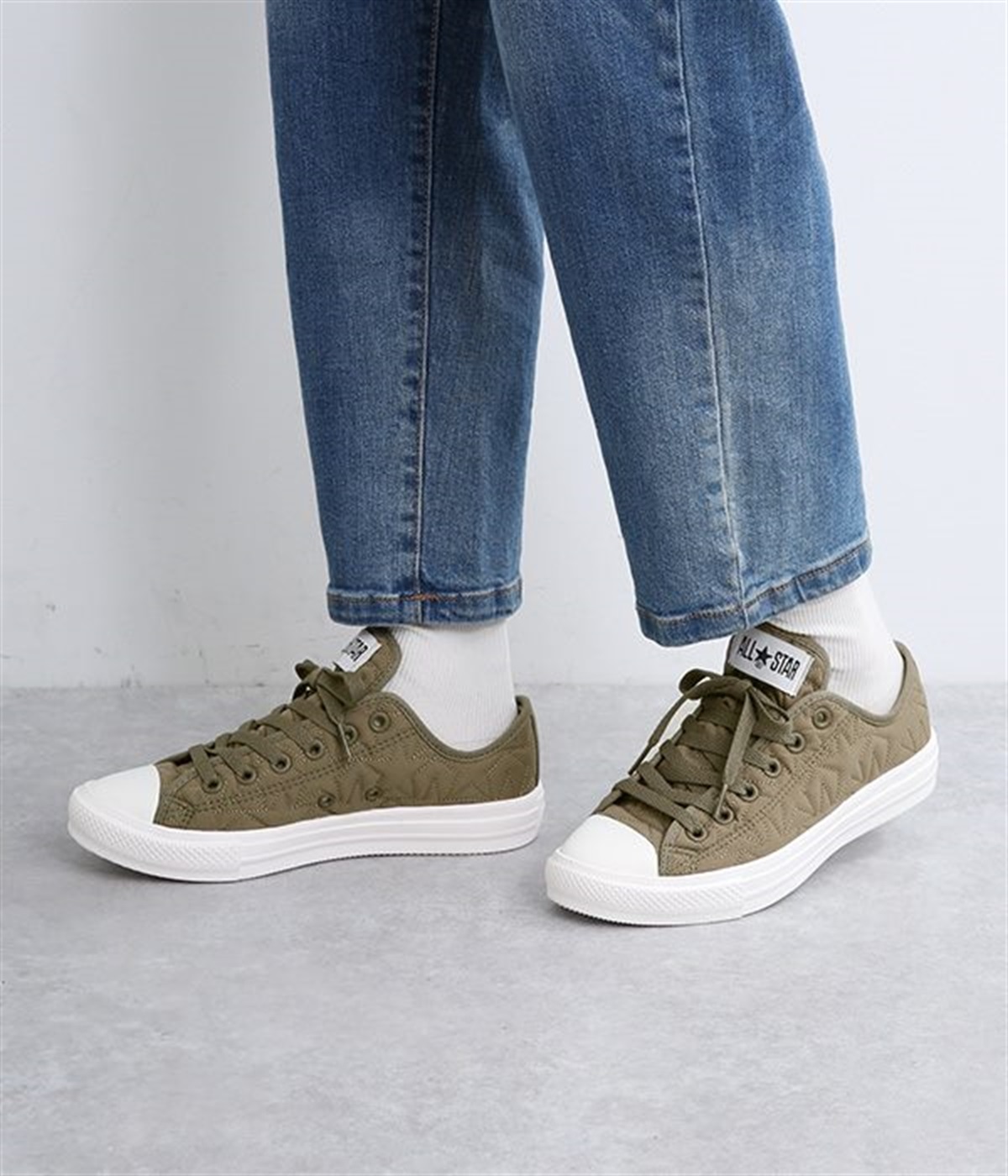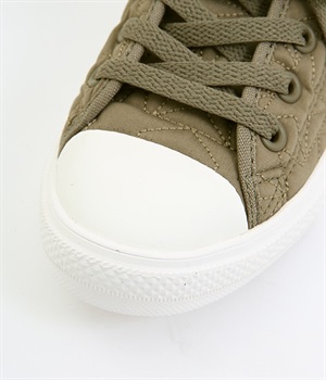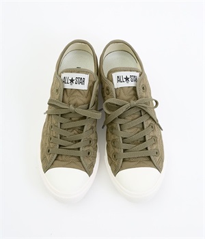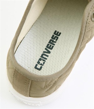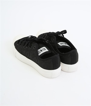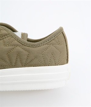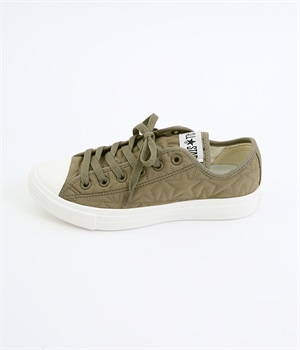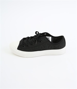 コンバース伝統のオールスターのシルエットはそのままに軽量化と抜群のクッション性を実現したオールスターライトのアレンジモデルです。キルティングジャケットをモチーフに、星型のキルティングを施したほどよく光沢のあるナイロン素材を使用。ハトメやシューレースはアッパーと同色で上品な印象に仕上がっています。カジュアルスタイルにはもちろんきれいめな着こなしにもあわせやすい一足です。