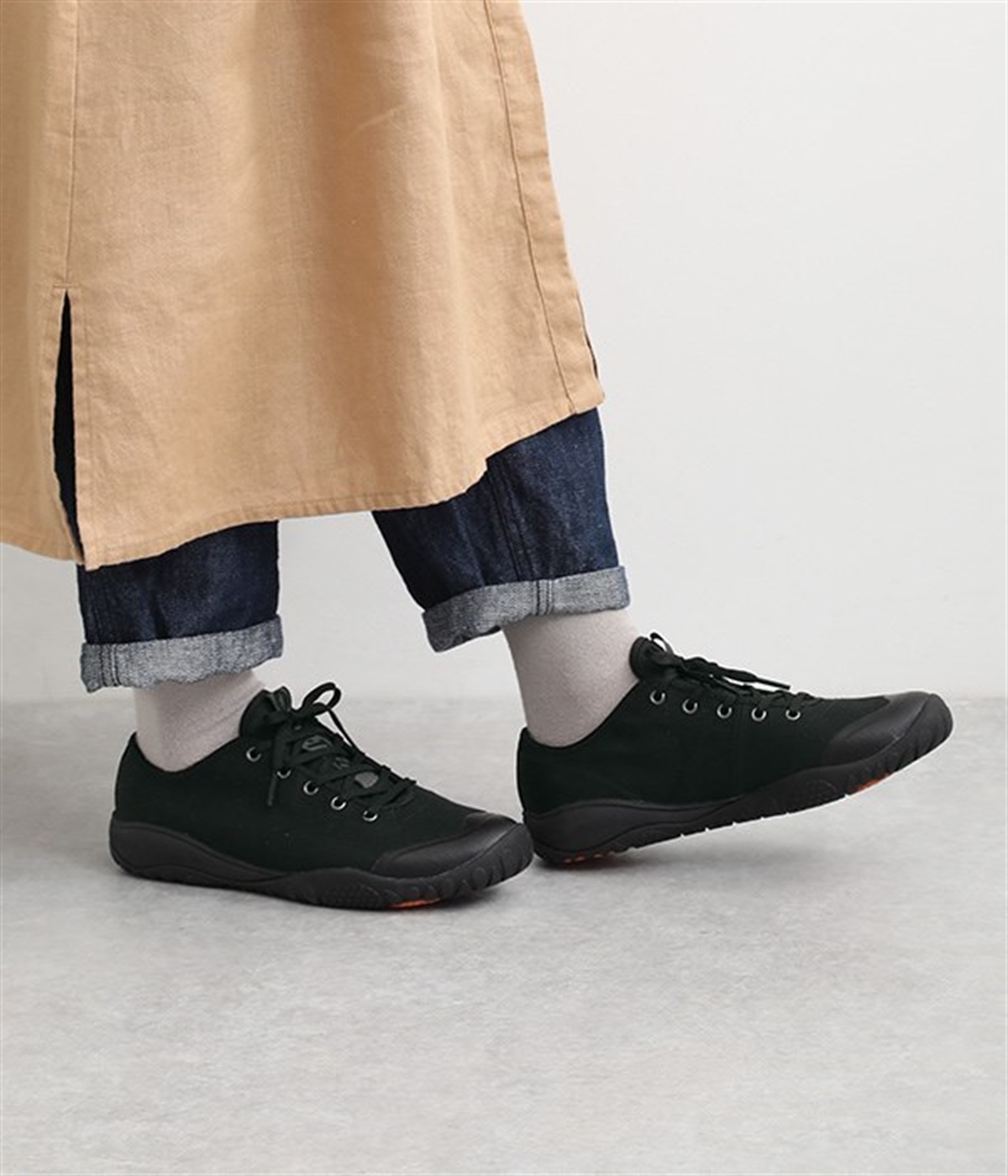 1974年にイギリスで誕生したアウトドアブランド『HI-TEC』adapterシリーズ。クラシカルな佇まいのレインスニーカー、「AMACRO」のローカットモデルです。アッパーには優れた耐水性能をもつ「VENTILE(R)」を採用。コットン素材でありながら撥水効果を実現し、素材特有のハリ感をいかしたカジュアルな印象に仕上げました。アウトソールとの境目はシームレスに仕上げることで水が染み込みにくく、雨天時でも気兼ねなくスタイリングに取り入れられます。ゴム紐も付属。