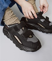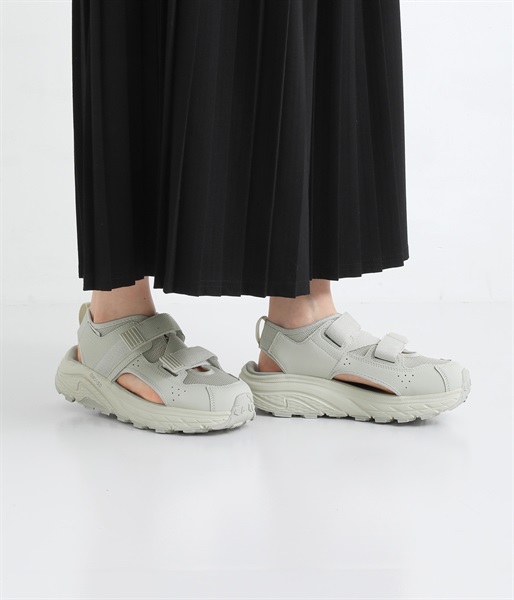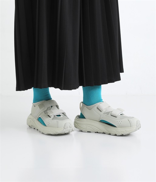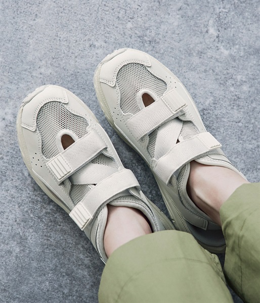 透け感のあるメッシュに、内外サイドのカットアウト、バックストラップと、軽やかなルックスに。2本のウェビングベルトでホールド感も◎。アウトドアやレジャーシーンで活躍必至です。タウンユースではソックスとのコーディネートでおしゃれを楽しんでも。