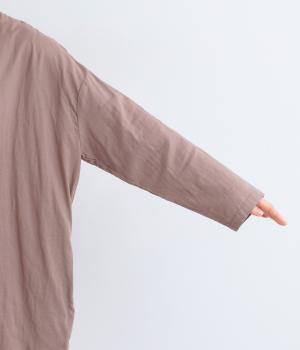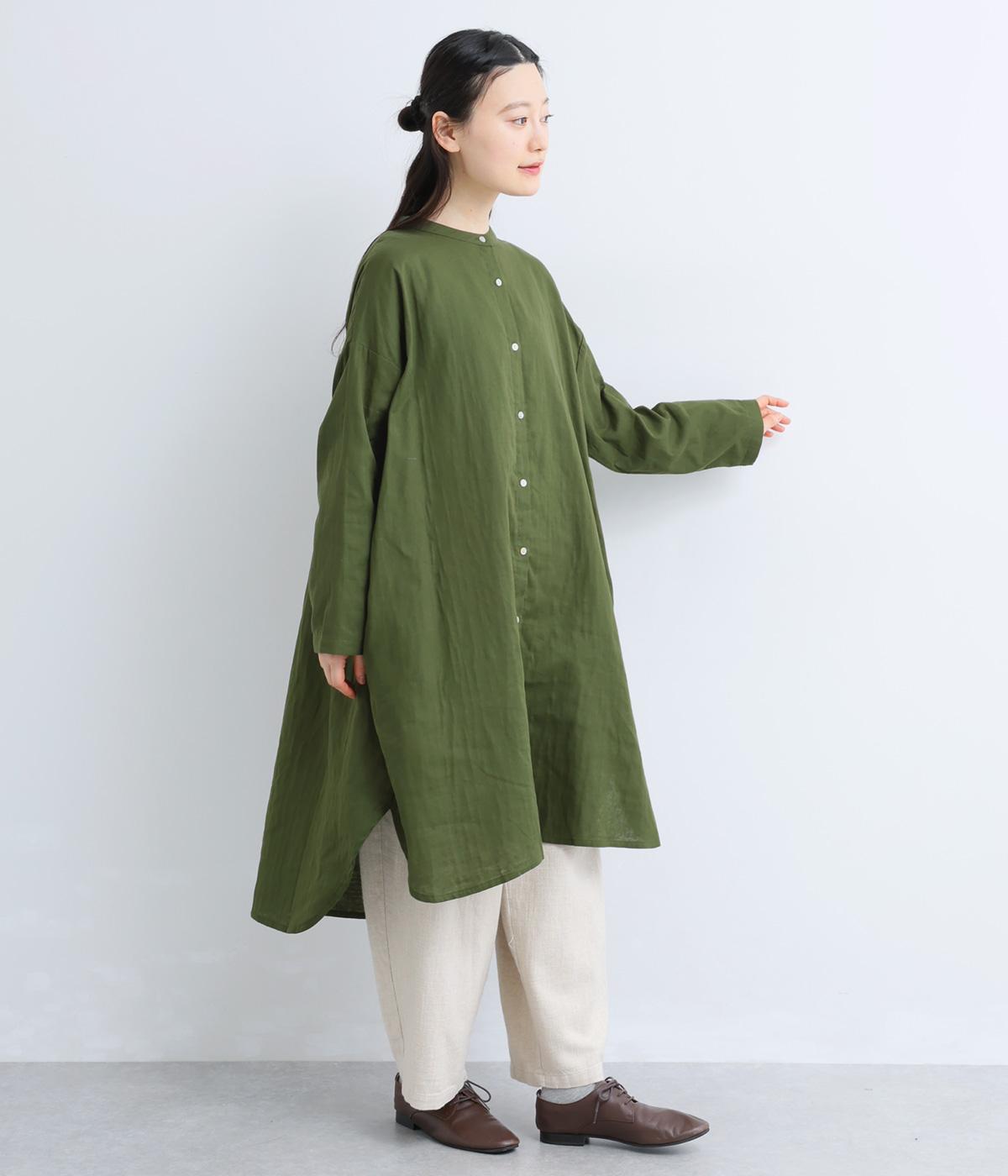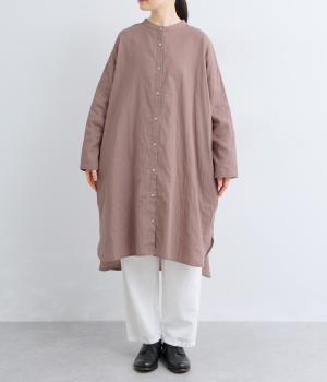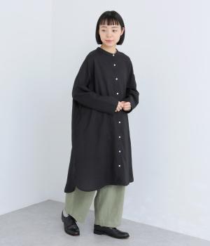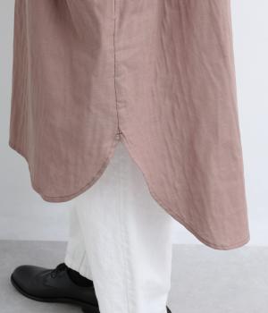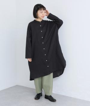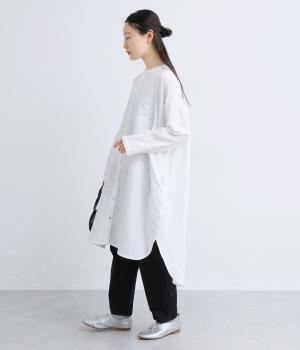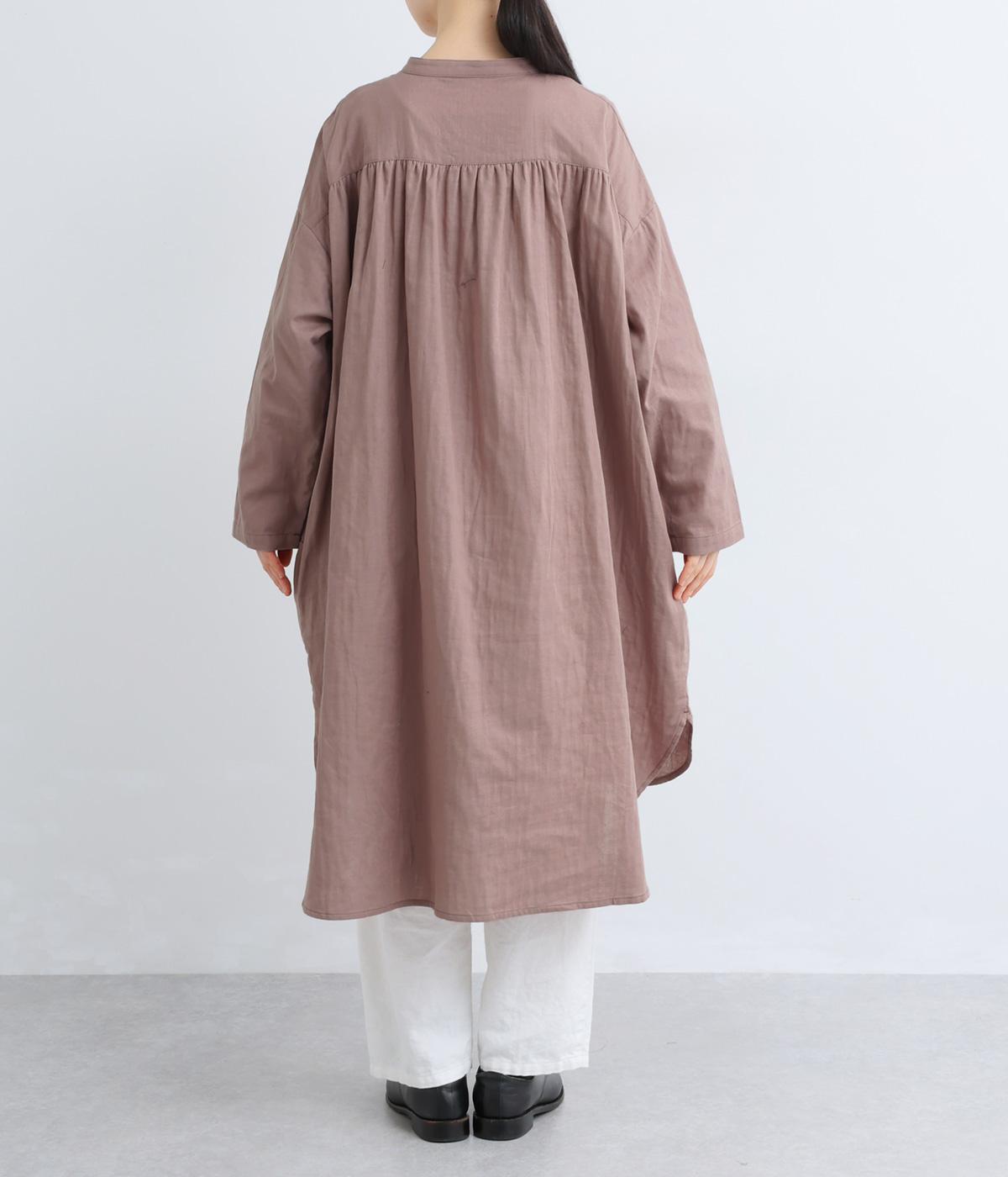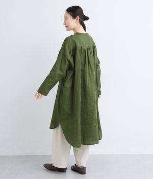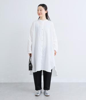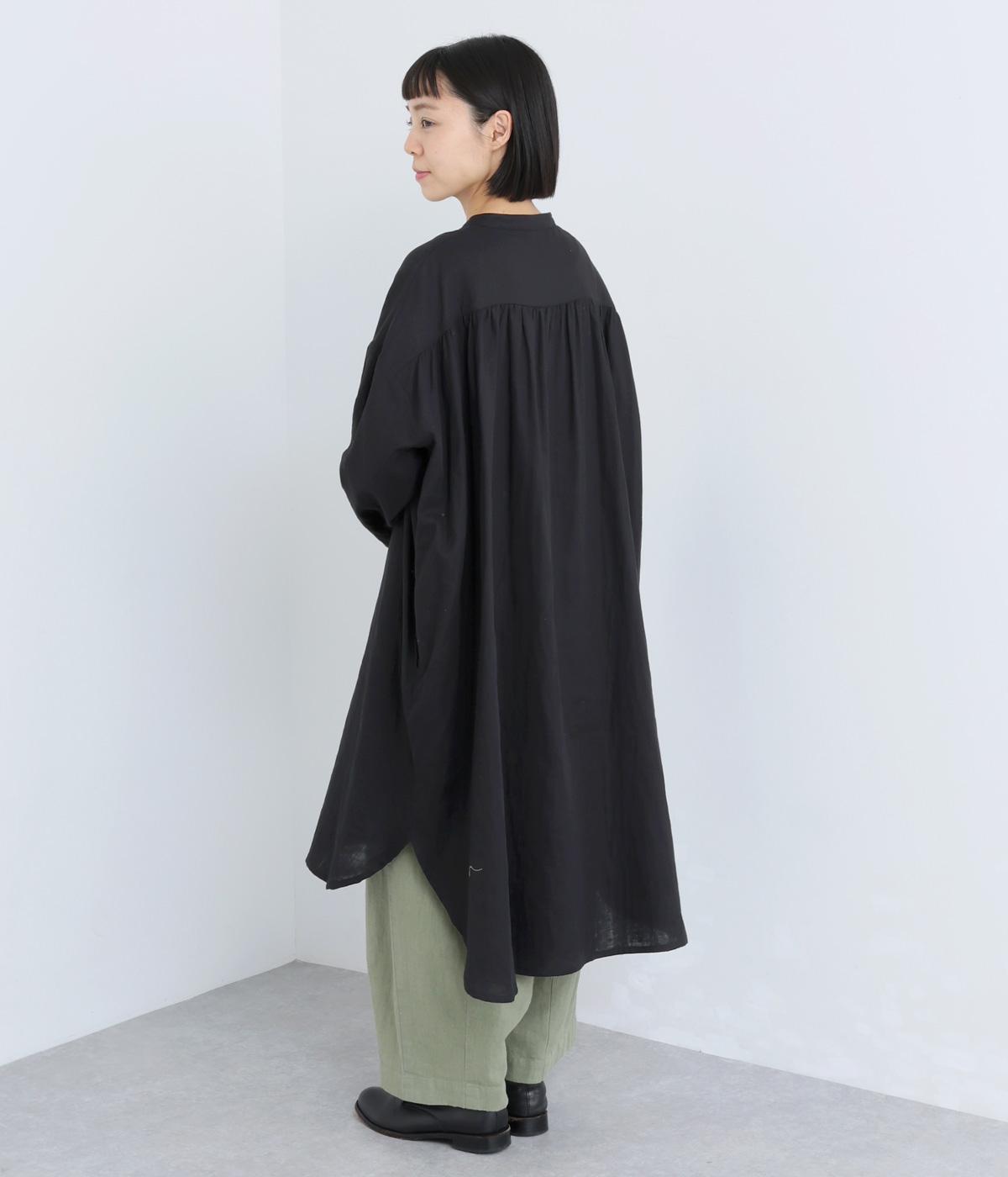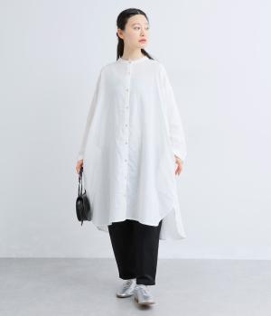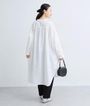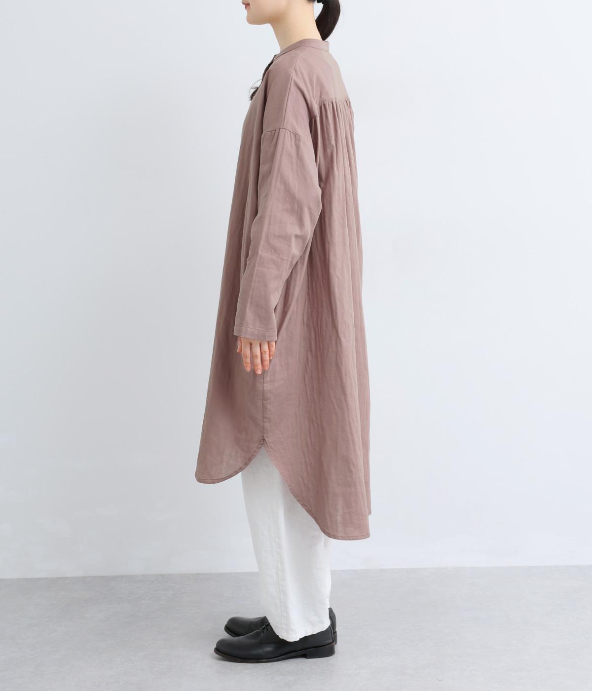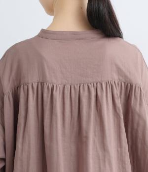 ゆったりとしたシルエットのチュニックに、背面へたっぷりとギャザーを施し、立体感のある表情に仕上げました。シンプルなスタンドカラーが首元をすっきり見せ、甘さをおさえた大人の印象に。前後差のある裾が抜け感を生み、ロングスカートやワイドパンツとのコーディネートも軽やかに決まります。