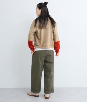 タックを入れて腰まわりにゆとりを持たせたパンツは、裾の折り返し&ボタン留めでデザインにポイントをもたせました。デイリーなカジュアルスタイルに合わせやすく、一本持っていると重宝します。ウエスト総ゴム仕様で快適なはき心地です。