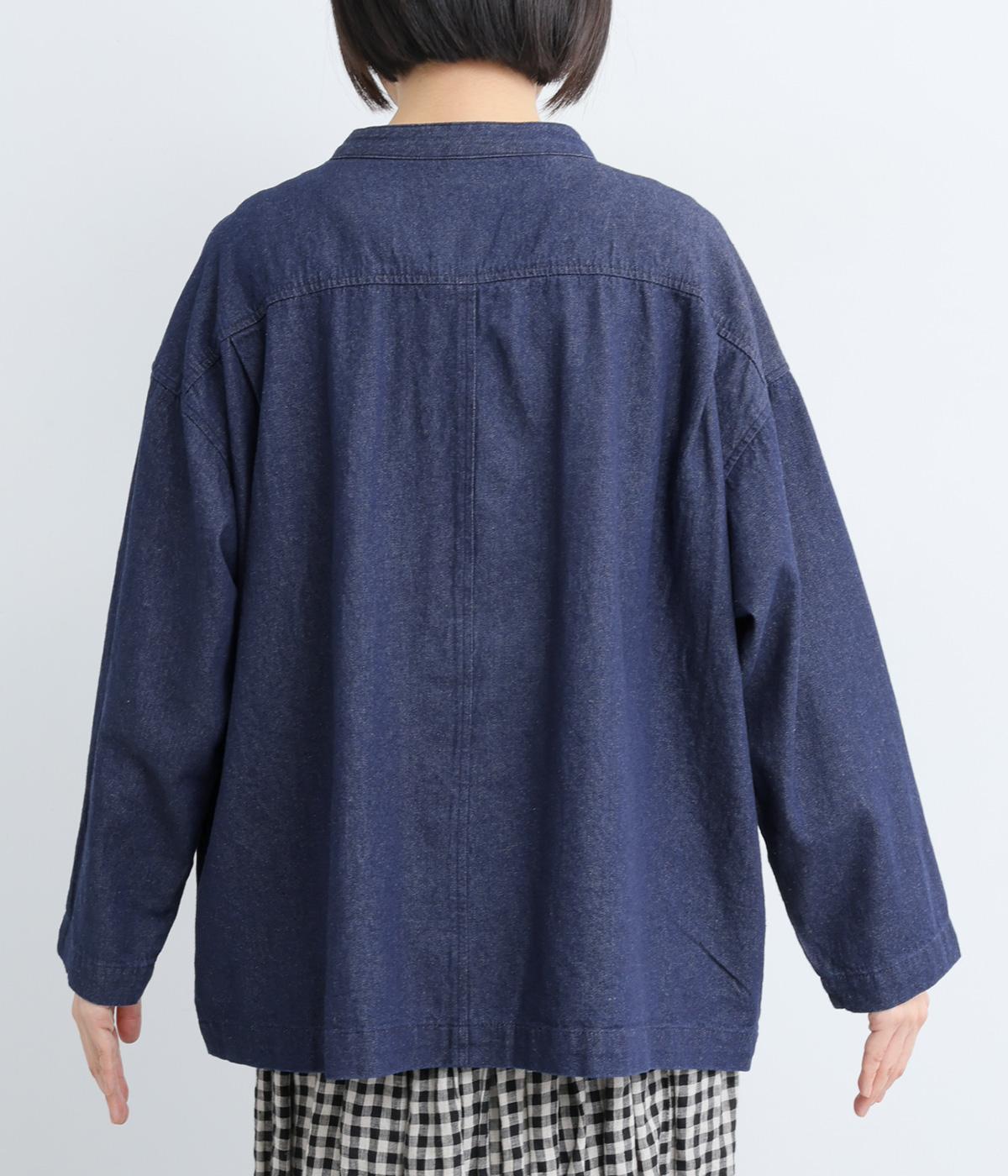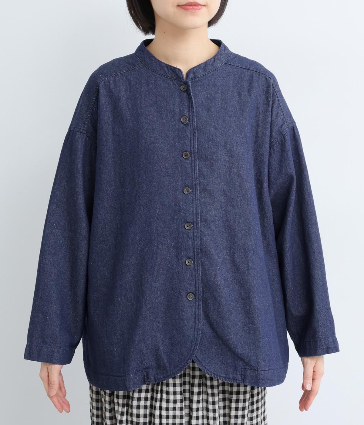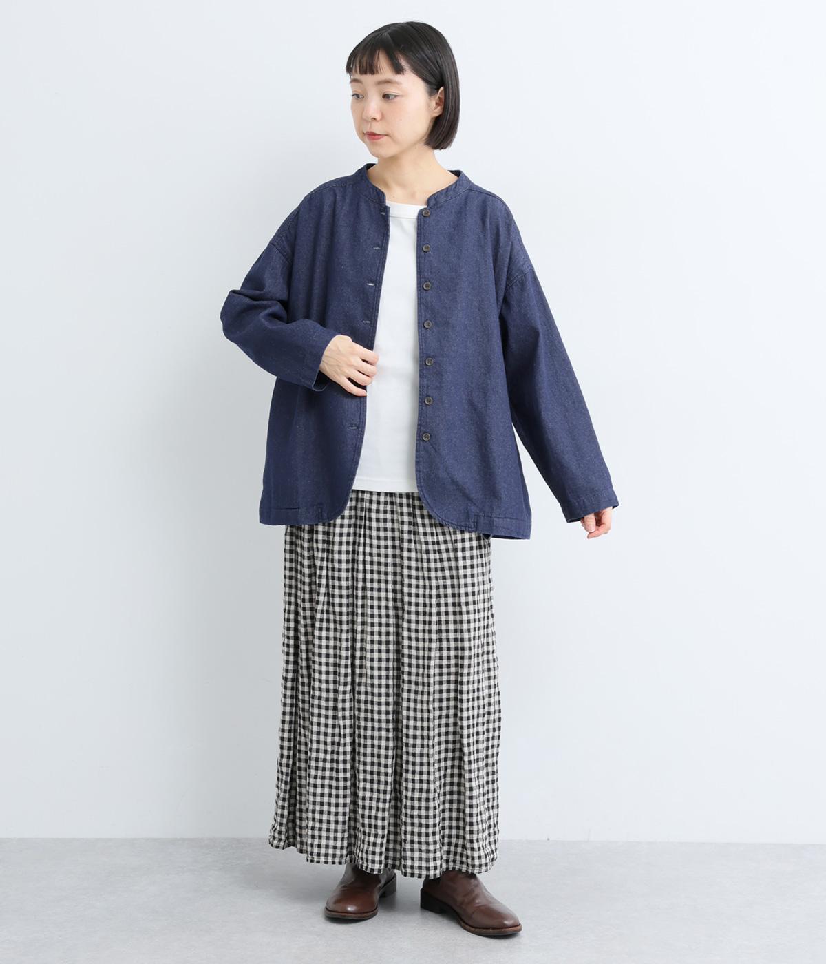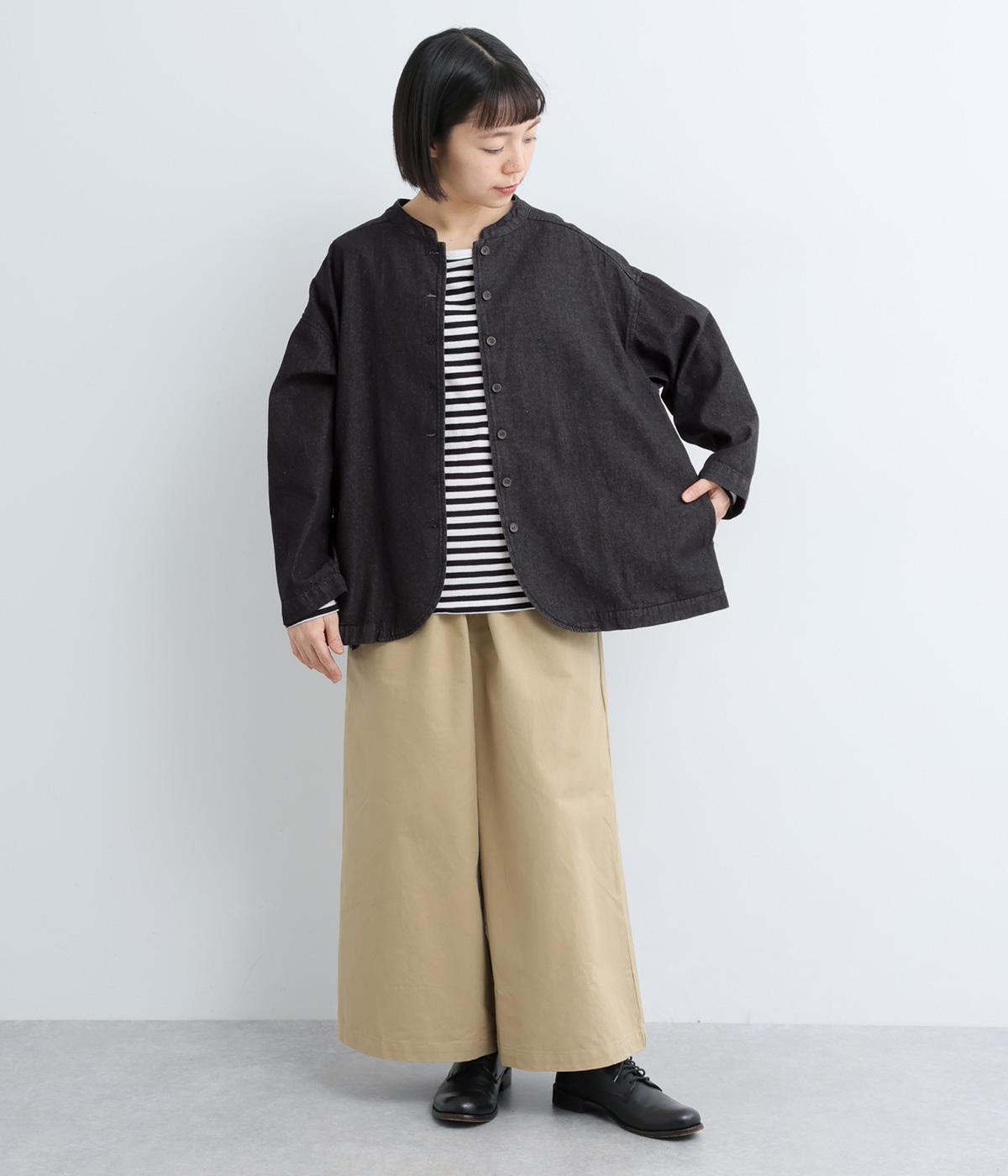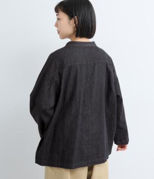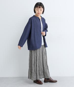 すっきりとしたスタンド襟に主張しすぎない小さめボタンでミニマムにまとめたジャケット。前立て裾はラウンドさせることでカジュアルさを軽減し、やさしい印象に。ラフに羽織りやすくシャツ感覚でメイン使いするのもおすすめです。