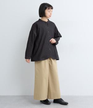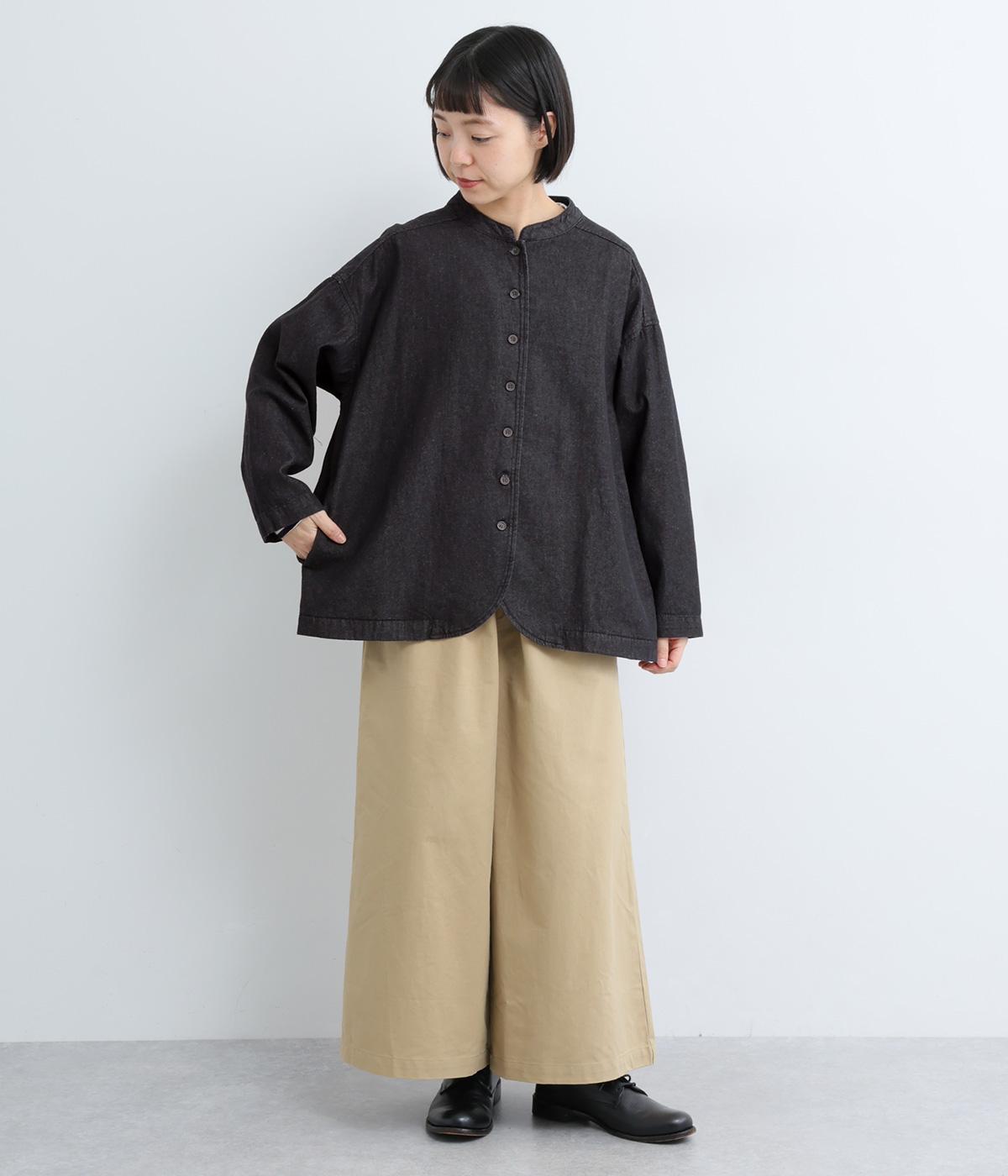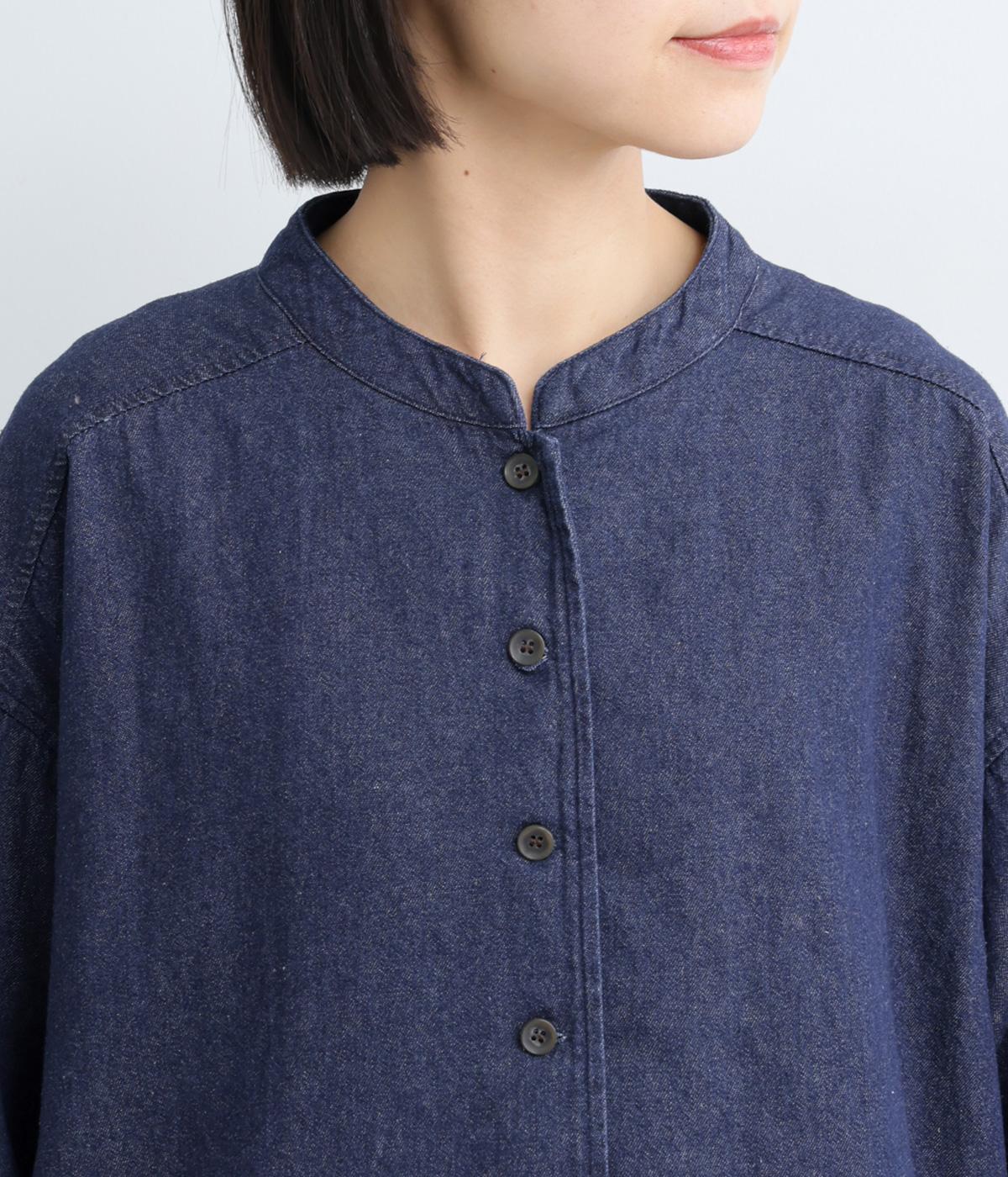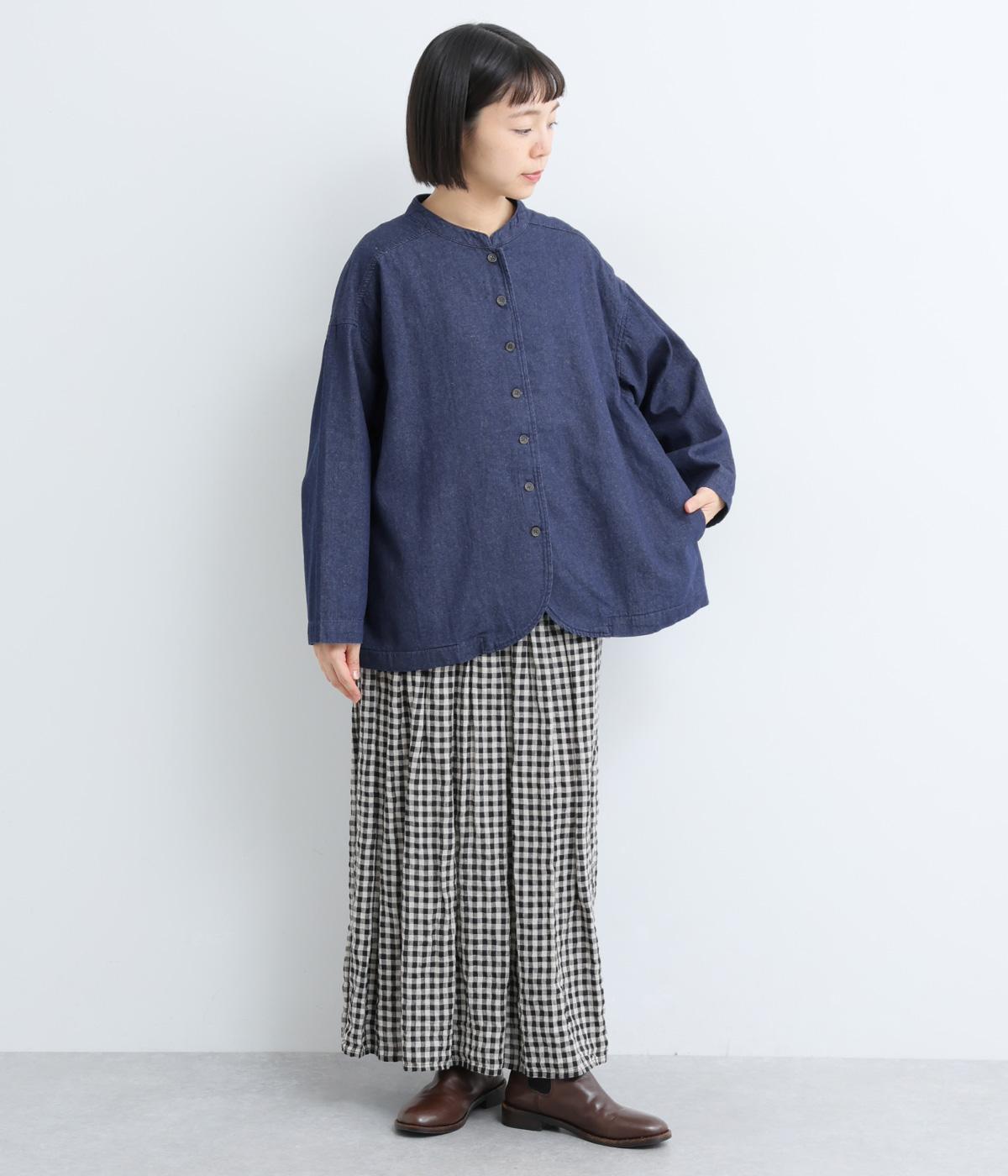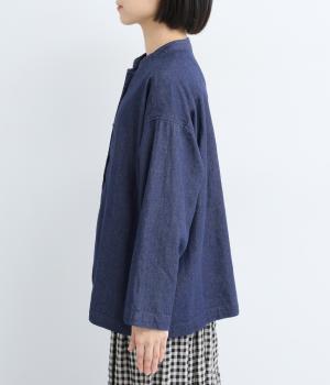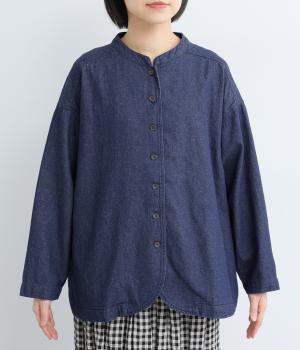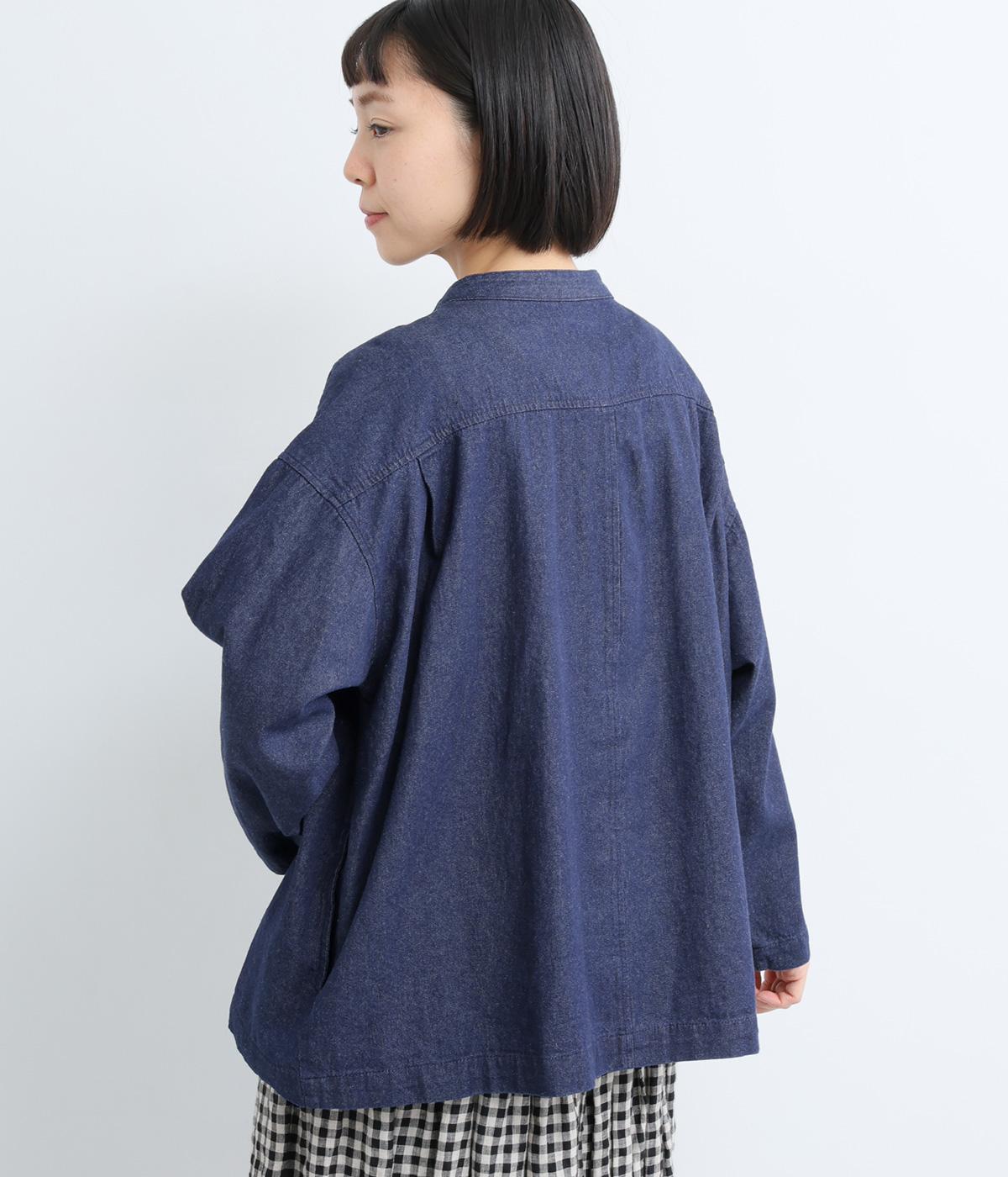 すっきりとしたスタンド襟に主張しすぎない小さめボタンでミニマムにまとめたジャケット。前立て裾はラウンドさせることでカジュアルさを軽減し、やさしい印象に。ラフに羽織りやすくシャツ感覚でメイン使いするのもおすすめです。