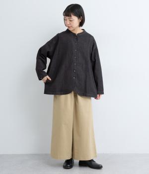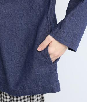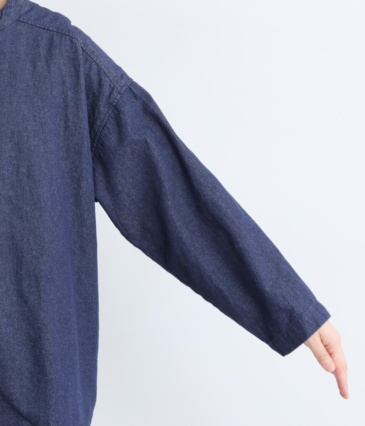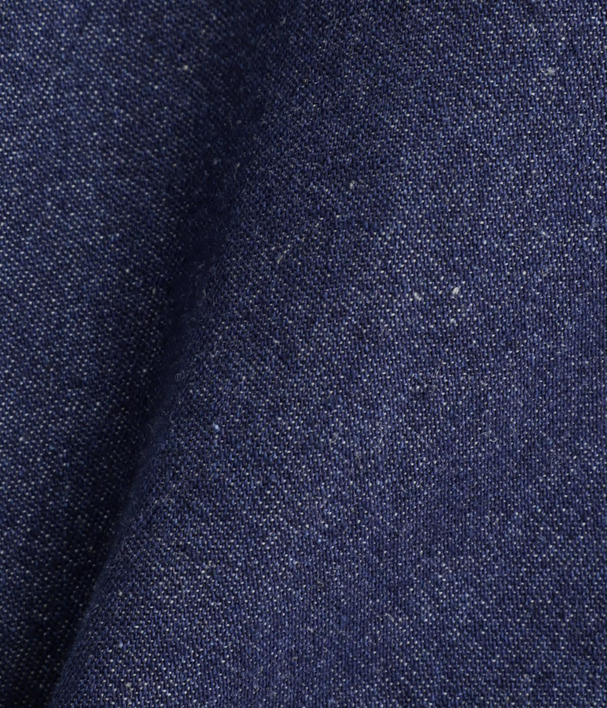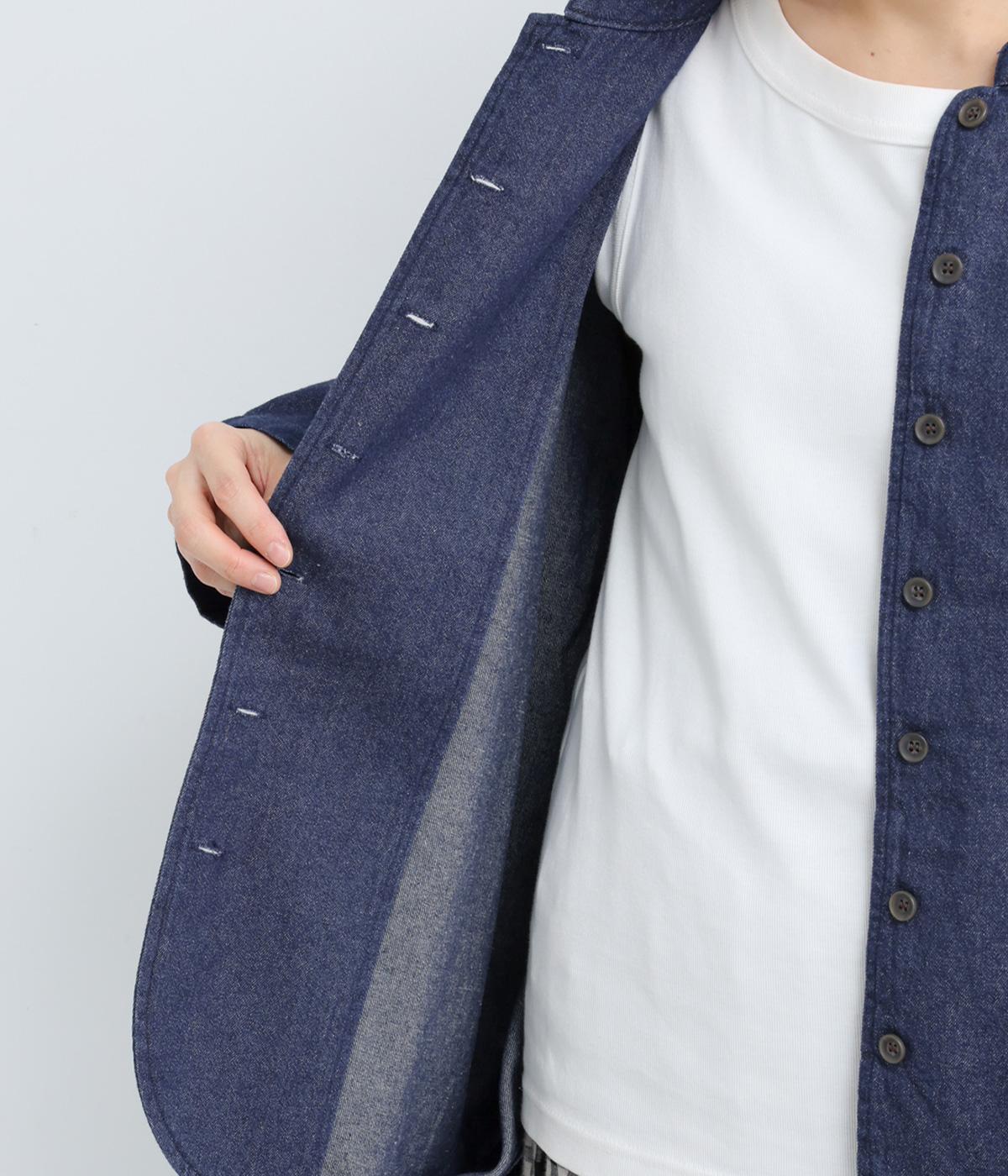 デニムらしいタフさと着心地のいいソフトな質感を併せ持ったコットンデニムを使用。厚すぎないのでロングシーズン着まわしやすく、色落ちによる経年変化もたのしめるアイテムです。