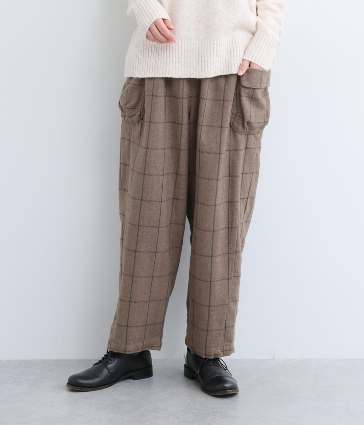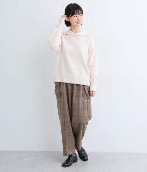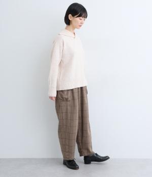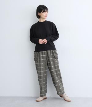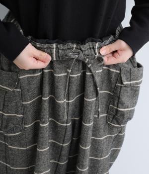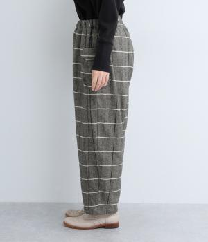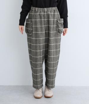 ほどよくゆとりのあるシルエットと、立体感のあるポケットが素敵なパンツです。すっきりとした印象ながらもウエストとヒップラインはしっかりカバー。ウエストはゴムと紐で調節可能です。季節やシーンを問わず着られる定番アイテムは一着あると重宝します。