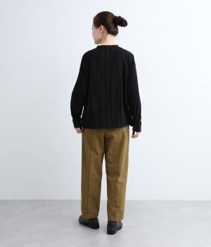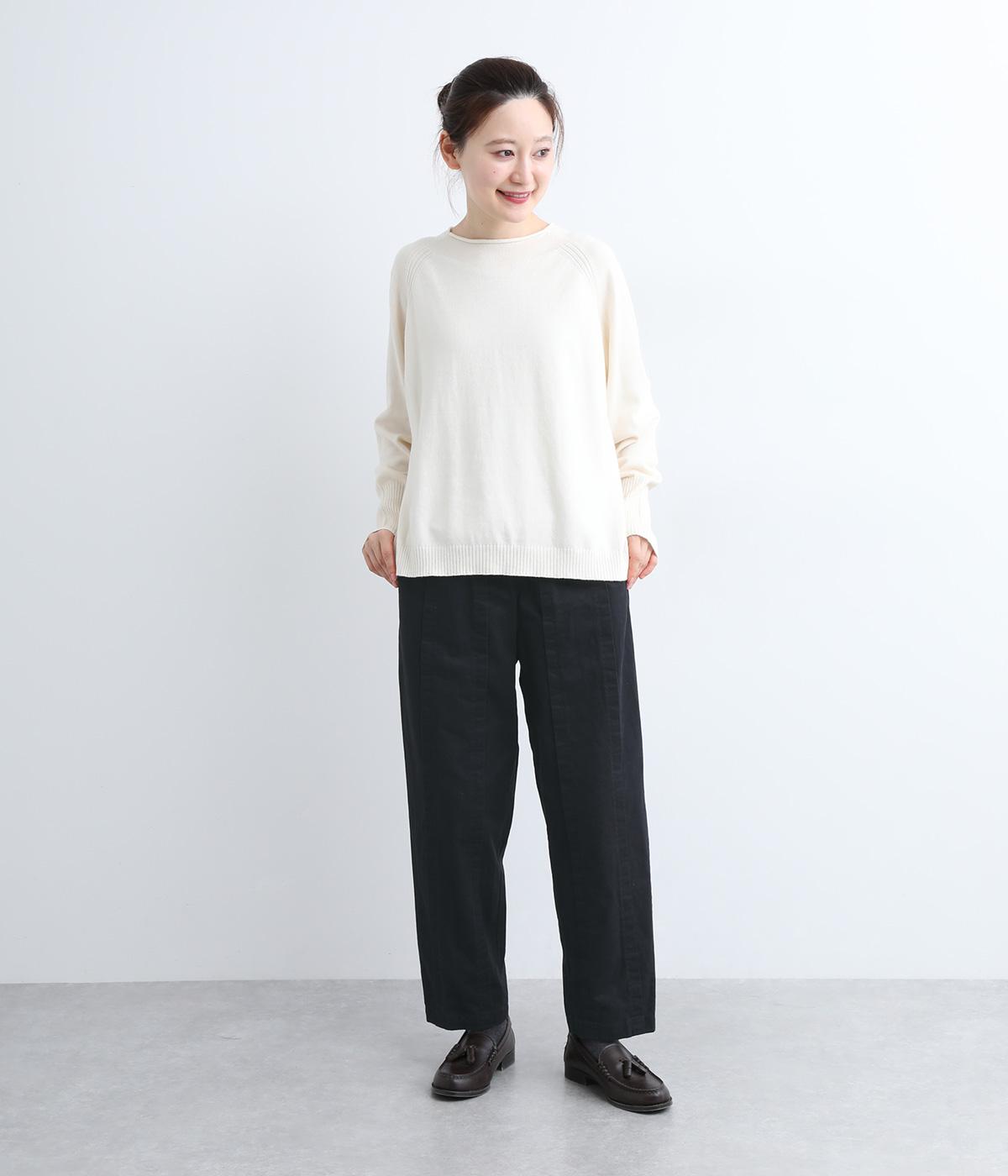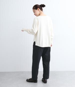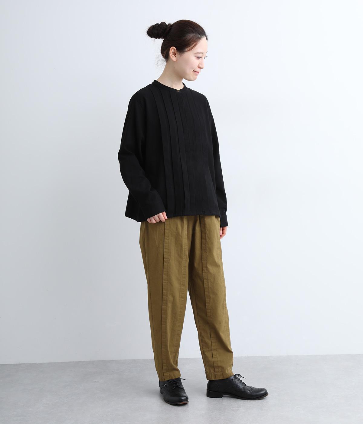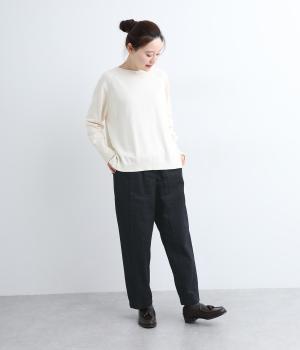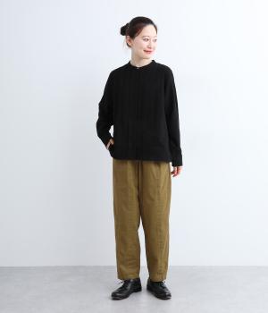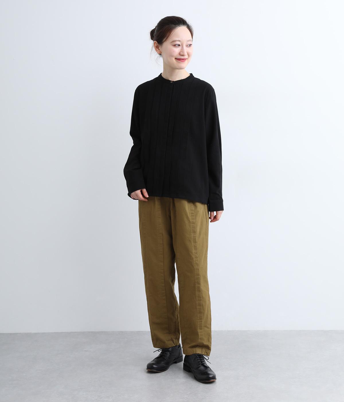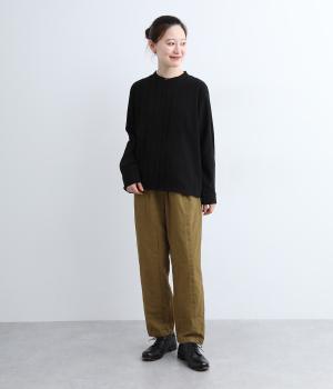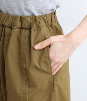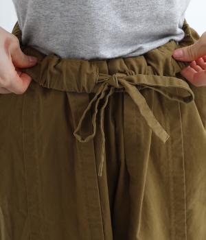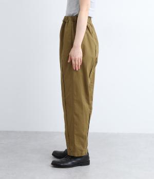 ウエストから太ももまでタックをとり、裾に向かって細くなっていくテーパードシルエットと足元まで伸びるステッチラインが洗練されたデザイン。お腹まわりやヒップラインをカバーできるのも、嬉しいポイントです。ウエストは総ゴム仕様で、内紐でサイズ調節ができます。